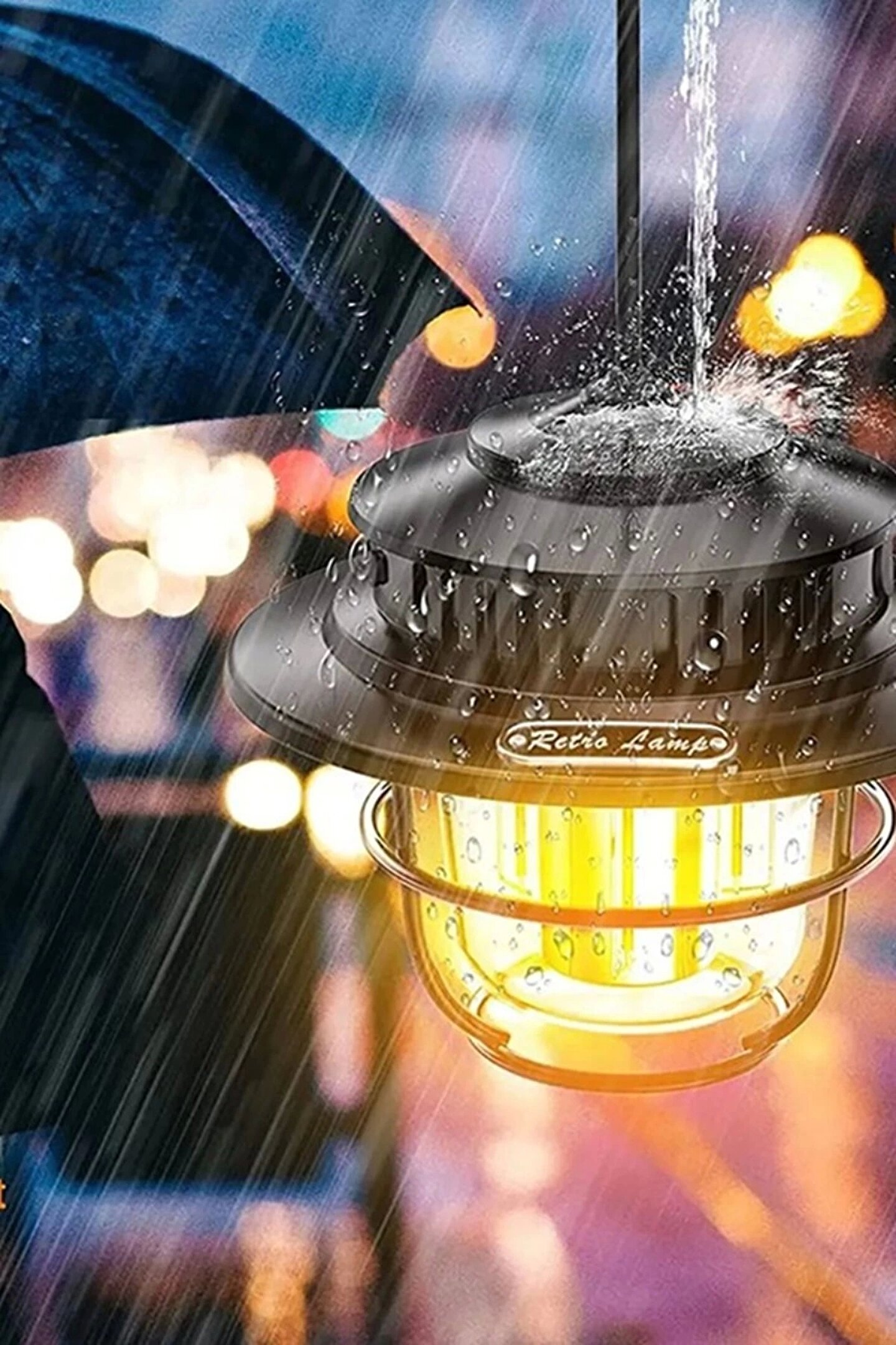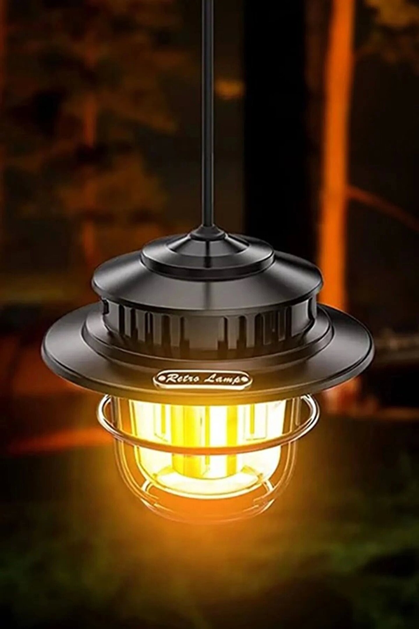 Taşınabilir Retro Fener Su Geçirmez Dış Mekan Güçlü LED Kamp Bahçe Feneri Dekor Renk: Siyah-YEŞİL-BEYAZ; Giriş: TYPE-C Şarj; Su Geçirmez: Yağmur Fırtınası Sınıfı Su Geçirmez; Pil: Dahili Lityum Pil.; Vites:4 FONSİYONLU IŞIK (SARI-BEYAZ-LOŞ-SARI+BEYAZ) AÇMA TUŞUNA BASILI TUTULARAK IŞIK ŞİDDETİ ARTTIRILIP AZALTTIRILABİLİR; Yeni Geometrik Şekilli Tasarım; Sıcak Tungsten Ampul. Bu Retro Fener İstediğiniz Yere Yerleştirilebilir Veya Asılabilir, Bahçe, Avlu, Teras, Veranda, Duvar, Yol, Garaj Yolu, Çim, Kamp, Ağaç, Pergola Vb. İçin Mükemmeldir. Dış Mekan Solar Peyzaj Aydınlatma Ve Dekorasyon.; Fener Sıcak Beyaz Bir Işık Yayar, Romantik Ve Rahat Bir Alan Yaratır.; Su Geçirmez Ve Isıya Dayanıklıdır.; Özellik Şarj edilebilir Renk Beyaz