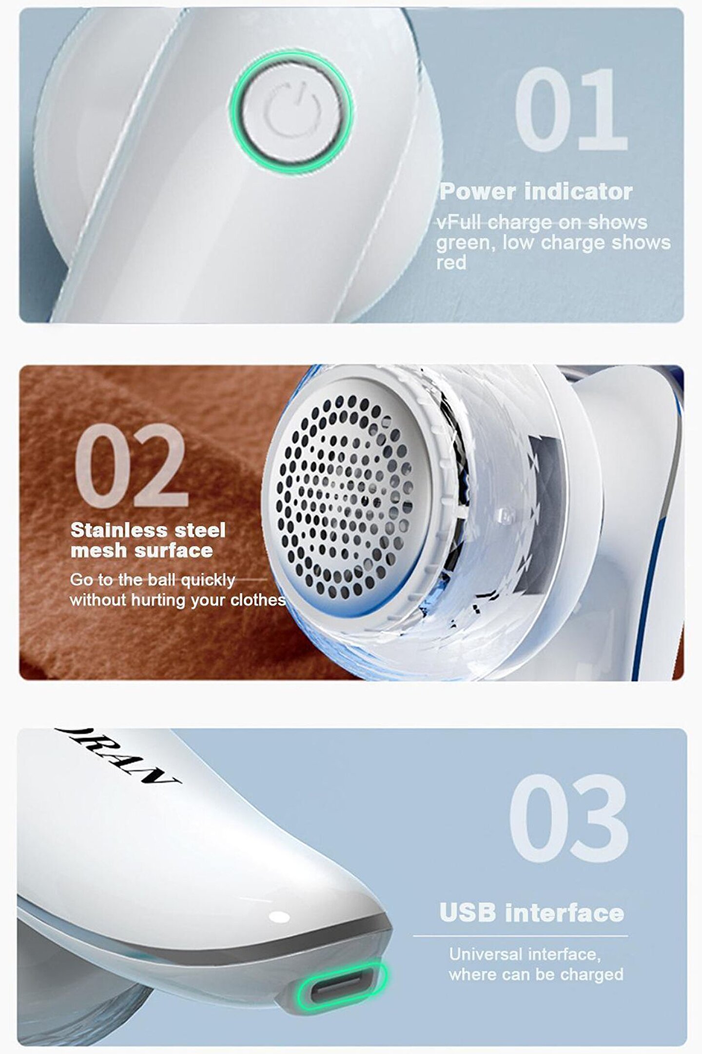 Tüy yumakları en sevdiğiniz kazakların veya elbiselerin görünümünü bozar ve giysilerinizin eski, yorgun ve yıpranmış görünmesine neden olur. Bu top çıkarıcıyı kullanarak giysilerinizin yeni gibi görünmesini sağlayabilirsiniz ; Giysilerde kullanım için idealdir, çıkarması ve tüyleri toplaması kolaydır ; İşlem çok basit ve güvenlidir ve giysilere zarar vermez ; Devrim niteliğindeki kumaş tıraş makinesi, giysilerdeki fazla tüyleri anında temizleyen ve toplayan döner bir iç kısım kullanır. Kumaş tıraş makinesi için güvenli, kumaşa veya ellerinize zarar vermeyen bir korumaya sahiptir. ; Kullanımı kolaydır, sadece açın ve istediğiniz kumaş üzerinde çalıştırın, sadece bir tane ile tüm fazla tüy toplarının çıkarıldığını göreceksiniz. Onları çıkarılabilir bir saklama bölmesine emer, böylece kolayca temizleyebilirsiniz. ; Çöpe atmak üzere olduğunuz çoraplar, tişörtler ve daha fazlası gibi sinir bozucu yığınlara ve evcil hayvan tüylerine elveda deyin. Kumaş tıraş makinesi eski kıyafetlere yeni bir görünüm kazandırabilir. ; USB taşınabilir evrensel hızlı şarj, kullanımı kolay ; Paslanmaz çelik bıçaklar. ; Çıkarılabilir atık haznesi. ; Çıkarılabilir bıçak bölmesi. ; Temizlik fırçası. ; Açma/kapama düğmesi ; Şarjlı. (kutu içeriğinde dahil olan 1x micro usb kablo ile.) ; Ürünün arka yüzeyinde bulunan anti statik manuel tiftik fırça bölmesi. ; Bıçak koruma kapağı. ; Güçlü motor. ; ;