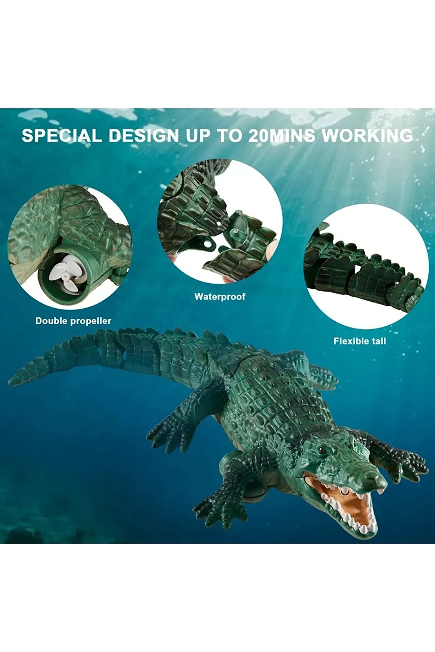 360° derece dönebilen ; Sağa ,sola dönüş ; Işıklı ; Su geçirmez fonksiyon ; Timsah sadece suda oynayabilir. ; Kumanda 2x 1.5VV'AA' ile çalışmaktadır. Kutuya dahil değildir. ; Kutu Ölçüsü : 37 x 20 x 17 cm ; Ürünün 2 rengi bulunmaktadır. Stok durumuna göre gönderimi sağlanacaktır. ;
