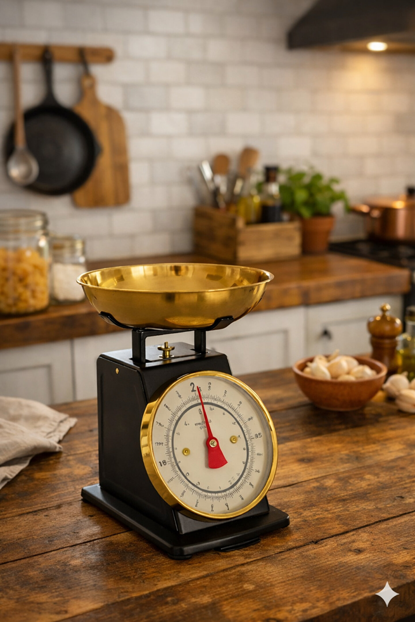 Mutfakta hem şık hem de işlevsel bir yardımcı arıyorsanız, vintage tasarımlı analog mutfak terazisi tam size göre! Pirinç renkli geniş tartım kabı ve siyah metal gövdesiyle, sadece ölçüm yapmakla kalmaz, tezgâhınızda dekoratif bir parça olarak da öne çıkar.