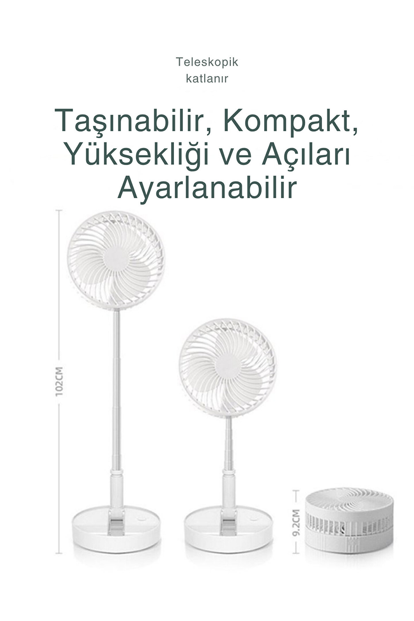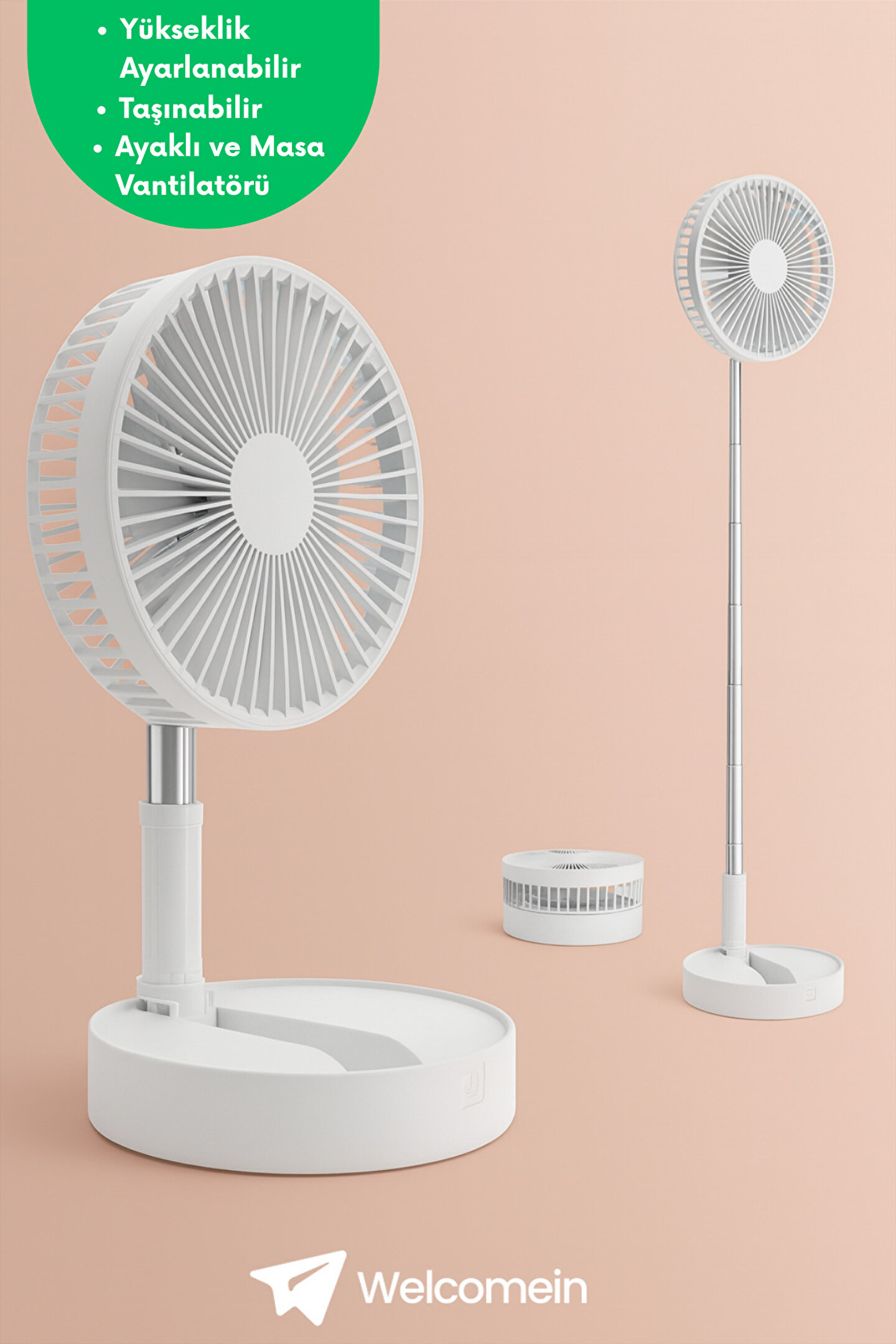 yüksekliği ayarlanabilir taşınabilir vantilatör, hem masaüstü hem de ayaklı kullanım imkanı sunar. Katlanabilir tasarımı sayesinde çantanıza sığar, dilediğiniz yere kolayca taşıyabilirsiniz.