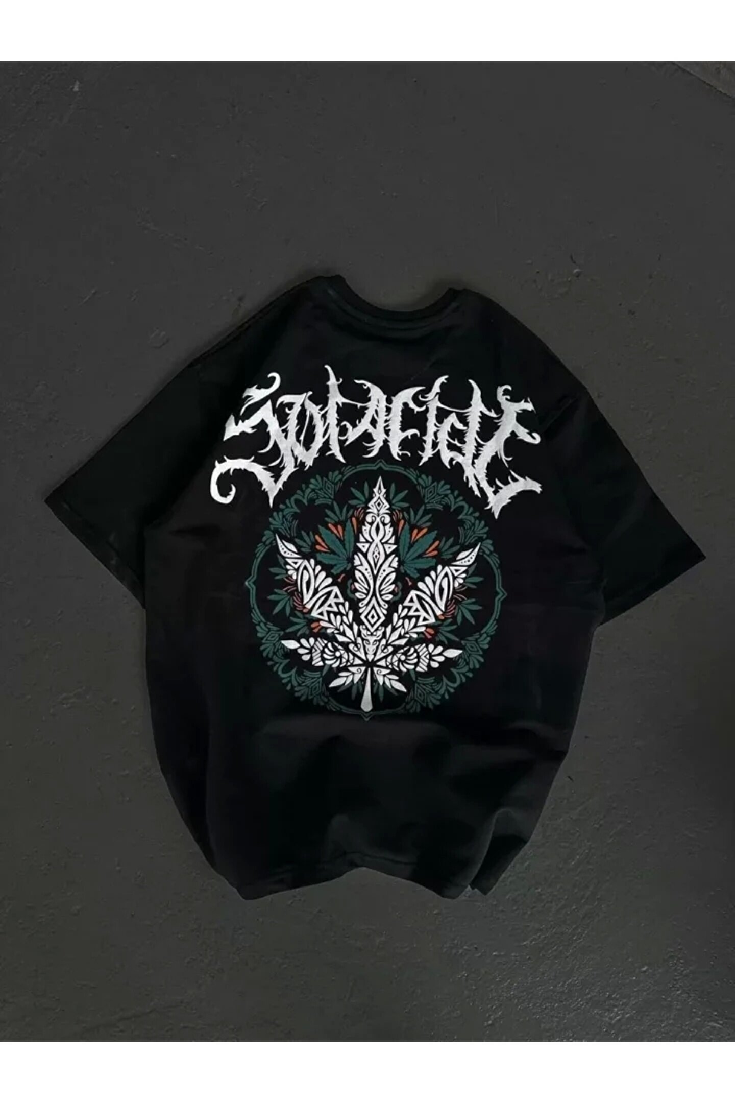 Unisex Bisiklet Yaka Baskılı Oversize T-Shirt - Siyah Modelin Ölçüleri: Boy:165, Kg:55, Göğüs:90, Bel:72, Kalça: 100 Modelin üzerindeki ürün M/38 bedendir