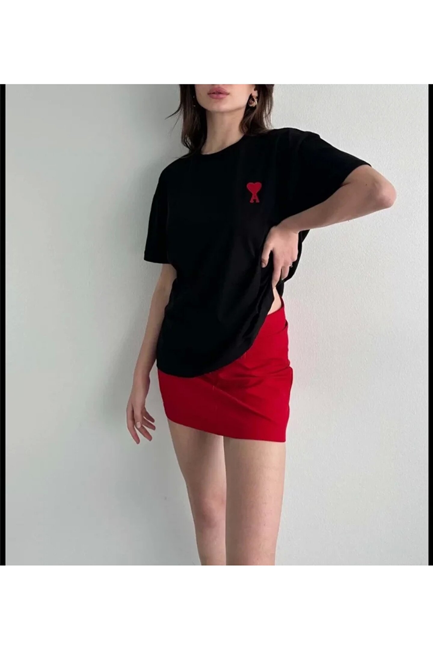 Unisex Bisiklet Yaka Baskılı Oversize T-Shirt - Siyah Modelin Ölçüleri: Boy:165, Kg:55, Göğüs:90, Bel:72, Kalça: 100 Modelin üzerindeki ürün M/38 bedendir