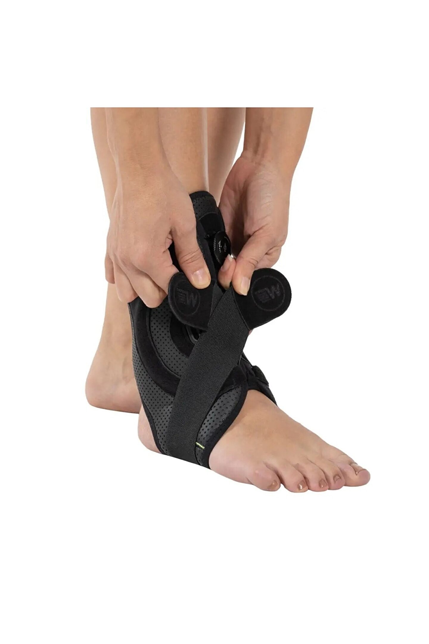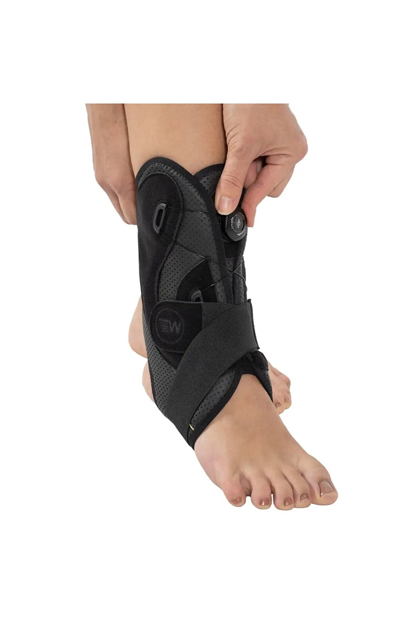 W654 Ayak bileklik pratik sistemli Deri ve hava alabilen kumaştan üretilmiştir. Malleollerin çevresinde, stabilizasyonu sağlayan özel formlu alüminyum destekleri mevcuttur. Üzerinde bulunan pratik sistemli mekanizma sayesinde kullanım kolaylığı sağlar. Sekiz şeklinde sarılan elastik çapraz bandı ise ekstra koruma bandajıdır. . Endikasyonlar Pre-Op ve post-Op ligament yaralanmaları ; Burkulma ve incinme sonrası kompresyon ve destek amaçlı ;