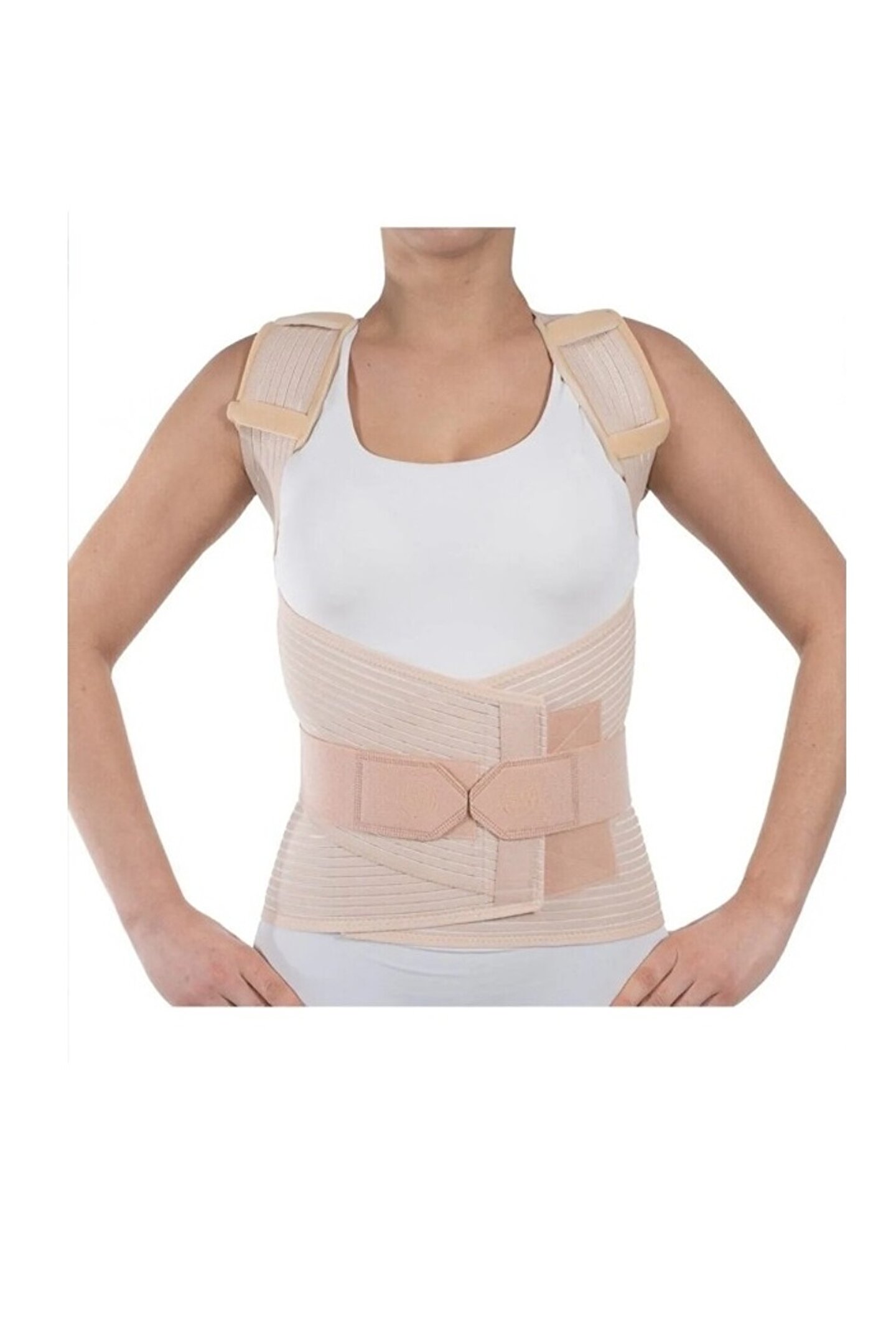 Hava alabilen kumaştan üretilmiştir. ; Postural destek sağlayan omuz bantları koltuk altından geçerek arkadan çapraz gelip önde birleşerek lomber bölgesine destek sağlar. ; Sırt bölgesinde bulunan 2 adet çelik destek vücüdun şeklini alabilmektedir. ; Günlük hayatta güven ve rahatlık hissi verir. ; ;.