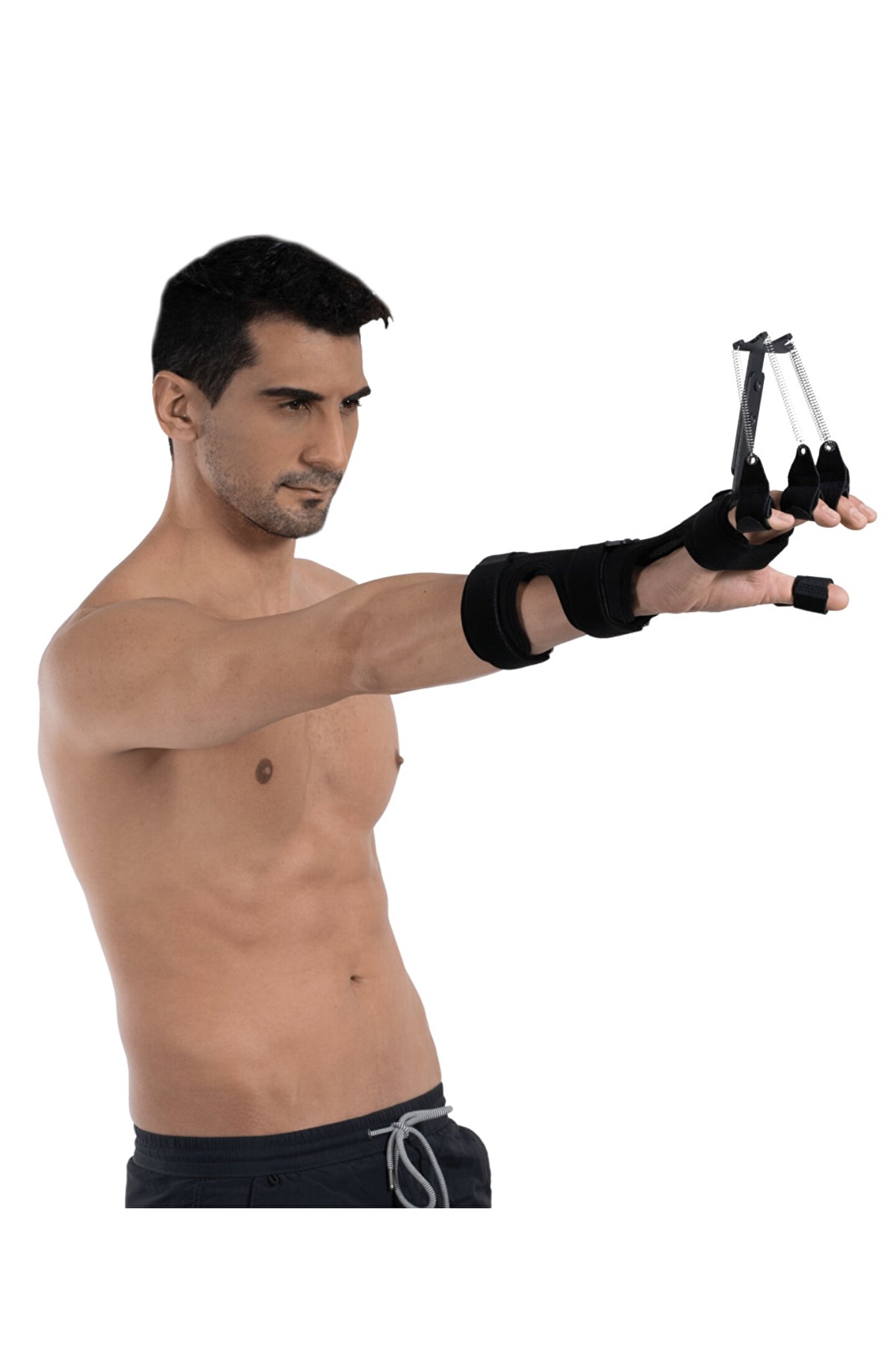 Dinamik El Ateli Alüminyum takviyeli süngerli kumaştan üretilmiş bir el ve bilek ortezidir. Bilek ve parmakları pasif olarak ekstansiyonda tutar. Aktif parmak fleksiyonuna olanak sağlar. Endikasyonlar Kas hareketsizliğini düzeltmede; Ulnar sinir hasarlarında; Cerrahi müdahale sonrası rehabilitasyonda; BEDEN UNIVERSAL SIZE
