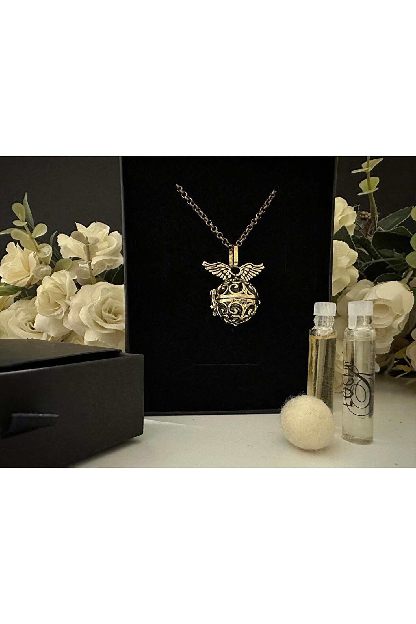 Aromaterapi kolyesi uçucu yağ parfüm diffüzör kolye Aromaterapi kolyeleri çok eski çağlardan bu yana süs eşyası ve çeşitli amaçlar için kullanılmış olan özel takılardır.; Bir süs eşyasının zenginlik ve zerafeti ile ,içinde bulundurulan doğanın gücü bitkilerin saf uçucu yağlarının yüzyıllardır kullanılan Etkilerini bir araya getirir.; Üzerinizde taşıyacağınız aromaterapi kolyelerinin her Biri bir anlam taşıyan zarif tasarımlardan oluşmaktadır.; Içindeki keçe topa damlatacağınız aromaterapi yağları ise sizler için özel olarak hazırlanmış olup, doğanın büyülü gücünü gün boyunca yanınızda hissetmenizi sağlayacaktır.; Dilerseniz kullandığınız parfümü de kolyeniz içinde gün boyu değişmeden ısı ve nemden etkilenmeden ve giysilerinize temas etmeden kullanabilirsiniz.; Sizlere beğeneceğinizi umduğumuz bir konsantre parfüm de hediye olarak gönderiyoruz.; Lavanta yağı 2ml : Lavandula angustifolia bitkisinin çiçeklerinden distilasyon yoluyla elde edilmiş %100 doğal uçucu yağdır.; Aromaterapide rahatlatıcı, kaygı ve gerginlik azaltıcı, ağrı azaltıcı, uyku kalitesini artırıcı, ve doğal böcek savar özellikleri nedeniyle kullanılmaktadır.; Duygusal ve fiziksel iyilik hali için destekleyici özelliktedir.; Kesinlikle tıbbi tedavi yerine geçmez.; Gebe ve çocuklarda kullanımı için mutlaka hekiminize danışmanız önerilir.