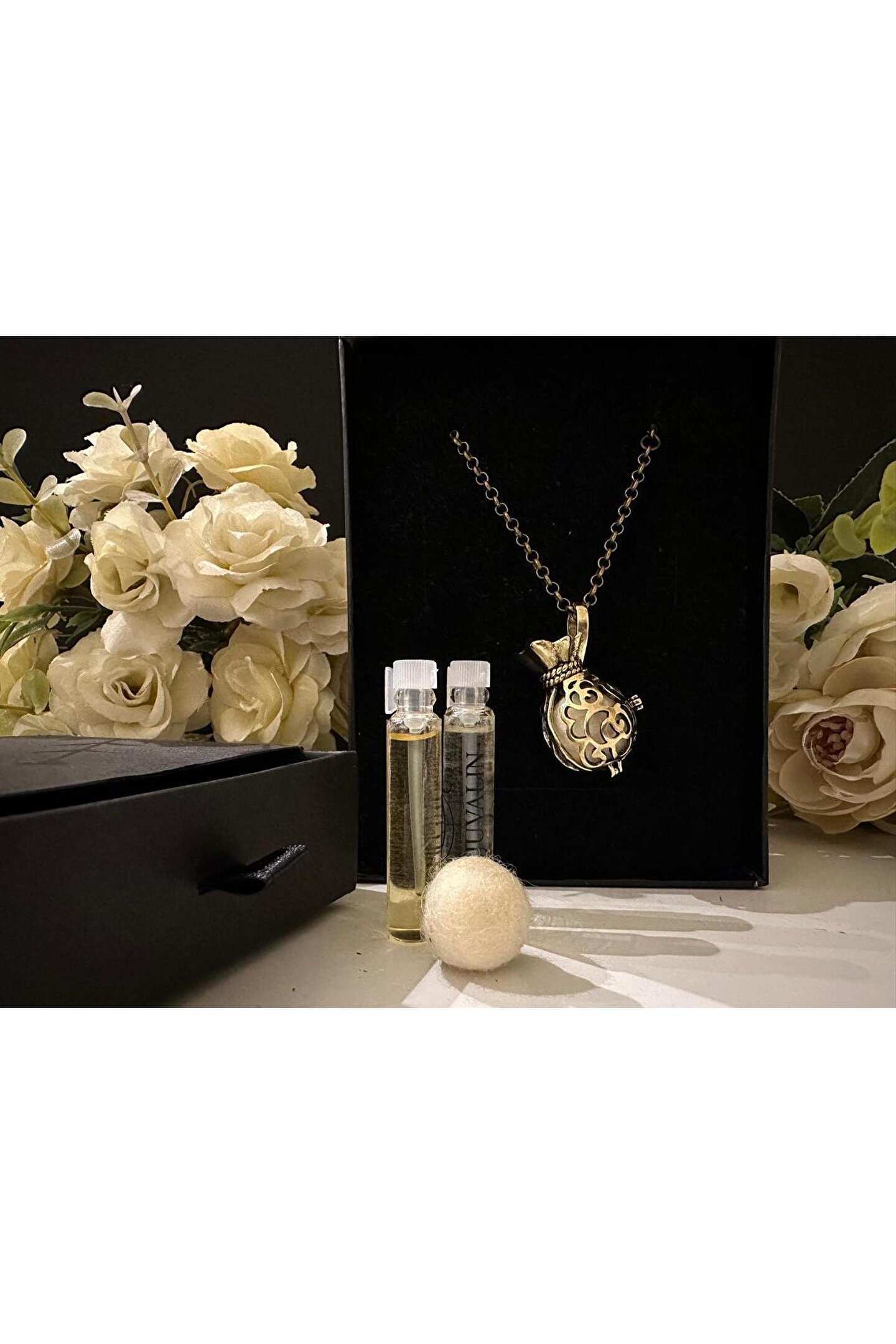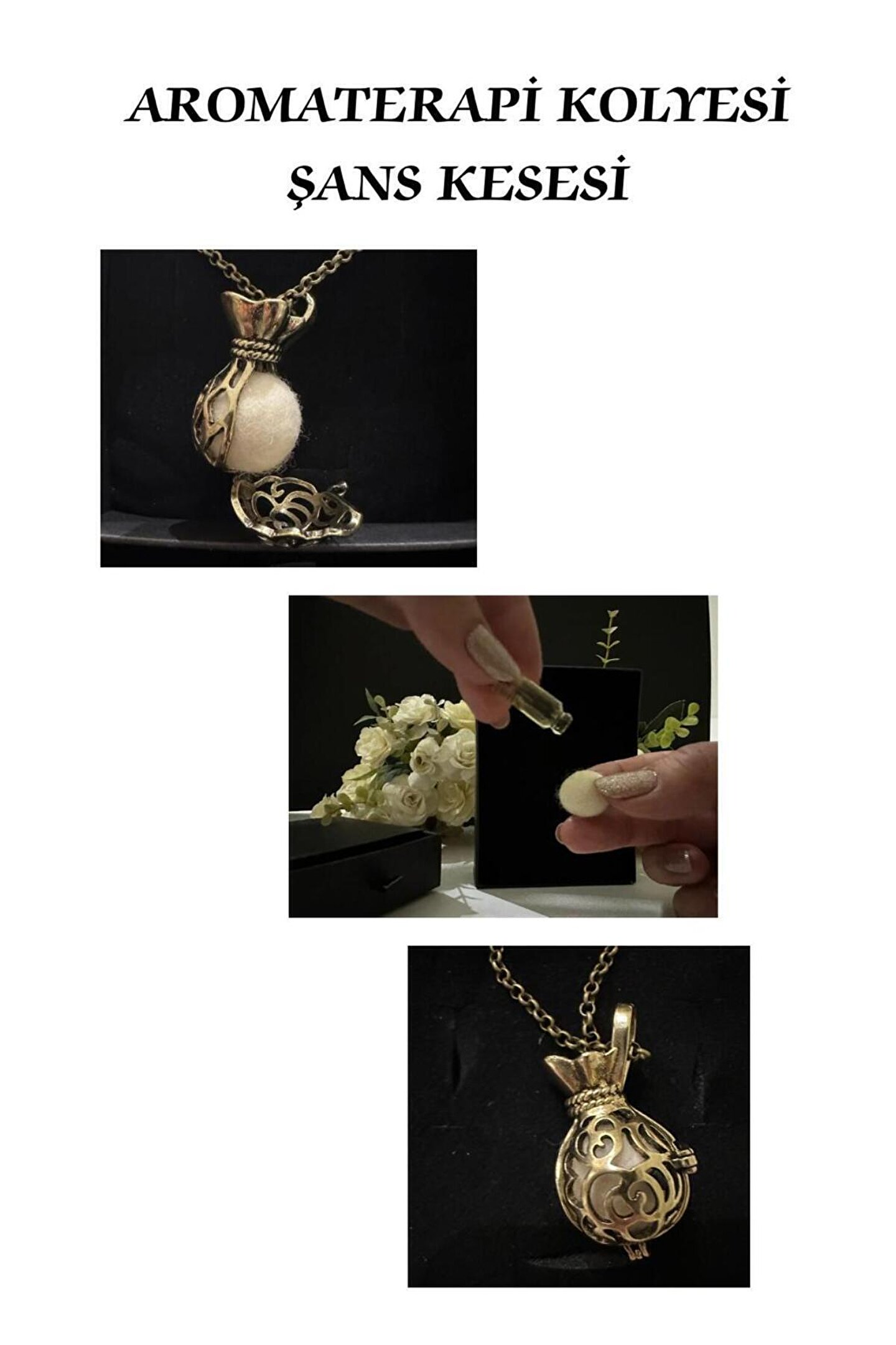 Aromaterapi kolyesi uçucu yağ parfüm diffüzör kolye Aromaterapi kolyeleri çok eski çağlardan bu yana süs eşyası ve çeşitli amaçlar için kullanılmış olan özel takılardır.; Bir süs eşyasının zenginlik ve zerafeti ile ,içinde bulundurulan doğanın gücü bitkilerin saf uçucu yağlarının yüzyıllardır kullanılan Etkilerini bir araya getirir.; Üzerinizde taşıyacağınız aromaterapi kolyelerinin her Biri bir anlam taşıyan zarif tasarımlardan oluşmaktadır.; Içindeki keçe topa damlatacağınız aromaterapi yağları ise sizler için özel olarak hazırlanmış olup, doğanın büyülü gücünü gün boyunca yanınızda hissetmenizi sağlayacaktır.; Dilerseniz kullandığınız parfümü de kolyeniz içinde gün boyu değişmeden ısı ve nemden etkilenmeden ve giysilerinize temas etmeden kullanabilirsiniz.; Sizlere beğeneceğinizi umduğumuz bir konsantre parfüm de hediye olarak gönderiyoruz.; Lavanta yağı 2ml : Lavandula angustifolia bitkisinin çiçeklerinden distilasyon yoluyla elde edilmiş %100 doğal uçucu yağdır.; Aromaterapide rahatlatıcı, kaygı ve gerginlik azaltıcı, ağrı azaltıcı, uyku kalitesini artırıcı, ve doğal böcek savar özellikleri nedeniyle kullanılmaktadır.; Duygusal ve fiziksel iyilik hali için destekleyici özelliktedir.; Kesinlikle tıbbi tedavi yerine geçmez.; Gebe ve çocuklarda kullanımı için mutlaka hekiminize danışmanız önerilir.