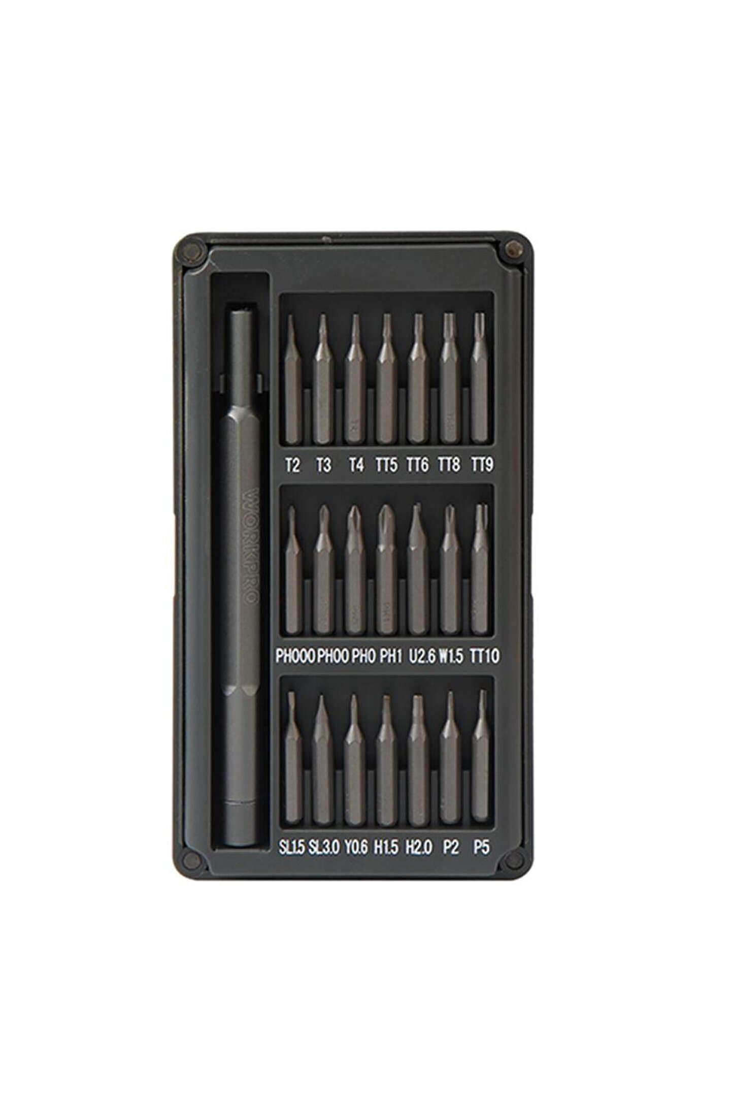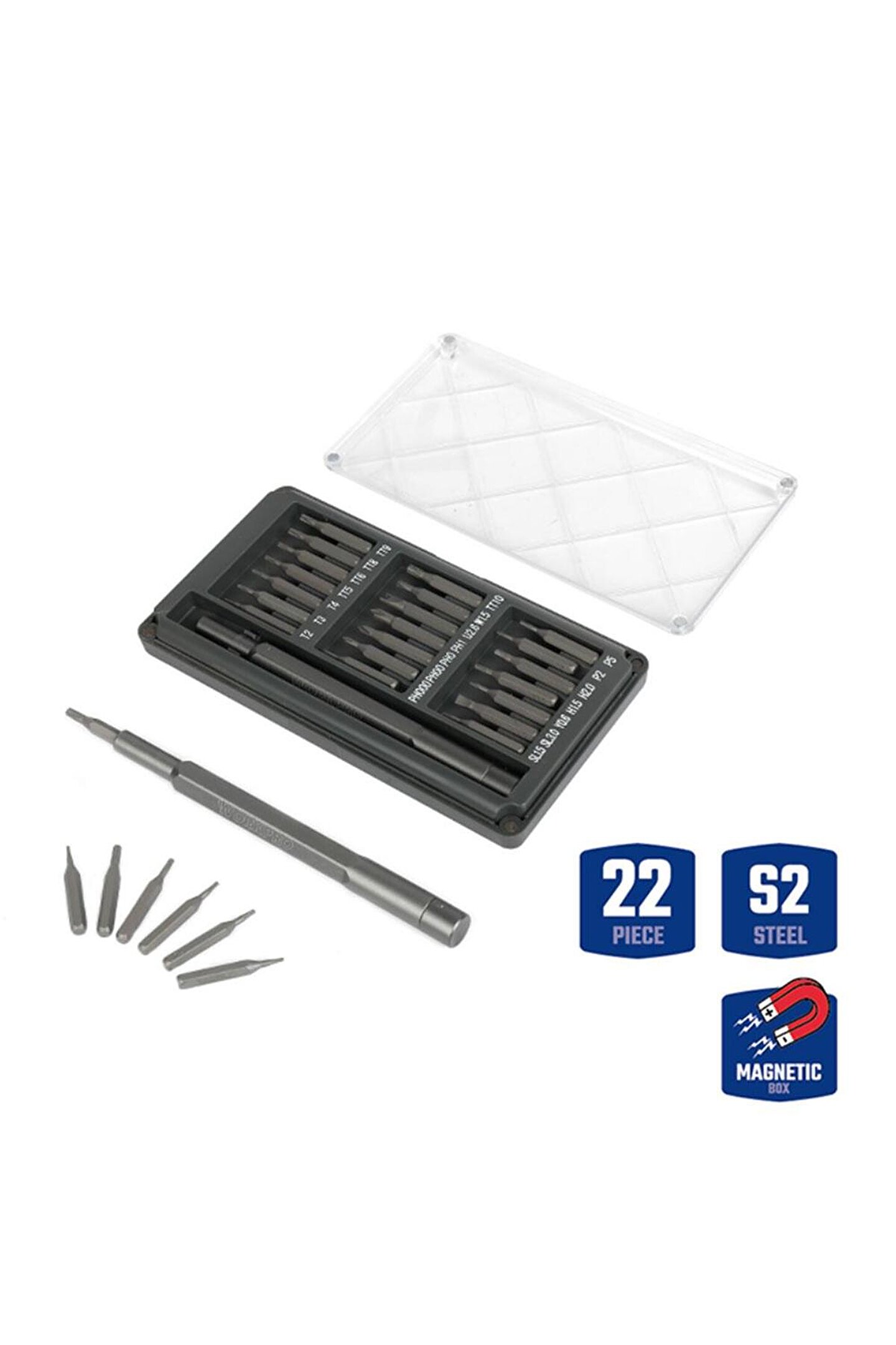 • WORKPRO WP200511 22 Parça Profesyonel Manyetik Saatçi Tornavida Seti • Dizüstü bilgisayarlar, cep telefonları, tabletler, oyun konsolları ve diğer elektronik cihazların genel onarımı için uygundur.; • Profesyonel olarak Mekanik veya her türlü elektrikli, elektronik aletlerinin bakım ve onarımları için paslanmaya dayanıklı yüksek S2 karbon çeliğinden üretilmiştir.; • Geliştirilmiş dayanıklılık, paslanma direnci ve korozyon önleyici özellik için ısıl işlem görmüş S2 karbon çeliği ile üretilmiştir.; • S2 Karbon çelik sayesinde uç sıyırmalarına karşı üstün dayanıklılık ve direnç sağlar.; • Tepe noktasına entegre avuç içinde dönebilen başlık sayesinde hassas vidalama yaparken avuç içini acıtmaz, üstün kontrol sağlar.; • Tamamen manyetik koruyucu çanta sayesinde vidalama uçları manyetik alan üzerine yapışarak karışmasını engeller.; • Mıknatıslı şeffaf kapak sayesinde alet ve aksesuarları güvenli saklamanızı sağlar.; • Parmak ucu kontrolü için krom kaplama gövde.; • Yüksek kaliteli S2 çelik kullanılmıştır, hassas ve ısıl işlemden sonra vidalama uçları daha sert ve dayanıklı hale getirilmiştir.; • İÇERİK: SL1.5, SL3.0mm Düz Saatçi Tornavida • PH000 / PH00 / PH0 / PH1 Yıldız Saatçi Tornavida • T2/T3/T4 Torx Saatçi Tornavida • TT5/TT6/TT8/TT9/TT10 Delikli Torx Saatçi Tornavida • U2.6 Saatçi Tornavida • W1.5 Saatçi Tornavida • Y0.6 Saatçi Tornavida • H1.5 / H2 Hex Saatçi Tornavida • P2, P5 Saatçi Tornavida • Şeffaf Taşıma Çantası • WORKPRO, Amerika Birleşik Devletleri menşeli profesyonel bir El Aleti markası olup 1992 yılında kurulmuştur.; • WORKPRO, Dünyanın en büyük El Aleti üreticisidir ve Mekanik El Aletleri alanında dünya çapında 21 üretim üssüne sahiptir.; • WORKPRO, Dünya genelinde 5 AR-GE üssü ve inovasyon teknoloji merkezleri sayesinde, her yıl 400'den fazla yeni ürün geliştirmektedir.; Sektöründe 700'den fazla uluslararası patentin de sahibidir.; • WORKPRO, Sadece profesyonel değil, aynı zamanda Rekabetçi Fiyat, Yüksek Kalite ve Geniş Ürün Çeşidiyle Dünya çapında 100’den fazla ülkede hizmet vermektedir.