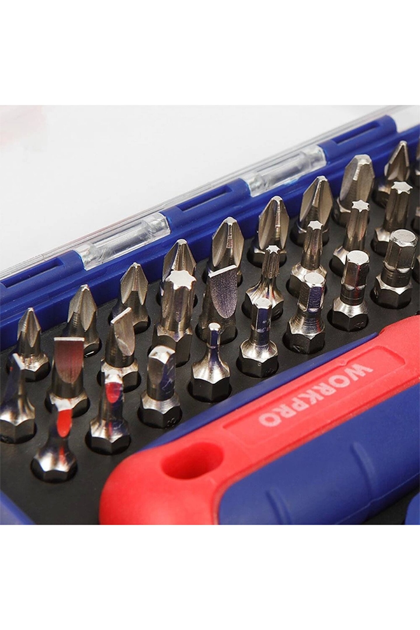 • WORKPRO WP200517 38 Parça Profesyonel CR-V Cırcırlı Bits Tornavida Seti • Mekanik veya elektrikli aletlerin, elektronik aletlerin bakım ve onarımında, profesyonel olarak kullanılabilmesi için paslanmaya ve aşınmaya dayanıklı Krom Vanadium bits vidalama uçlarına sahiptir.; • Geliştirilmiş dayanıklılık, paslanma direnci ve korozyon önleyici özellik için ısıl işlem görmüş CR-V çelikten yapılmış 38 Parça bits tornavida seti.; • Cırcırlı mekanizma sayesinde hem sağ hem sol yönünde konforlu vidalama yapmanızı sağlar.; • Cırcır kilitleme mekanizması ile manuel vidalama imkânı.; • Rahat kullanım için kaymayan, kolay kavranan tutma sapı sayesinde konforlu kullanım imkânı.; • Üst düzey kauçuk kaplama sap tasarımı kaymayı önler, el yorgunluğunu azaltır.; • Yüksek kaliteli CR-V çelik kullanılmıştır, hassas ve ısıl işlemden sonra vidalama uçları daha sert ve dayanıklı hale getirilmiştir.; • İÇERİK: SL 3mm, 4mm, 2Ad 5mm, 2Ad 6mm Düz Bits Vidalama Uçları • 2Ad PH0 / 2Ad PH1 / 5Ad PH2 / PH3 Yıldız Bits Vidalama Uçları • SO/S1/S2/S3 Bits Vidalama Uçları • T10/T15/T20/T25/T27/T30 Torx Bits Vidalama Uçları • H2/H3/2Ad H4/3Ad H5/2Ad H6 Hex Bits Vidalama Uçları • Cırcırlı Vidalama Kolu • Taşıma Çantası • WORKPRO, Amerika Birleşik Devletleri menşeli profesyonel bir El Aleti markası olup 1992 yılında kurulmuştur.; • WORKPRO, Dünyanın en büyük El Aleti üreticisidir ve Mekanik El Aletleri alanında dünya çapında 21 üretim üssüne sahiptir.; • WORKPRO, Dünya genelinde 5 AR-GE üssü ve inovasyon teknoloji merkezleri sayesinde, her yıl 400'den fazla yeni ürün geliştirmektedir.; Sektöründe 700'den fazla uluslararası patentin de sahibidir.; • WORKPRO, Sadece profesyonel değil, aynı zamanda Rekabetçi Fiyat, Yüksek Kalite ve Geniş Ürün Çeşidiyle Dünya çapında 100’den fazla ülkede hizmet vermektedir.