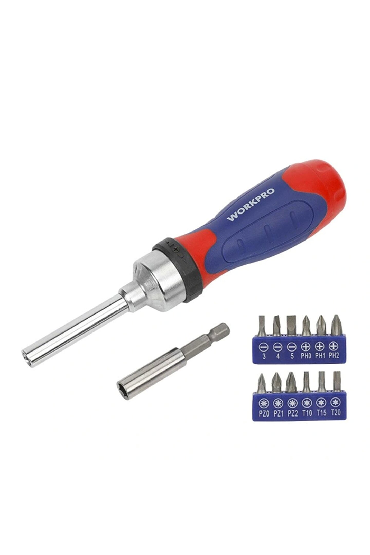 • WORKPRO WP200524 14 Parça Profesyonel CR-V Cırcırlı Bits Tornavida Seti • Mekanik veya elektrikli aletlerin, elektronik aletlerin bakım ve onarımında, profesyonel olarak kullanılabilmesi için paslanmaya ve aşınmaya dayanıklı Krom Vanadium bits vidalama uçlarına sahiptir.; • Geliştirilmiş dayanıklılık, paslanma direnci ve korozyon önleyici özellik için ısıl işlem görmüş CR-V çelikten yapılmış 14 Parça bits tornavida seti.; • Cırcırlı mekanizma sayesinde hem sağ hem sol yönünde konforlu vidalama yapmanızı sağlar.; • Cırcır kilitleme mekanizması ile manuel vidalama imkânı.; • Rahat kullanım için kaymayan, kolay kavranan tutma sapı sayesinde konforlu kullanım imkânı.; • Üst düzey kauçuk kaplama sap tasarımı kaymayı önler, el yorgunluğunu azaltır.; • Yüksek kaliteli CR-V çelik kullanılmıştır, hassas ve ısıl işlemden sonra vidalama uçları daha sert ve dayanıklı hale getirilmiştir.; • Tutma sapı içine yerleştirilebilen bits uçlar sayesinde aksesuarlara hızlı erişim sağlanır.; • Paslanmaya ve korozyona karşı dayanıklı krom kaplı cırcır mekanizması ve şaft.; • İÇERİK: SL 3mm, 4mm, 5mm Düz Bits Vidalama Uçları • PH0 / PH1 / PH2 Yıldız Bits Vidalama Uçları • PZ0 / PZ1 / PZ2 Yıldız Bits Vidalama Uçları • T10 / T15 / T20 Torx Bits Vidalama Uçları • 60mm Manyetik Uzatma Şaftı • Cırcırlı Vidalama Kolu • WORKPRO, Amerika Birleşik Devletleri menşeli profesyonel bir El Aleti markası olup 1992 yılında kurulmuştur.; • WORKPRO, Dünyanın en büyük El Aleti üreticisidir ve Mekanik El Aletleri alanında dünya çapında 21 üretim üssüne sahiptir.; • WORKPRO, Dünya genelinde 5 AR-GE üssü ve inovasyon teknoloji merkezleri sayesinde, her yıl 400'den fazla yeni ürün geliştirmektedir.; Sektöründe 700'den fazla uluslararası patentin de sahibidir.; • WORKPRO, Sadece profesyonel değil, aynı zamanda Rekabetçi Fiyat, Yüksek Kalite ve Geniş Ürün Çeşidiyle Dünya çapında 100’den fazla ülkede hizmet vermektedir.