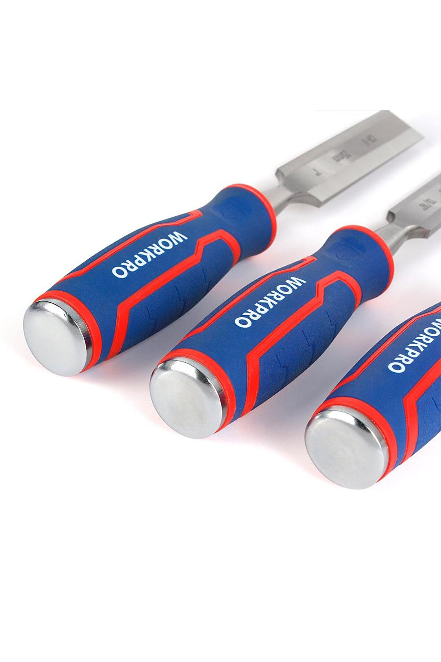 • WORKPRO WP201301 12-20-25MM Üçlü Profesyonel İskarpela Seti • Marangoz hanelerde, hobi ve oyuncak atölyelerinde kapı, pencere, masa, sandalye, çerçeve, maket gibi hobi veya profesyonel tüm oyma ve şekil verme gibi işlerde paslanmaya ve aşınmaya karşı dayanıklı ve uzun ömürlü kullanım için krom Vanadium dövme çelikten üretilmiştir.; • Sertleştirilmiş dövme CR-V çelikten üretilmiş son derece keskin ağız yapısı sayesinde keskinliğini çok uzun süre korur, yorulmadan daha hızlı oyma ve şekil verme işlemi yapmanızı sağlar.; • Yüksek kaliteli CR-V çelik kullanılmıştır, hassas ve ısıl işlemden sonra kesici uç daha sert ve dayanıklı hale getirilmiştir.; • Cr-V alaşım, pas ve korozyon gibi dış etkenlerden koruyarak uzun ömürlü yapı kazandırır.; • Uzun boy Çelik CR-V şaft sayesinde dar ve derin yerlere kolay erişim imkânı.; • Çekiç veya tokmak ile sert ve sürekli darbelere dayanıklı hale getirilmiş çelik dipçik sayesinde profesyonel kullanım imkânı.; • Patentli ANTI-SHOCK™ Avuç içini terletmeyen ve titreşim emici kauçuk kaplı tutma sapı sayesinde uzun süreli çalışmalarda avuç içine zarar vermez el ve bilek sağlığınızı korumanızı sağlar.; • PVC duvar askı delikli, kilitli koruyucu muhafaza kılıfı sayesinde güvenle taşımanızı ve saklamanızı sağlar.; • WORKPRO, Amerika Birleşik Devletleri menşeli profesyonel bir El Aleti markası olup 1992 yılında kurulmuştur.; • WORKPRO, Dünyanın en büyük El Aleti üreticisidir ve Mekanik El Aletleri alanında dünya çapında 21 üretim üssüne sahiptir.; • WORKPRO, Dünya genelinde 5 AR-GE üssü ve inovasyon teknoloji merkezleri sayesinde, her yıl 400'den fazla yeni ürün geliştirmektedir.; Sektöründe 700'den fazla uluslararası patentin de sahibidir.; • WORKPRO, Sadece profesyonel değil, aynı zamanda Rekabetçi Fiyat, Yüksek Kalite ve Geniş Ürün Çeşidiyle Dünya çapında 100’den fazla ülkede hizmet vermektedir.