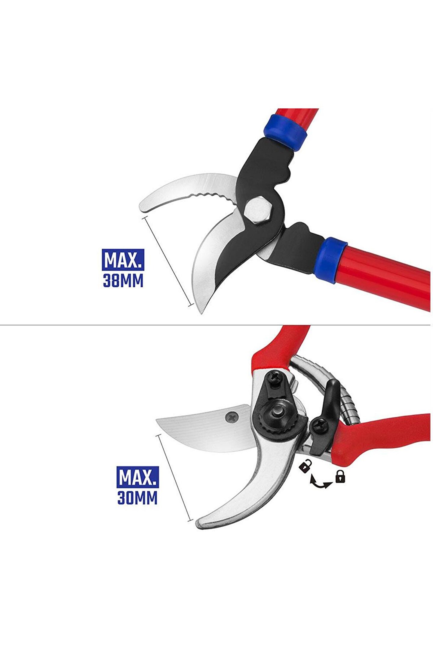 • WORKPRO WP204500 2’li Profesyonel Bağ Bahçe Dal Budama Makası Seti • Maksimum 200mm ve 380mm iki ayrı budama makasından oluşan S50C Yüksek dayanımlı karbon alaşımlı paslanmaz çelik bıçaklardan oluşan 2 parça setten oluşmaktadır.; • Üzüm bağı, meyve ağacı, genel ağaç dalı, sert dallara sahip çiçekler ve peyzaj düzenlemelerinde uzun ömürlü kullanılabilmesi için paslanma ve aşınmaya karşı dayanıklı paslanmaz çelik bıçak ve gövdeden üretilmiştir.; • Büyük makas kalın ve orta boy dalların budanmasında 380mm’lik geniş tutma kolları ve maksimum 38mm’e kadar ağız açıklığı ile maksimum 15mm’e kadar kalın dalların budanmasında üstün sağlar.; • Küçük makas ince dalların budanmasında 200mm’lik avuç içi tutma kolları ve 30mm’e kadar ağız açıklığı ile maksimum 10mm’e kadar ince dalların budanmasında profesyonel kullanım imkânı sağlar.; • Avuç içini terletmeyen kauçuk kaplı tutma sapları sayesinde uzun süreli çalışmalarda avuç içine zarar vermez el ve bilek sağlığınızı korumanızı sağlar.; • Bıçak kilit mekanizması ile güvenli taşıma ve muhafaza edilmesini sağlar.; • WORKPRO, Amerika Birleşik Devletleri menşeli profesyonel bir El Aleti markası olup 1992 yılında kurulmuştur.; • WORKPRO, Dünyanın en büyük El Aleti üreticisidir ve Mekanik El Aletleri alanında dünya çapında 21 üretim üssüne sahiptir.; • WORKPRO, Dünya genelinde 5 AR-GE üssü ve inovasyon teknoloji merkezleri sayesinde, her yıl 400'den fazla yeni ürün geliştirmektedir.; Sektöründe 700'den fazla uluslararası patentin de sahibidir.; • WORKPRO, Sadece profesyonel değil, aynı zamanda Rekabetçi Fiyat, Yüksek Kalite ve Geniş Ürün Çeşidiyle Dünya çapında 100’den fazla ülkede hizmet vermektedir.