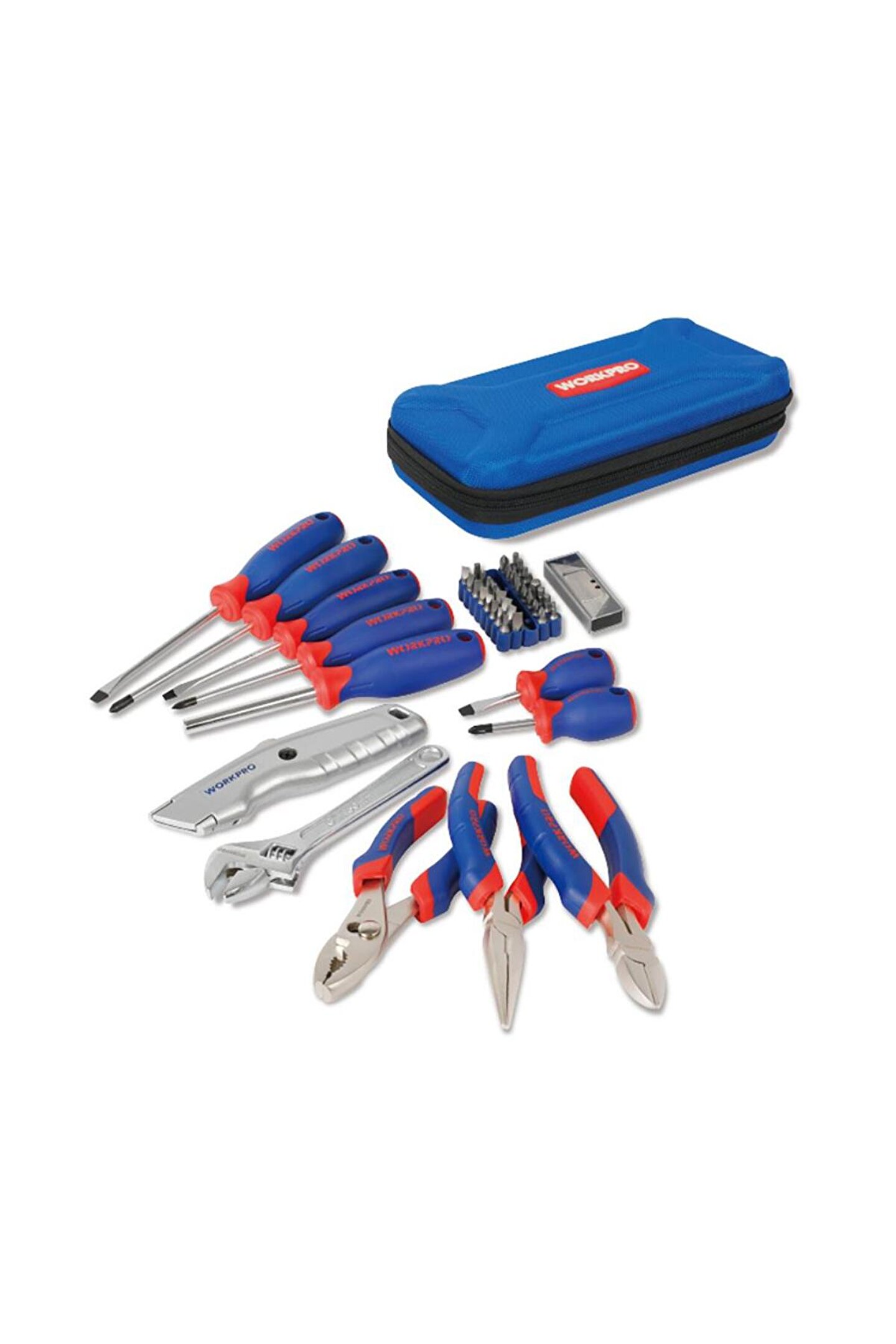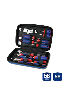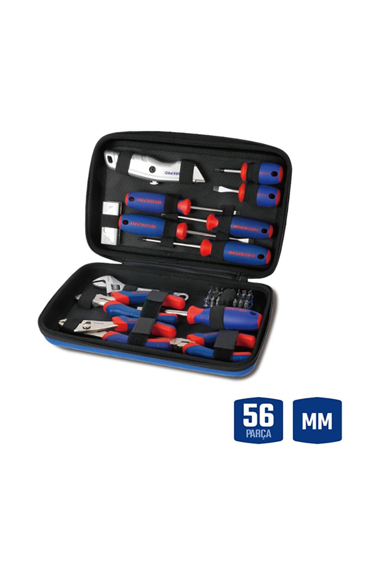 • WORKPRO WP209008 56 Parça Profesyonel Tamir/Bakım Alet Seti • Mobilya montajında, genel tamirat ve tadilat işleri ile mekanik veya elektrikli aletlerin bakım ve onarımında kullanılabilmesi için paslanmaya ve aşınmaya dayanıklı Krom kaplamaya sahiptir.; • Tornavida, Pense, Yan Keski, Kargaburnu, Ayarlı Anahtar, Maket Bıçağı, Maket Bıçağı Yedeği, Bits Vidalama Uçları içeren genel maksatlı tamir, montaj bakım setinden oluşmaktadır.; • Tornavida ve pense uçları yüksek tork mukavemetli modifiye edilmiş Manyetik Cr-V çelikten üretilmiştir.; • Cr-V alaşım, pas ve korozyon gibi dış etkenlerden koruyarak uzun ömürlü yapı kazandırır.; • Vidalama yaparken sürtünmeyi en aza indirerek vidaların daha iyi kavranmasını sağlar, bu sayede vida yuvalarına zarar vermez.; • Geliştirilmiş güçlü, siyah manyetik uca sahip tornavida, yüksek dayanıklılık ve rahat kavrama sağlar.; • Güçlü manyetik ucu, baş aşağı durumlarda bile vidanızı tutar.; Daha iyi kontrol sağlar.; • Rahat kullanım için kaymayan, kolay kavranan tutma sapı sayesinde konforlu kullanım imkânı.; • Üst düzey kauçuk kaplama sap tasarımı kaymayı önler, el yorgunluğunu azaltır.; • Taşıma çantası ile alet ve aksesuarları temiz ve güvenli bir şekilde saklama.; • İÇERİK: • 1 Adet 160mm Amerikan Tipi Ayarlı Pense • 1 Adet 160mm Kargaburnu • 1 Adet 160mm Yan keski • 1 Adet 160mm Kurbağacık Anahtar • 3 Adet = SL6x38mm / SL5x75mm / SL6x100mm • 3 Adet = PH2x38mm / PH1x75mm / PH2x100mm • 1 Adet Bits Uç Tutucu Tornavida • 1 Adet 50mm Bits Uç Tutucu • 11 Adet= 2xSL3 / 2xSL4 / 2xSL5 / 2xSL5.5 / 2xSL6 / SL7 25mm Bits • 8 Adet = 2xPH0 / 2xPH1 / 3xPH2 / PH3 25mm Bits • 4 Adet = PZ0 / PZ1 / PZ2 / PZ3 25mm Bits • 4 Adet = T10 / T15 / T20 / T25 25mm Bits • 4 Adet = H3 / H4 / H5 / H6 25mm Bits • 1 Adet = ¼” 25mm Lokma Adaptör Bits Uç • 1 Adet Alüminyum Rötuş Maket Bıçağı • 10 Adet Rötuş Maket Bıçağı Yedeği • 1 Adet Bez Taşıma Çantası