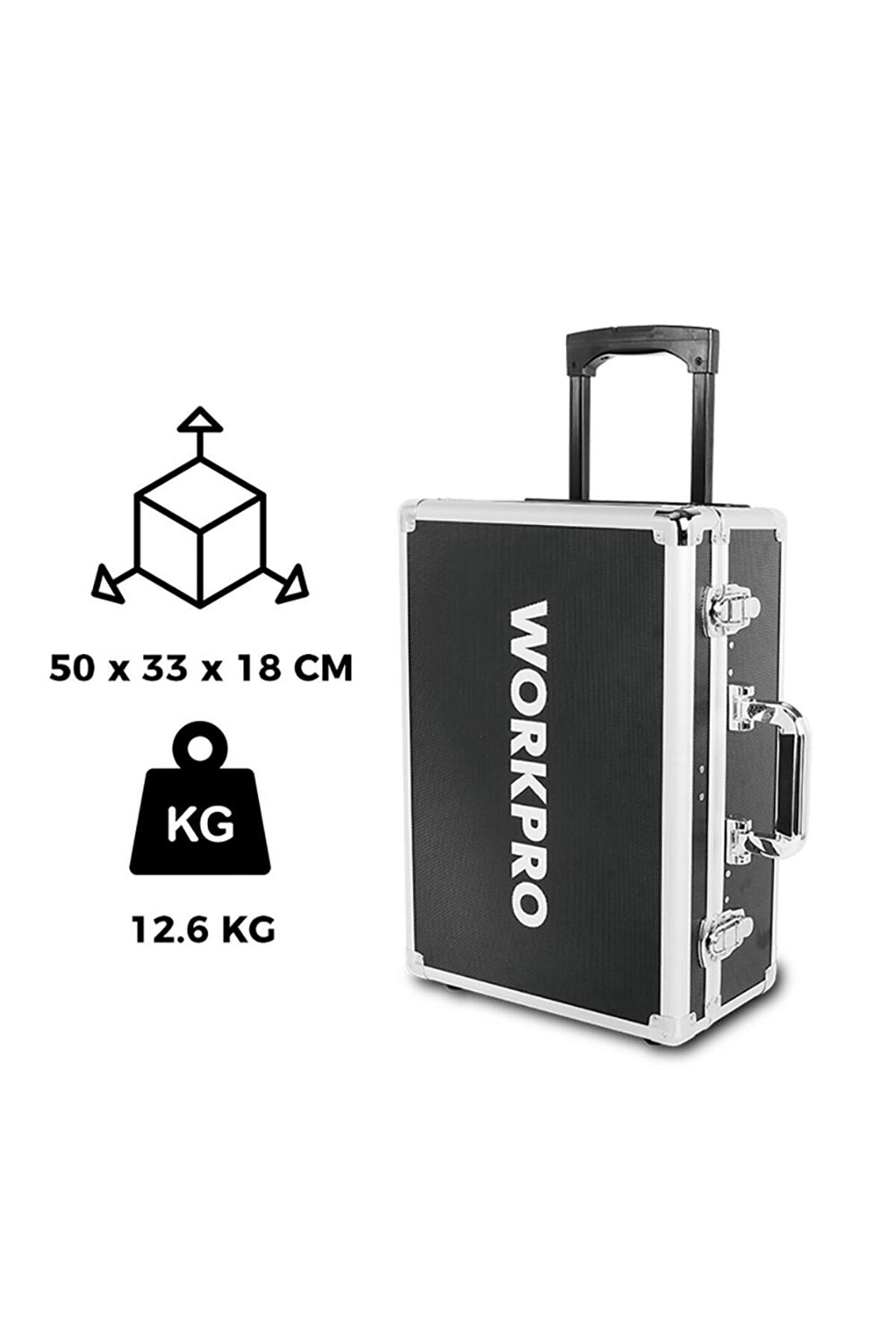 • WORKPRO WP209089 145 Parça CR-V Profesyonel El Aleti Tamir Seti Tamir Bakım Çantası • Mobilya montajında, genel tamirat ve tadilat işleri ile mekanik veya elektrikli aletlerin bakım ve onarımında profesyonel olarak kullanılabilmesi için paslanmaya ve aşınmaya dayanıklı CR-V kaplamaya sahiptir.; • Hassas ve Normal Tornavida setleri, Kargaburnu, Ayarlı Anahtar, Çekiç, Metre, Allen Anahtar Takımı, Lokma Uçları, Kombine anahtar takımı, Su terazisi, Demir Testere, Bits Vidalama Uçları, Maket Bıçağı, Makas, Eğe, Fort pense, Kablo Sıyırma/Sıkma Pensesi ve tüm bu aletlerin yerleştirilip taşınacağı teleskobik saplı tekerlekli Alüminyum takım çantasından oluşan genel maksatlı profesyonel tamir, bakım ve montaj setidir.; • Cr-V alaşım, pas ve korozyon gibi dış etkenlerden koruyarak uzun ömürlü yapı kazandırır.; • Toplam 40 Parçalı ½” ve ¼” Cr-V Lokma seti ile profesyonel kullanım imkânı.; • Alüminyum kilitlenebilir profesyonel taşıma çantası ile alet ve aksesuarları temiz, düzenli ve güvenli bir şekilde saklamanızı sağlar.; • İÇERİK: • 1 Adet 160mm Kargaburnu • 1 Adet 160mm Yan keski • 1 Adet 200mm Pense • 1 Adet 250mm Fort Pense • 1 Adet 200mm Kablo Sıyırma/Sıkma Pensesi • 1 Adet 300gr.; Fiberglas Saplı Çekiç • 4 Adet (SL5.5x100mm, SL6.5x150mm, PH1x100mm, PH2x150mm Tornavida Takımı) • 4 Adet (PH00x50mm, PH0x50mm, SL2.0x50mm, SL3.0x50mm Hassas Tornavida Takımı) • 1 Adet Bits Uç Tutucu Tornavida • 11Adet (8,9,10,11,12,13,14,16,17,18,19mm Kombine Anahtar Seti) • 1 Adet ¼” Cırcır Lokma Kolu • 1 Adet ½” Cırcır Lokma Kolu • 1 Adet ¼” Mafsal • 1 Adet ½” Mafsal • 13 Adet (4, 4.5, 5, 5.5, 6, 7, 8, 9, 10, 11, 12, 13, 14mm ¼” Lokma Seti) • 15 Adet (10, 11, 12, 13, 14, 15, 16, 17, 18, 19, 20, 21, 22, 23, 24mm ½” Lokma Seti) • 2 Adet 16, 21mm ½” Lokma • 1 Adet 3/8” ü ½” Dönüştürücü Lokma Adaptör • 1 Adet ¼” 110mm T Kol • 2 Adet ¼” 50mm, 150mm Lokma Uzatma Şaftı • 1 Adet ½” 250mm Lokma Uzatma Şaftı • 1 Adet ¼” 150mm Esnek Spiral Uzatma Şaftı • 1 Adet ¼” 110mm T Kol • 1 Adet ¼” Bits Uç Tutucu Lokma • 9 Adet (1.5, 2, 2.5, 3, 4, 5, 6, 8, 10mm Cr-V Metrik Allen Anahtar Takımı • 50 Adet (SL3, 3xSL4, 5xSL5, 3xSL6, SL7, PH0, 2xPH1, 2xPH2, PH3, PZ0, 3xPZ1, 3xPZ2, 2xPZ3, T7, T8, T9, T10, T15, T20, T25, T27, T30, T40, H2, H2.5, 2xH3, 2xH4, 2xH5, H6, S0, S1, S2, S3 Bits Vidalama Uç Seti) • 1 Adet 300mm Alüminyum Torpedo Su Terazisi • 1 Adet 250mm Demir Testere • 1 Adet 200mm Eğe • 1 Adet 200mm Kurbağacık Anahtar • 1 Adet Şerit Metre (5m) • 1 Adet 18mm Maket Bıçağı / 10x 18mm Maket Bıçağı Yedeği • 1 Adet 215mm Makas • 1 Adet Magnetize/Demagnetize Manyetizma • 1 Adet Profesyonel Tutma kollu Tekerlekli Alüminyum Alet Takım Çantası