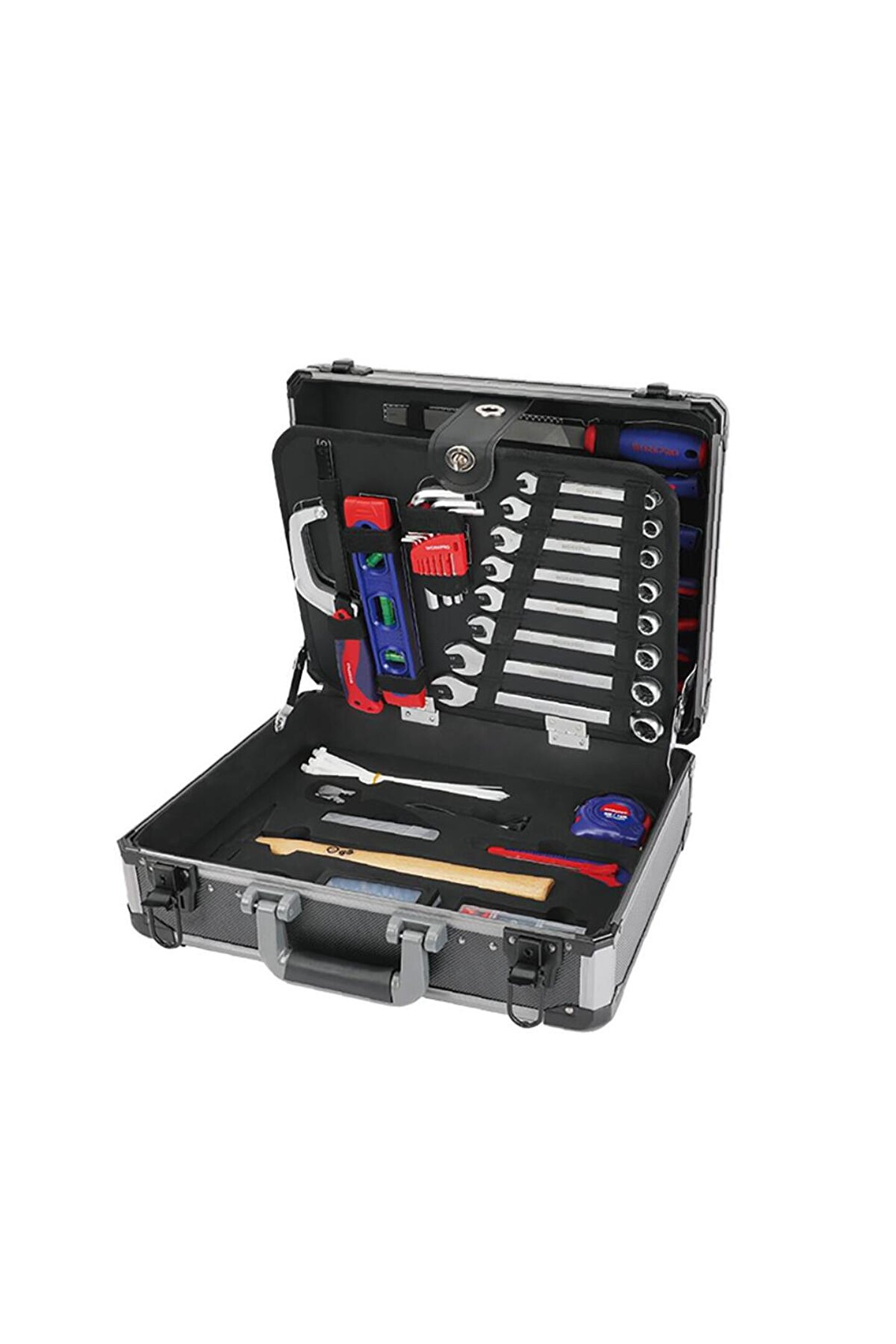 • WORKPRO WP209100 297 Parça CR-V Profesyonel El Aleti Tamir Seti Tamir Bakım Çantası • Mobilya montajında, genel tamirat ve tadilat işleri ile mekanik veya elektrikli aletlerin bakım ve onarımında profesyonel olarak kullanılabilmesi için paslanmaya ve aşınmaya dayanıklı CR-V kaplamaya sahiptir.; • Hassas Tornavida, Kargaburnu, Ayarlı Anahtar, Çekiç, Metre, Allen Anahtar Takımı, Lokma Uçları, Kombine anahtar takımı, Su terazisi, Demir Testere, Bits Vidalama Uçları, Maket Bıçağı, Kablo Bağı, Eğe, Fort pense, Kablo Sıyırma/Sıkma Pensesi ve bu aletlerin yerleştirilip taşınacağı Alüminyum takım çantasından oluşan genel maksatlı profesyonel tamir, bakım ve montaj setidir.; • Cr-V alaşım, pas ve korozyon gibi dış etkenlerden koruyarak uzun ömürlü yapı kazandırır.; • Toplam 22 Parçalı 3/8” ve ¼” Cr-V Lokma seti ile profesyonel kullanım imkânı.; • Alüminyum kilitlenebilir profesyonel taşıma çantası alet ve aksesuarları temiz, düzenli ve güvenli bir şekilde saklamanızı/ taşımanızı sağlar.; • İÇERİK: • 1 Adet 200mm Kargaburun • 1 Adet 160mm Yankeski • 1 Adet 180mm Pense • 1 Adet 250mm Fort Pense • 1 Adet 200mm Kablo Sıyırma/Sıkma Pensesi • 1 Adet 300gr.; Ahşap Saplı Çekiç • 6 Adet (SL6x150mm, SL5x150mm, PH1x100mm, PH2x150mm, SL1,5x50mm, PH0x50mm Tornavida Takımı) • 1 Adet 150mm Kontrol Kalemi • 1 Adet Bits Uç Tutucu Tornavida • 8 Adet (8,10,11,12,13,14,17,19mm Kombine Anahtar Seti) • 1 Adet 3/8” Cırcır Lokma Kolu • 8 Adet (4, 4.5, 5, 5.5, 6, 7, 8, 9mm ¼” Lokma Seti) • 9 Adet (10, 11, 12, 13, 14, 15, 17, 18, 19mm 3/8” Lokma Seti) • 1 Adet 21mm 3/8” Lokma • 1 Adet 3/8” ü ¼” Dönüştürücü Lokma Adaptör • 1 Adet ¼” 110mm T Kol • 1 Adet 3/8” 150mm Lokma Uzatma Şaftı • 1 Adet ¼” Bits Uç Tutucu Lokma • 9 Adet (1.5, 2, 2.5, 3, 4, 5, 6, 8, 10mm Cr-V Metrik Allen Anahtar Takımı • 30 Adet ( SL3, SL4, 2xSL5, 4xSL6, 2xSL7, PH0, 2xPH1, 3xPH2, PH3, PZ0, 2xPZ1, 3xPZ2, 2xPZ3, T10, T15, T20, T25, T30 Bits Vidalama Uç Seti) • 1 Adet 60mm Bits Uzatma Ucu • 1 Adet 225mm Torpedo Su Terazisi • 1 Adet 250mm Demir Testere • 1 Adet 200mm Eğe • 1 Adet 200mm Kurbağacık Anahtar • 1 Adet Şerit Metre (5m) • 1 Adet Rötuş Maket Bıçağı • 1 Adet 18mm Maket Bıçağı / 3x Maket Bıçağı Yedeği • 1 Adet Elektrik İzole Bantı • 60 Adet 3.6x200mm Kablo Bağı • 40 Adet 2.5x120mm Kablo Bağı • 1 Adet (100 Parça Çivi, Vida, Dübel, Açık Piton, Kanca Seti) • 1 Adet Profesyonel Alüminyum Alet Takım Çantası