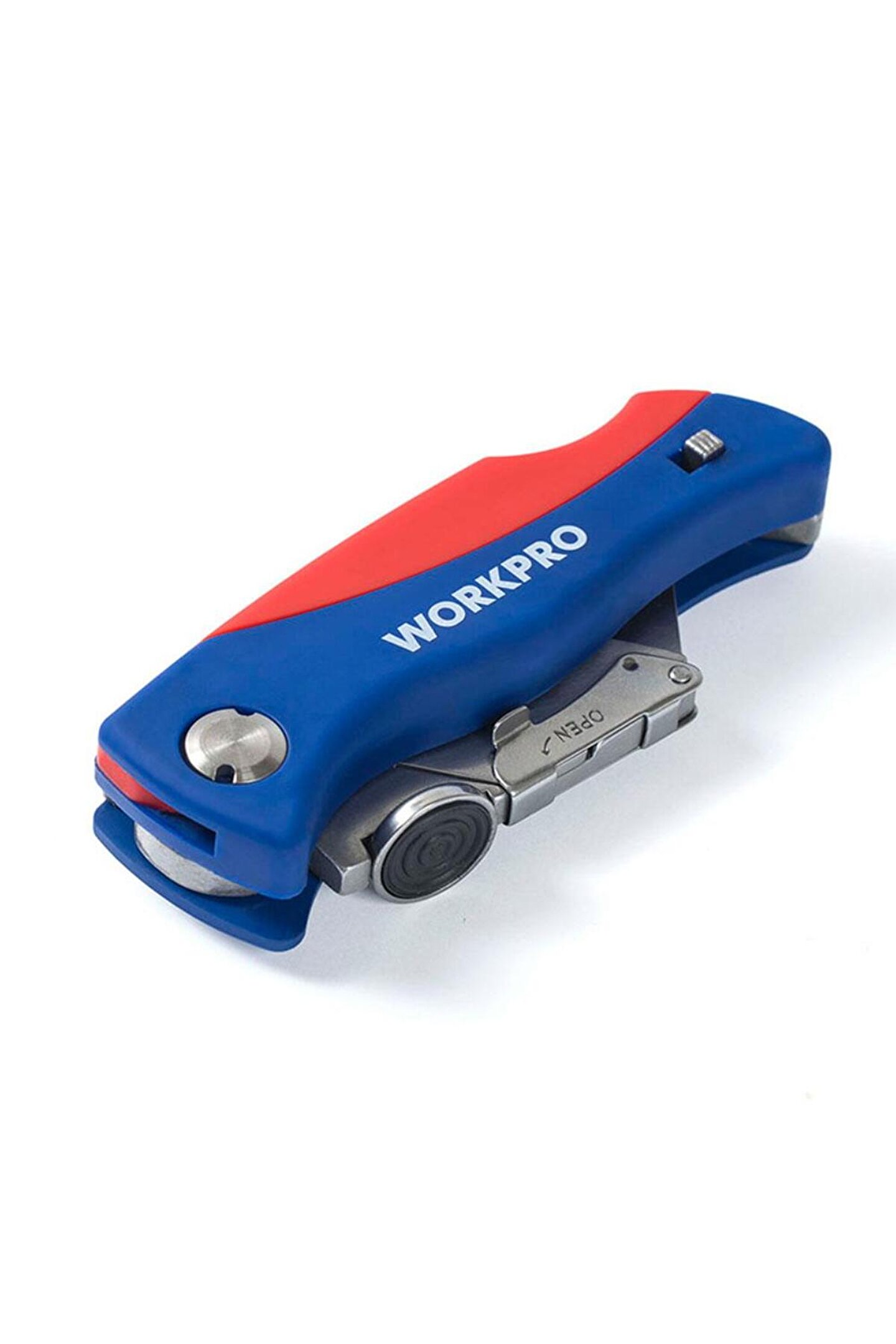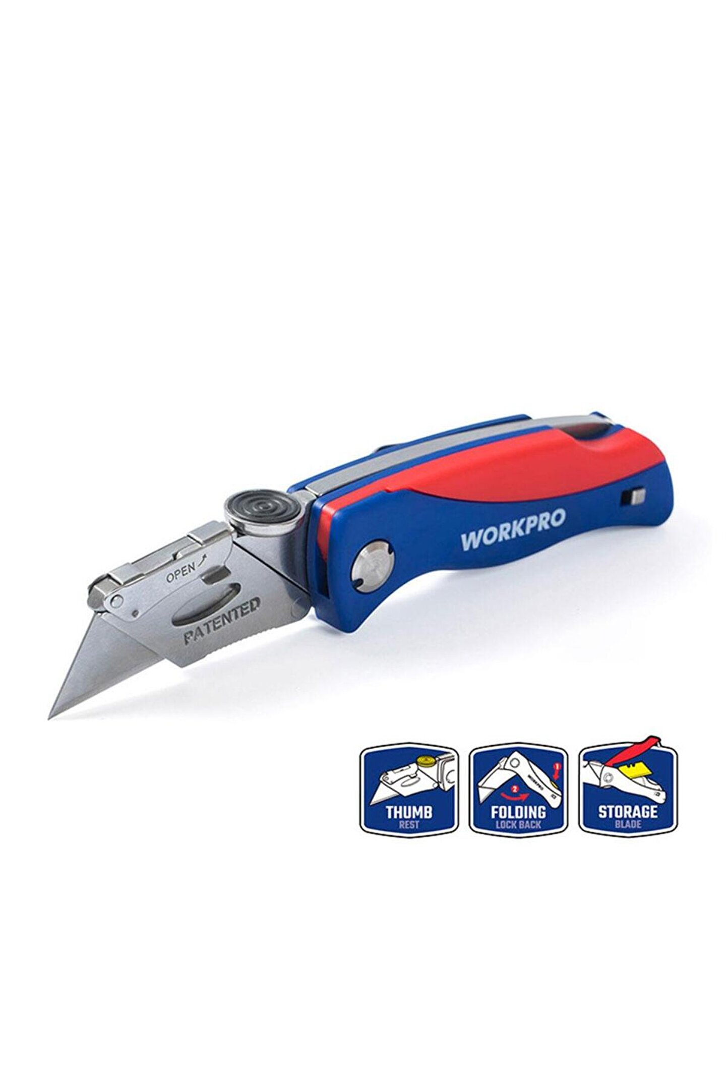 • WORKPRO WP211006 Ağır Hizmet Paslanmaz Çelik Gövde Katlanır Rötuş Maket Bıçağı + 6 Adet Yedek Bıçak • Ağır hizmet tipi son derece dayanıklı ve paslanmaz çelik gövde yapısı sayesinde korozyondan, paslanmadan ve darbelerden korur.; • Yüksek mukavemetli trapezoid maket bıçağı sayesinde halı, Vinil, paspas, kâğıt, deri, kalın ip, mukavva, alçı panel levhalar, kontrplak gibi daha sert ve güçlü kesim gerektiren işler için ideal bıçak yapısı.; • Kilitlenebilir tutma sapı içerisinde muhafaza edilebilen 5 adet dahili yedek bıçak sayesinde hızlı erişim imkânı.; • Son derece sağlam ve yüksek keskinliğe sahip SK5 güçlü karbon çelikten üretilmiş bıçaklar sayesinde rakiplerine oranlar beş kat daha fazla keskinlik sağlar.; • Kolay kesim yapmanızı sağlayan baş parmak destek butonu sayesinde yorulmadan uzun süre kullanım konforu sağlar.; • Kemer askı kancası sayesinde kolay taşımanızı sağlar.; • Patentli hızlı bıçak değiştirme sistemi sayesinde hızlı, kolay ve güvenli bıçak değiştirmenizi sağlar.; • UNIVERSAL RÖTUŞ MAKET BIÇAKLARI İLE UYUMLUDUR.; • WORKPRO, Amerika Birleşik Devletleri menşeli profesyonel bir El Aleti markası olup 1992 yılında kurulmuştur.; • WORKPRO, Dünyanın en büyük El Aleti üreticisidir ve Mekanik El Aletleri alanında dünya çapında 21 üretim üssüne sahiptir.; • WORKPRO, Dünya genelinde 5 AR-GE üssü ve inovasyon teknoloji merkezleri sayesinde, her yıl 400'den fazla yeni ürün geliştirmektedir.; Sektöründe 700'den fazla uluslararası patentin de sahibidir.; • WORKPRO, Sadece profesyonel değil, aynı zamanda Rekabetçi Fiyat, Yüksek Kalite ve Geniş Ürün Çeşidiyle Dünya çapında 100’den fazla ülkede hizmet vermektedir.