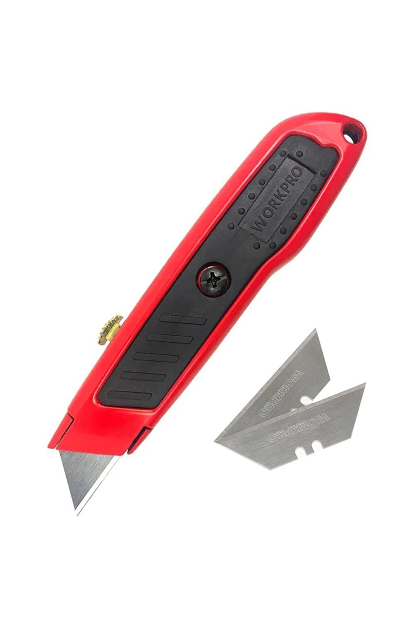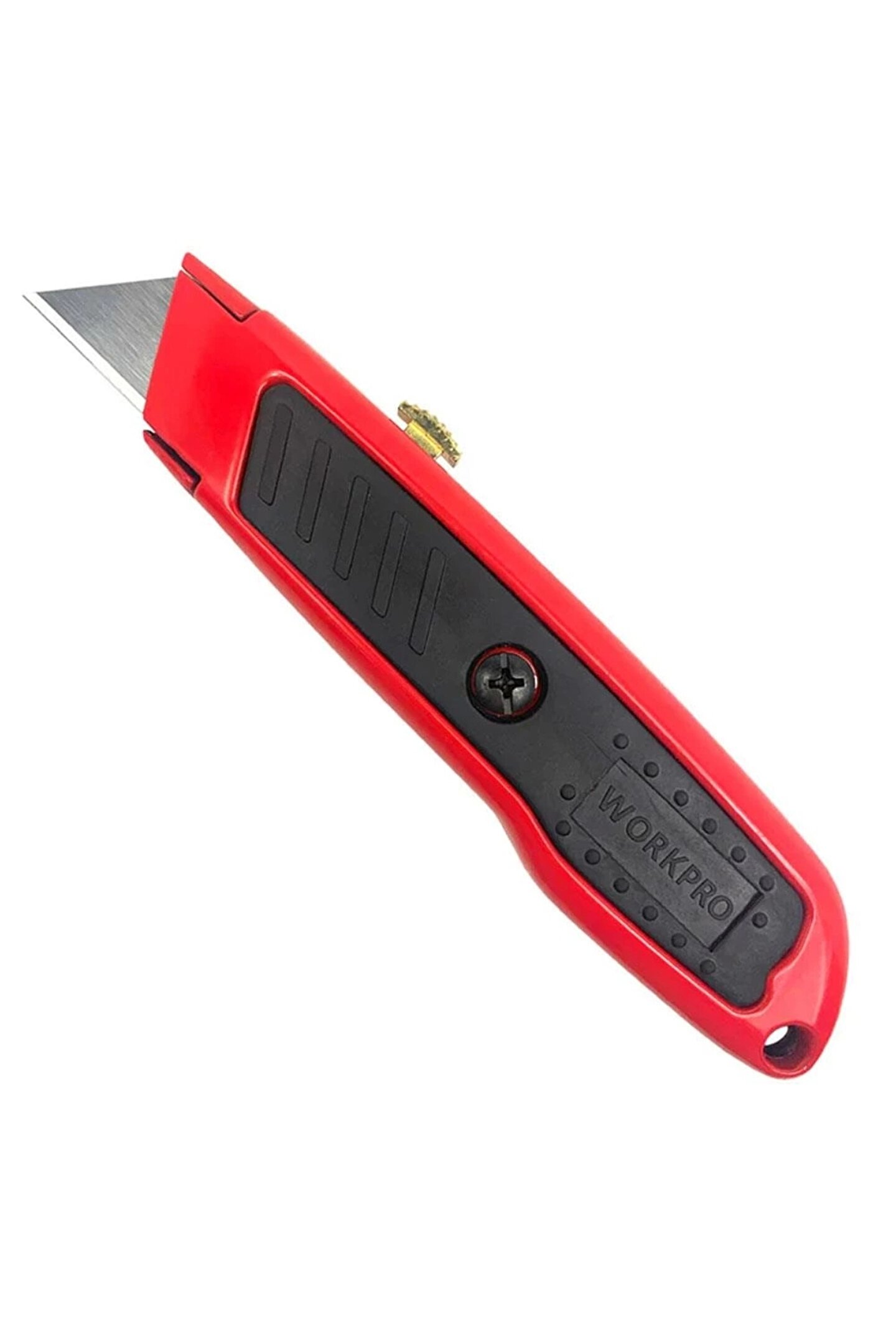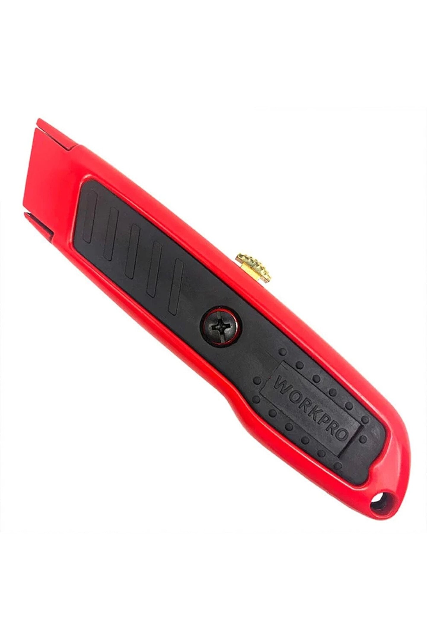 • WORKPRO WP213005 Alüminyum Gövde Geri Çekilebilir Rötuş Maket Bıçağı + 3 Adet Yedek Bıçak • Son derece dayanıklı ve paslanmaz Alüminyum gövde yapısı sayesinde korozyondan, paslanmadan ve darbelerden korur.; • Yüksek mukavemetli trapezoid maket bıçağı sayesinde halı, Vinil, paspas, kâğıt, deri, kalın ip, mukavva, alçı panel levhalar, kontrplak, koli gibi daha sert ve güçlü kesim gerektiren işler için ideal bıçak yapısı.; • Kilitlenebilir kauçuk kaplama tutma sapı içerisinde muhafaza edilebilen 3 adet dahili yedek bıçak sayesinde hızlı aksesuar erişim imkânı.; • Üç konumlu geri çekilebilir bıçak mekanizması sayesinde bıçağın tüm kesici alanı eşit miktarda ve daha uzun süre kullanmanıza imkân sağlar.; • Son derece sağlam ve yüksek keskinliğe sahip SK5 güçlü karbon çelikten üretilmiş bıçaklar sayesinde rakiplerine oranlar beş kat daha fazla keskinlik sağlar.; • Kolay kesim yapmanızı ve geri çekilebilir mekanizmalı baş parmak destek butonu sayesinde yorulmadan uzun süre kullanım konforu sağlar.; • Kauçuk destek pedleri sayesinde avuç içini terletmez uzun süre kullanım sağlar.; • Patentli hızlı bıçak değiştirme sistemi sayesinde hızlı, kolay ve güvenli bıçak değiştirmenizi sağlar.; • UNIVERSAL RÖTUŞ MAKET BIÇAKLARI İLE UYUMLUDUR.; • WORKPRO, Amerika Birleşik Devletleri menşeli profesyonel bir El Aleti markası olup 1992 yılında kurulmuştur.; • WORKPRO, Dünyanın en büyük El Aleti üreticisidir ve Mekanik El Aletleri alanında dünya çapında 21 üretim üssüne sahiptir.; • WORKPRO, Dünya genelinde 5 AR-GE üssü ve inovasyon teknoloji merkezleri sayesinde, her yıl 400'den fazla yeni ürün geliştirmektedir.; Sektöründe 700'den fazla uluslararası patentin de sahibidir.; • WORKPRO, Sadece profesyonel değil, aynı zamanda Rekabetçi Fiyat, Yüksek Kalite ve Geniş Ürün Çeşidiyle Dünya çapında 100’den fazla ülkede hizmet vermektedir.