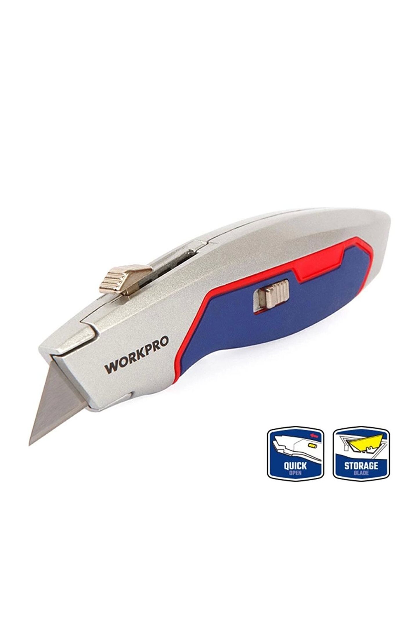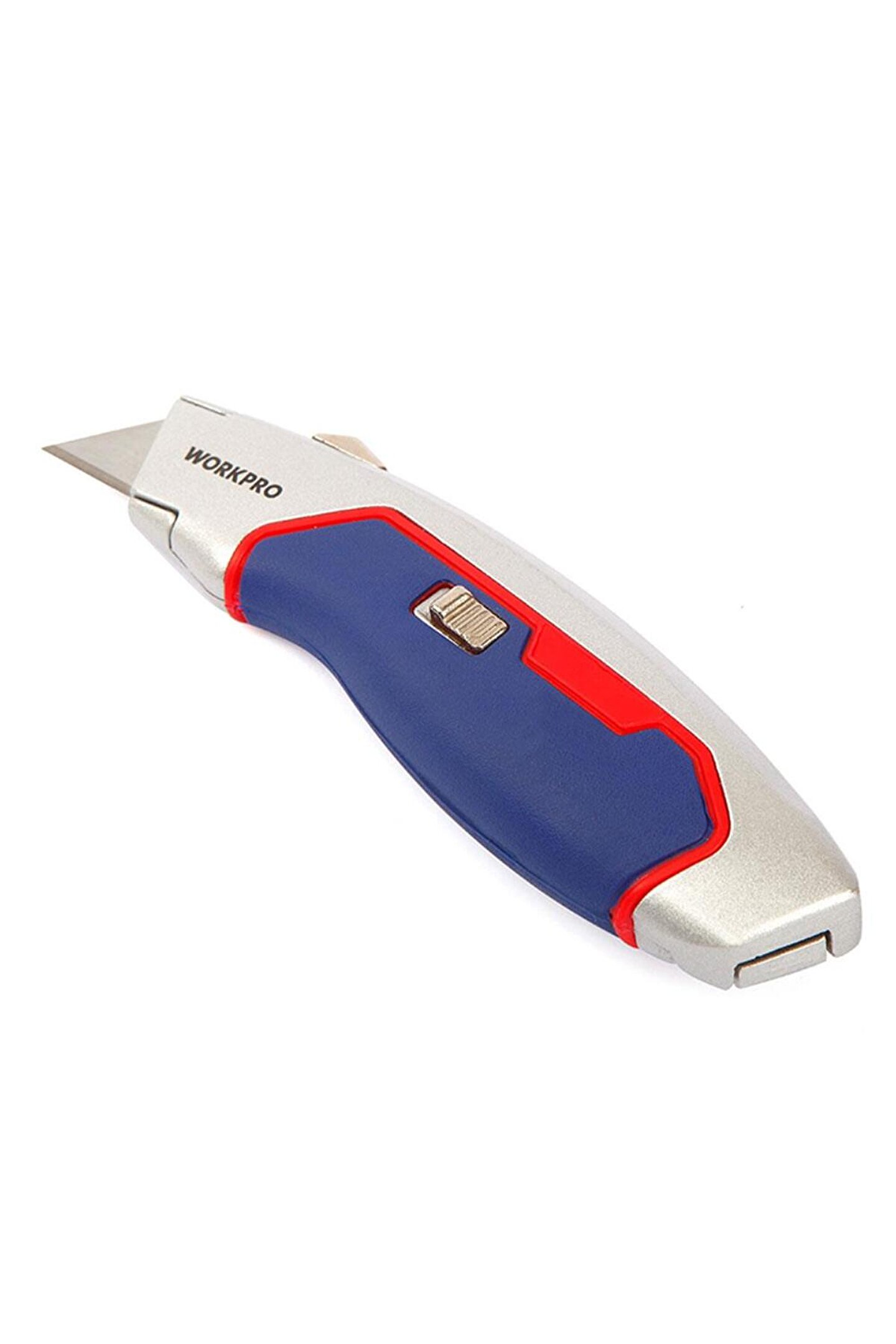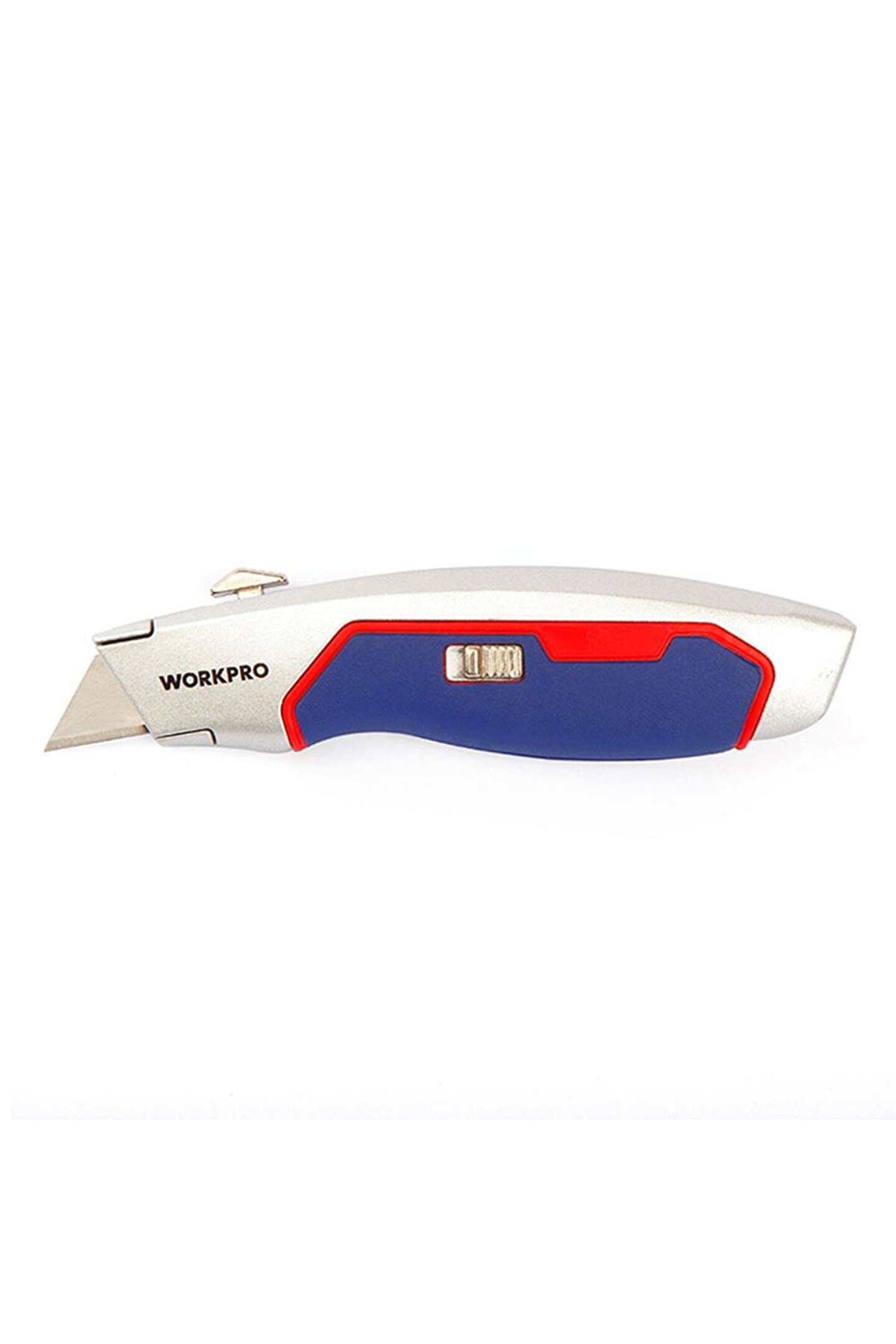 • WORKPRO WP213011 Ağır Hizmet Alüminyum Gövde Geri Çekilebilir Rötuş Maket Bıçağı + 3 Adet Yedek Bıçak • Ağır hizmet tipi son derece dayanıklı ve paslanmaz Alüminyum döküm gövde yapısı sayesinde korozyondan, paslanmadan ve darbelere karşı üstün koruma sağlar.; • Yüksek mukavemetli trapezoid maket bıçağı sayesinde halı, Vinil, paspas, kâğıt, deri, kalın ip, mukavva, alçı panel levhalar, kontrplak, koli gibi daha sert ve güçlü kesim gerektiren işler için ideal bıçak yapısı.; • Kilitlenebilir kauçuk kaplama tutma sapı içerisinde muhafaza edilebilen 3 adet dahili yedek bıçak sayesinde hızlı aksesuar erişim imkânı.; • Hızlı bıçak değişimi için kasa ayırıcı mandal sayesinde hızlı aksesuar değişimi.; • Üç konumlu geri çekilebilir bıçak mekanizması sayesinde bıçağın tüm kesici alanı eşit miktarda ve daha uzun süre kullanmanıza imkân sağlar.; • Son derece sağlam ve yüksek keskinliğe sahip SK5 güçlü karbon çelikten üretilmiş bıçaklar sayesinde rakiplerine oranlar beş kat daha fazla keskinlik sağlar.; • Kolay kesim yapmanızı ve geri çekilebilir mekanizmalı baş parmak destek butonu sayesinde yorulmadan uzun süre kullanım konforu sağlar.; • Kauçuk destek pedleri sayesinde avuç içini terletmez uzun süre kullanım sağlar.; • Patentli hızlı bıçak değiştirme sistemi sayesinde hızlı, kolay ve güvenli bıçak değiştirmenizi sağlar.; • UNIVERSAL RÖTUŞ MAKET BIÇAKLARI İLE UYUMLUDUR.; • WORKPRO, Amerika Birleşik Devletleri menşeli profesyonel bir El Aleti markası olup 1992 yılında kurulmuştur.; • WORKPRO, Dünyanın en büyük El Aleti üreticisidir ve Mekanik El Aletleri alanında dünya çapında 21 üretim üssüne sahiptir.; • WORKPRO, Dünya genelinde 5 AR-GE üssü ve inovasyon teknoloji merkezleri sayesinde, her yıl 400'den fazla yeni ürün geliştirmektedir.; Sektöründe 700'den fazla uluslararası patentin de sahibidir.; • WORKPRO, Sadece profesyonel değil, aynı zamanda Rekabetçi Fiyat, Yüksek Kalite ve Geniş Ürün Çeşidiyle Dünya çapında 100’den fazla ülkede hizmet vermektedir.