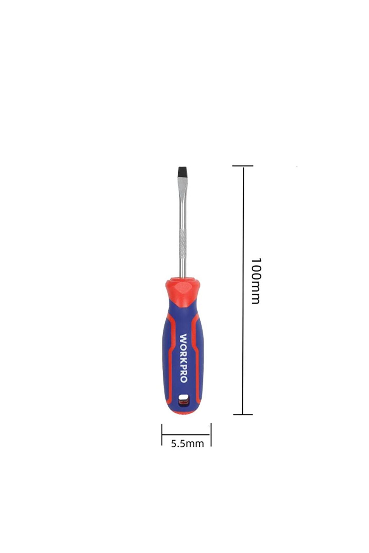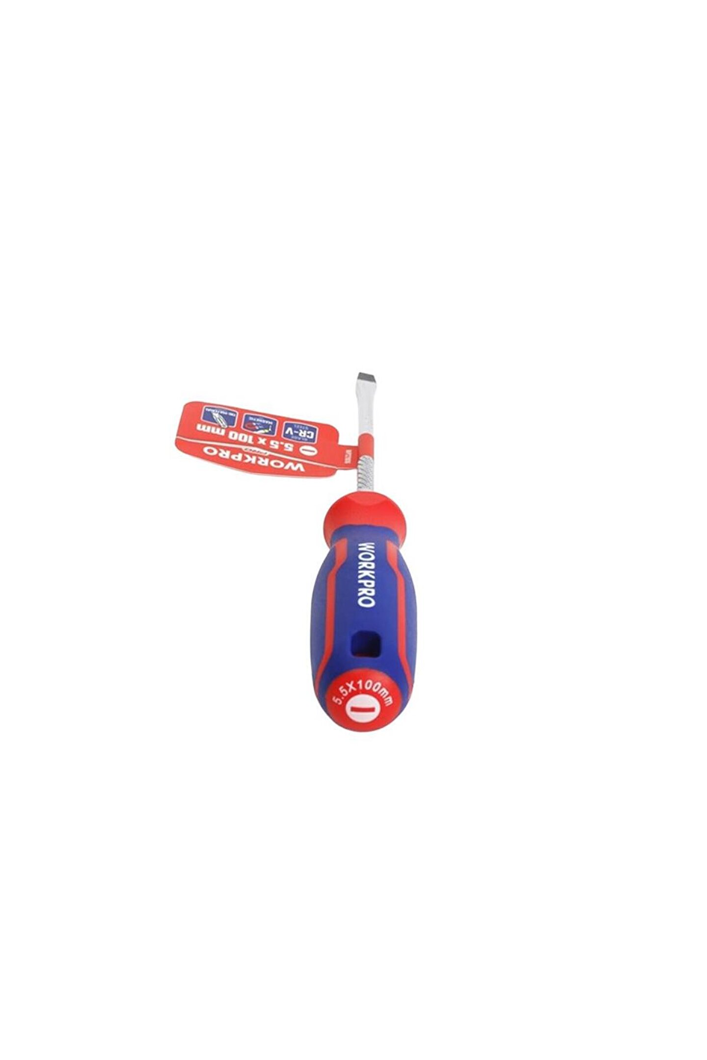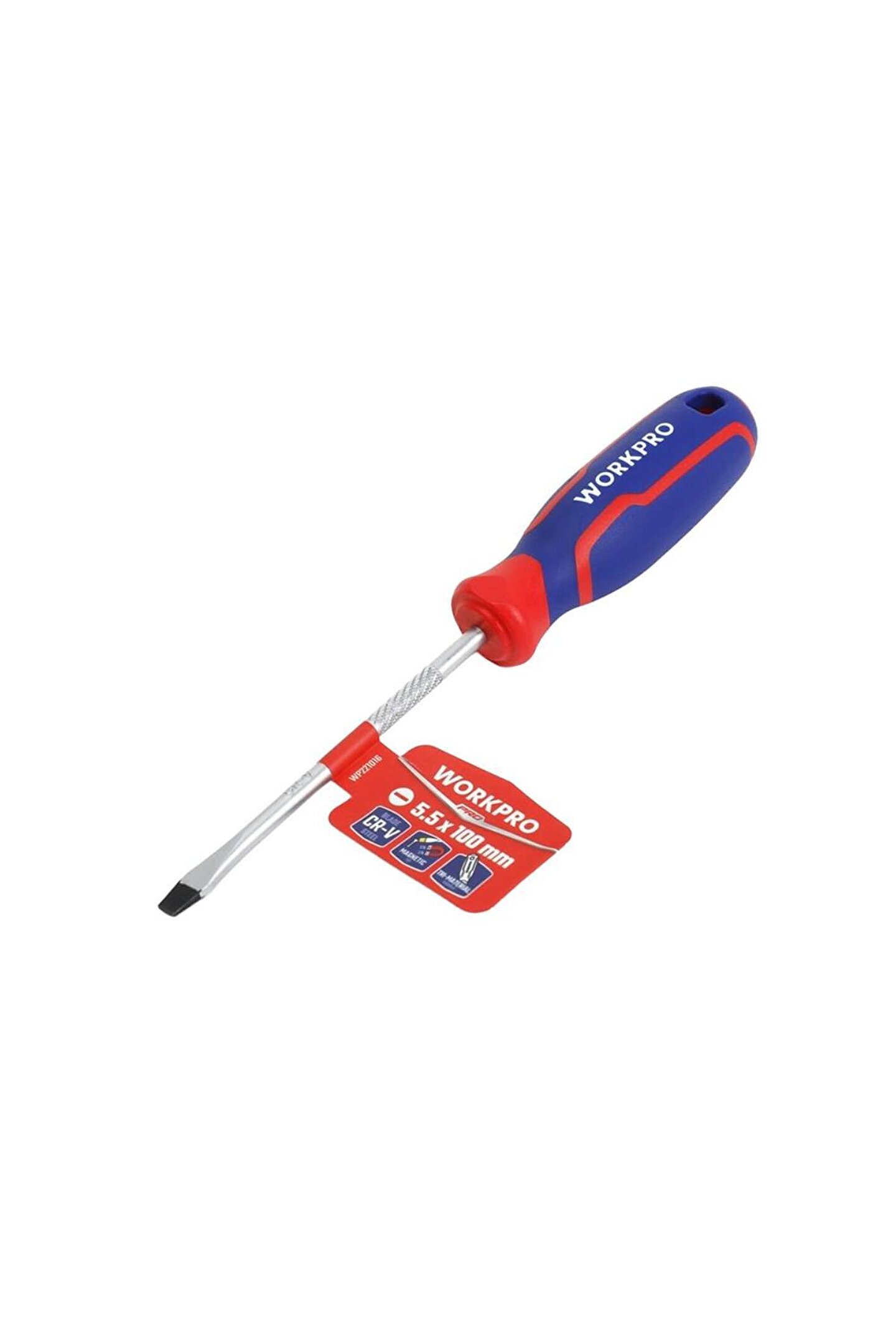 • WORKPRO WP221016 5.5x100mm CR-V Manyetik Profesyonel Düz Tornavida • Mekanik veya elektrikli aletlerin bakım ve onarımında, profesyonel olarak kullanılabilmesi için paslanmaya ve aşınmaya dayanıklı Manyetik Krom Vanadyum vidalama uca sahiptir.; • Geliştirilmiş dayanıklılık, paslanma direnci ve korozyon önleyici özellik için ısıl işlem görmüş CR-V çelikten yapılmış SL5.5 x 100mm düz tornavida.; • Geliştirilmiş güçlü, siyah manyetik uca sahip tornavida, yüksek dayanıklılık ve rahat kavrama sağlar.; • Güçlü manyetik ucu, baş aşağı durumlarda bile vidanızı tutar.; Daha iyi kontrol sağlar.; • Rahat kullanım için kaymayan, kolay kavranan tutma sapı sayesinde konforlu kullanım imkânı.; • Üst düzey kauçuk kaplama sap tasarımı kaymayı önler, el yorgunluğunu azaltır.; • Tırtıklı metal yüzey sayesinde vidalama yaparken elinizin kaymasını engeller, pense veya benzeri ikinci bir alet ile kayma yapmadan sıkıca kavranmasını sağlar.; • Yüksek kaliteli CR-V çelik kullanılmıştır, hassas ve ısıl işlemden sonra vidalama ucu daha sert ve dayanıklı hale getirilmiştir.; • WORKPRO, Amerika Birleşik Devletleri menşeli profesyonel bir El Aleti markası olup 1992 yılında kurulmuştur.; • WORKPRO, Dünyanın en büyük El Aleti üreticisidir ve Mekanik El Aletleri alanında dünya çapında 21 üretim üssüne sahiptir.; • WORKPRO, Dünya genelinde 5 AR-GE üssü ve inovasyon teknoloji merkezleri sayesinde, her yıl 400'den fazla yeni ürün geliştirmektedir.; Sektöründe 700'den fazla uluslararası patentin de sahibidir.; • WORKPRO, Sadece profesyonel değil, aynı zamanda Rekabetçi Fiyat, Yüksek Kalite ve Geniş Ürün Çeşidiyle Dünya çapında 100’den fazla ülkede hizmet vermektedir.