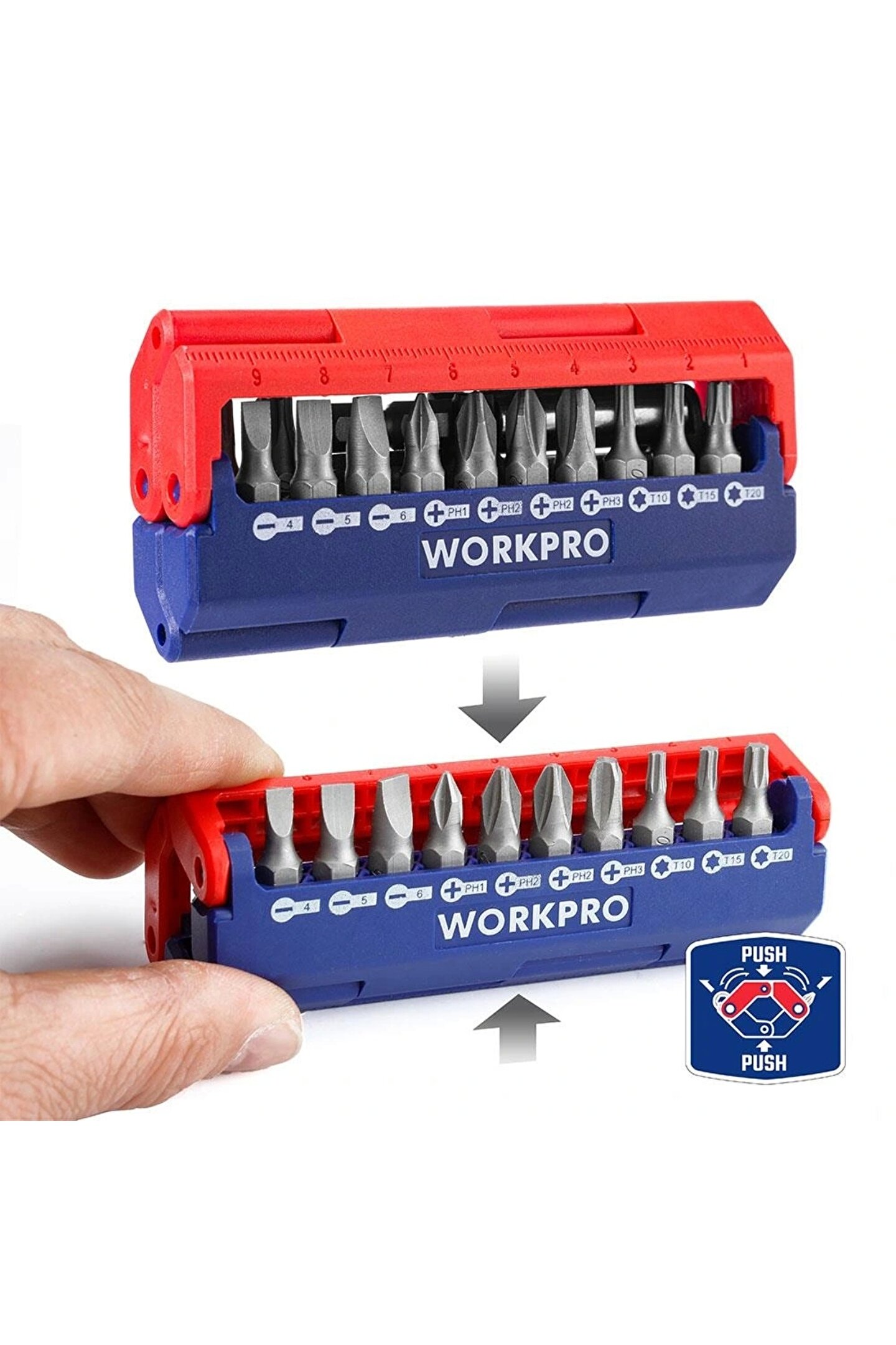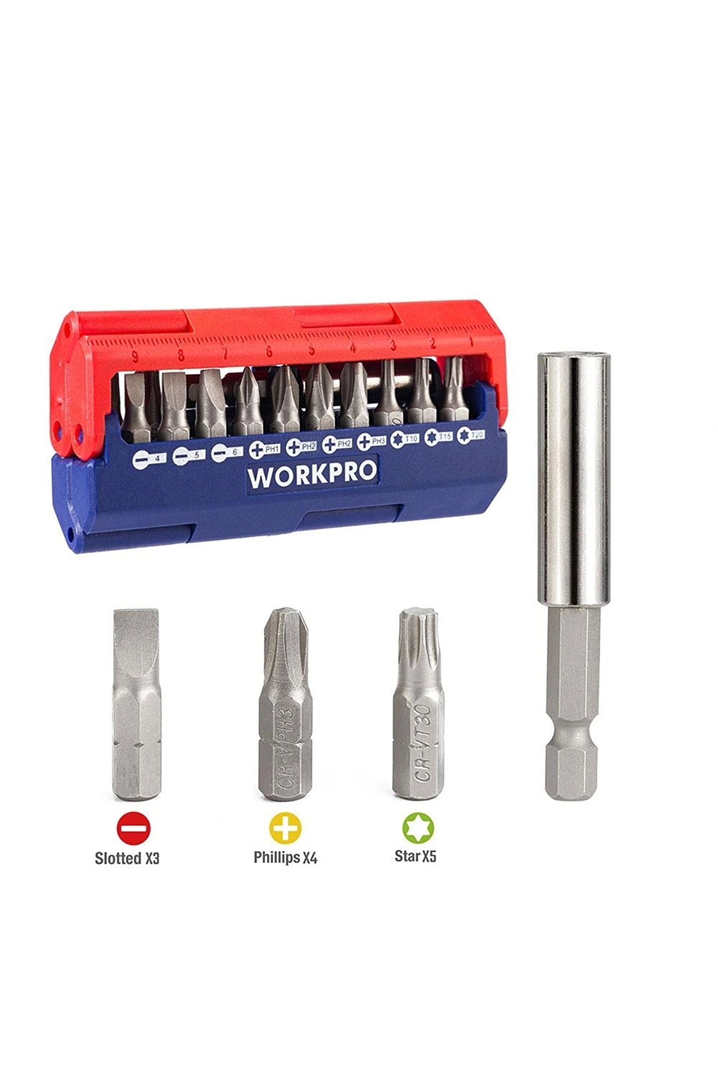 • WORKPRO WP221062 13 Parça Manyetik CR-V Vidalama Bits Uç Seti • Mobilya montajı, mekanik veya her türlü elektrikli, elektronik aletlerinin bakım ve onarımları için paslanmaya dayanıklı Krom Vanadyum Profesyonel Bits vidalama uçlarından oluşmaktadır.; • Vidalama uçları yüksek tork mukavemetli modifiye edilmiş Cr-V çelikten üretilmiştir.; • Cr-V alaşım, pas ve korozyon gibi dış etkenlerden koruyarak uzun ömürlü kullanım sağlar.; • Vidalama yaparken sürtünmeyi en aza indirerek vidaların daha iyi kavranmasını sağlar, bu sayede vida yuvalarına zarar vermez.; • Manyetik 60mm uzatma aparatı sayesinde bits uçları bırakmaz, kullanım kolaylığı sağlar.; • Manyetik taşıma kutusu sayesinde tüm metal yüzeylere tutunur.; • Geliştirilmiş dayanıklılık, paslanma direnci ve korozyon önleyici özellik için ısıl işlem görmüş CR-V çelikten yapılmış 13 Parça bits tornavida seti.; • Yüksek kaliteli CR-V çelik kullanılmıştır, hassas ve ısıl işlemden sonra vidalama uçları daha sert ve dayanıklı hale getirilmiştir.; • İÇERİK: SL 4mm, 5mm, 6mm Düz Bits Vidalama Uçları • PH1, 2xPH2, PH3, Yıldız Bits Vidalama Uçları • T10 / T15 / T20 / T25 / T30 Torx Bits Vidalama Uçları • 60mm Manyetik Uzatma Şaftı • Manyetik Uç Taşıma Kutusu • WORKPRO, Amerika Birleşik Devletleri menşeli profesyonel bir El Aleti markası olup 1992 yılında kurulmuştur.; • WORKPRO, Dünyanın en büyük El Aleti üreticisidir ve Mekanik El Aletleri alanında dünya çapında 21 üretim üssüne sahiptir.; • WORKPRO, Dünya genelinde 5 AR-GE üssü ve inovasyon teknoloji merkezleri sayesinde, her yıl 400'den fazla yeni ürün geliştirmektedir.; Sektöründe 700'den fazla uluslararası patentin de sahibidir.; • WORKPRO, Sadece profesyonel değil, aynı zamanda Rekabetçi Fiyat, Yüksek Kalite ve Geniş Ürün Çeşidiyle Dünya çapında 100’den fazla ülkede hizmet vermektedir.