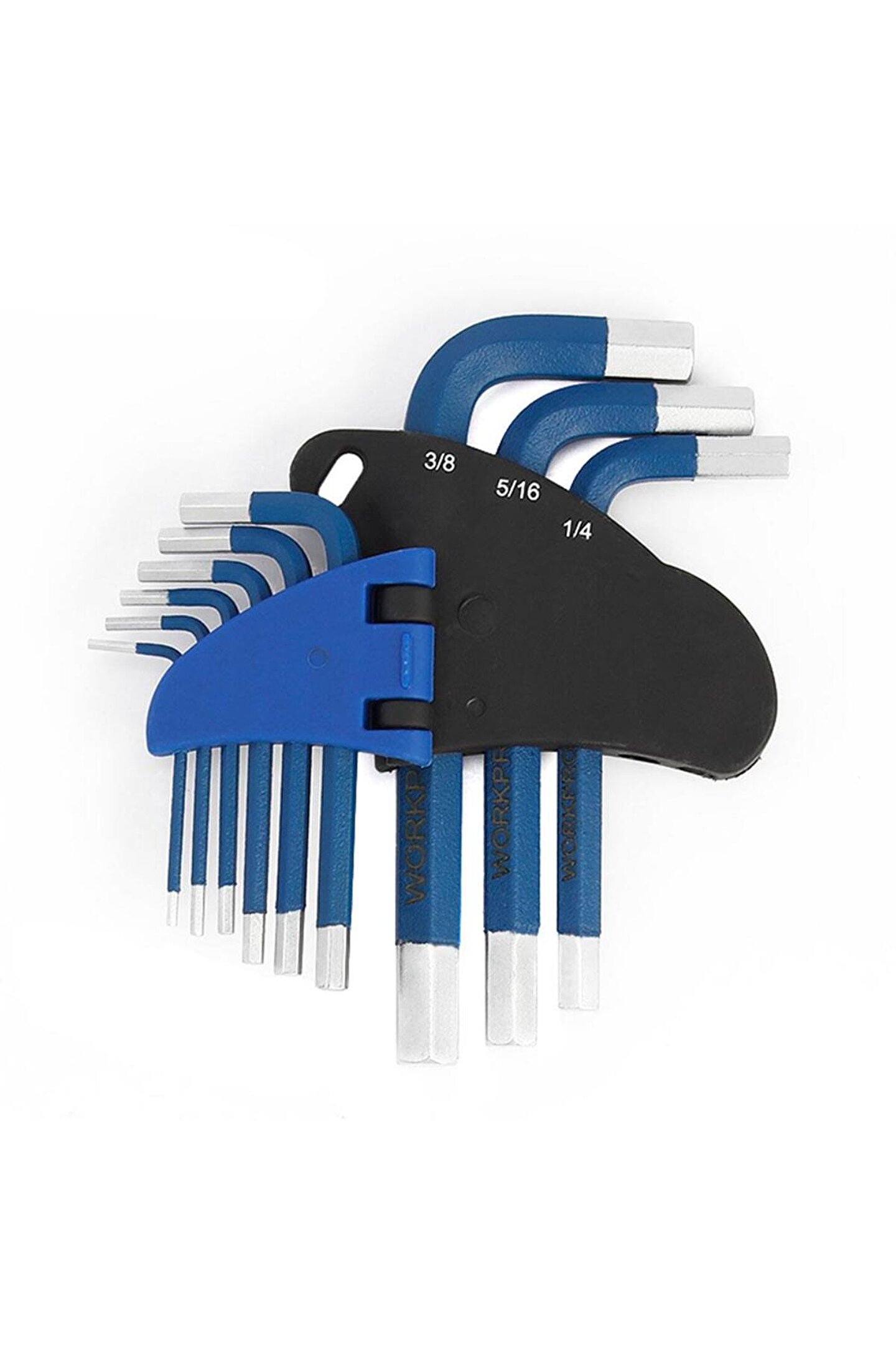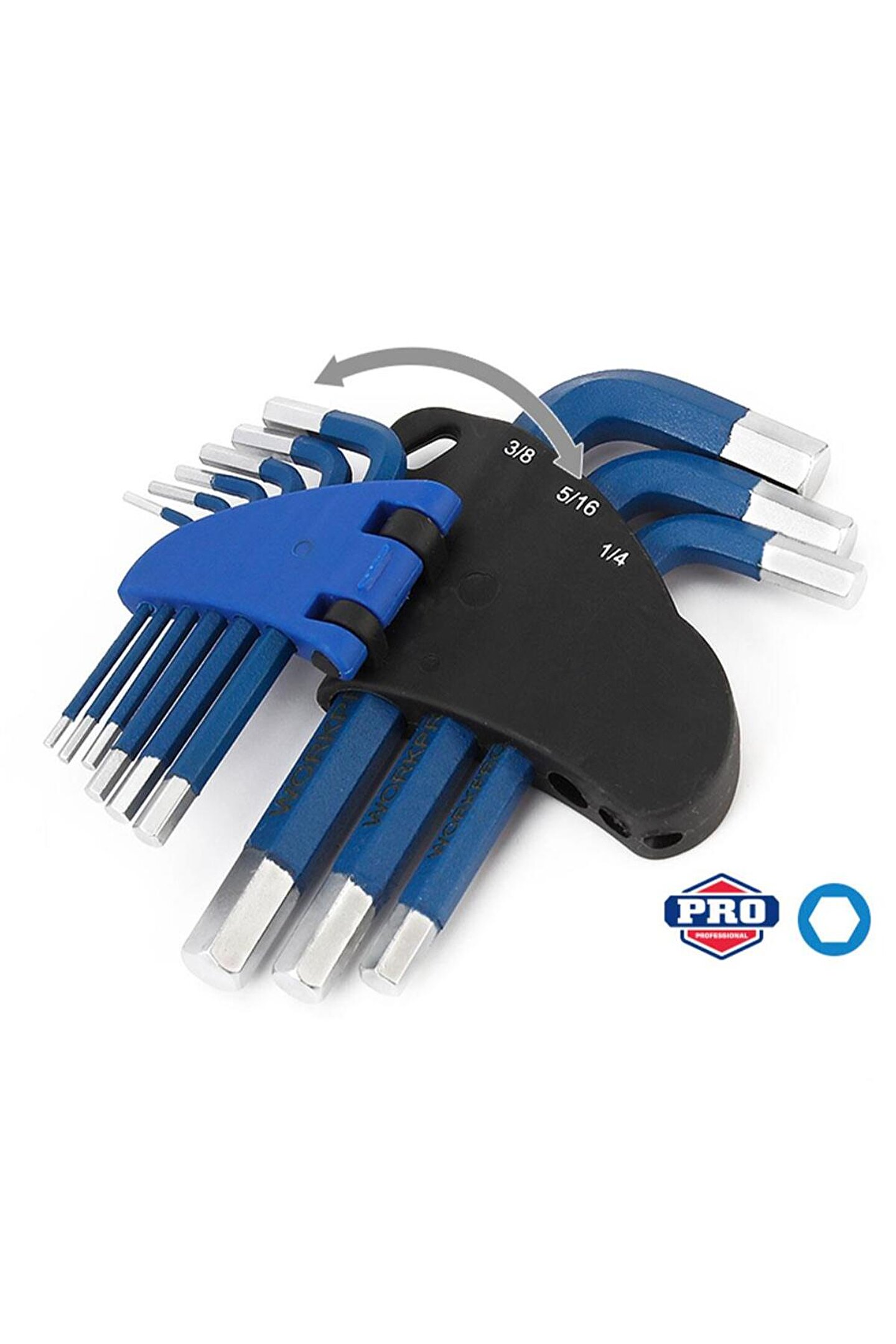 • WORKPRO WP222014 9 Parça Kısa Boy CR-V Metrik Profesyonel Allen Anahtar Takımı • Genel tamirat ve tadilat işleri ile her türlü mekanik veya elektrikli aletlerin bakım ve onarımında profesyonel olarak kullanılabilmesi için paslanmaya ve aşınmaya dayanıklı Krom kaplamaya sahiptir.; • Geliştirilmiş dayanıklılık, paslanma direnci ve korozyon önleyici özellik için ısıl işlem görmüş CR-V çelikten yapılmış 9 Parçalı Allen anahtar setidir.; • Yüksek kaliteli CR-V çelikten üretilmiştir, hassas ve ısıl işlemden sonra vidalama uçları daha sert ve dayanıklı hale getirilmiştir.; • Kısa boy Çelik CR-V şaft sayesinde kolay kullanım imkânı.; • Kaymaz toz boya kaplama sayesinde rahat tutuş sağlar.; Uzun ömürlü paslanmaz yapı kazandırır.; • Duvar askı aparatlı anahtarları kaybolmadan düzenli olarak muhafaza etmenizi ve kullanmanızı sağlar.; • İÇERİK: • 1.5, 2, 2.5, 3, 4, 5, 6, 8, 10mm Metrik Allen Anahtar Seti • WORKPRO, Amerika Birleşik Devletleri menşeli profesyonel bir El Aleti markası olup 1992 yılında kurulmuştur.; • WORKPRO, Dünyanın en büyük El Aleti üreticisidir ve Mekanik El Aletleri alanında dünya çapında 21 üretim üssüne sahiptir.; • WORKPRO, Dünya genelinde 5 AR-GE üssü ve inovasyon teknoloji merkezleri sayesinde, her yıl 400'den fazla yeni ürün geliştirmektedir.; Sektöründe 700'den fazla uluslararası patentin de sahibidir.; • WORKPRO, Sadece profesyonel değil, aynı zamanda Rekabetçi Fiyat, Yüksek Kalite ve Geniş Ürün Çeşidiyle Dünya çapında 100’den fazla ülkede hizmet vermektedir.
