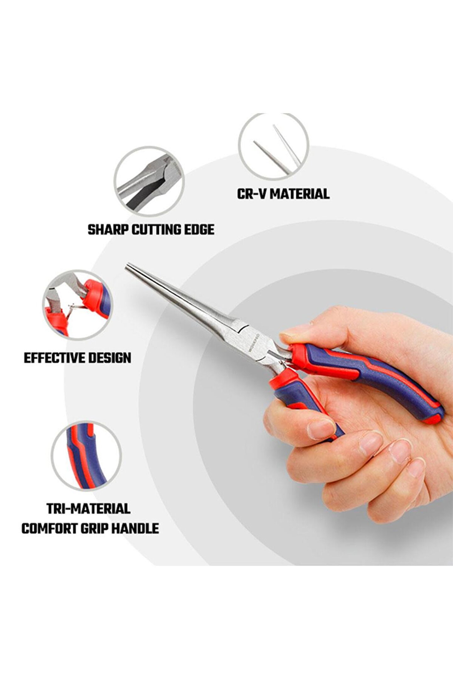 • WORKPRO WP231099 150MM CR-V Elektronikçi Profesyonel Mini Uzun Burun Pense • Mekanik, Elektrikli veya her türlü Elektronik aletlerinin bakım ve onarımlarında profesyonel ve uzun ömürlü kullanım için aşınmaya ve paslanmaya dayanıklı krom Vanadium dövme karbon çelik malzemeden üretilmiştir.; • Yüksek kaliteli dövme CR-V çelik kullanılmıştır, hassas ve ısıl işlemden sonra çene yapısı daha sert ve dayanıklı hale getirilmiştir.; • Çene yapısı yüksek baskı mukavemetli modifiye edilmiş dövme CR-V çelikten üretilmiştir.; • CR-V alaşım, pas ve korozyon gibi dış etkenlerden koruyarak uzun ömürlü yapı kazandırır.; • Üst düzey kauçuk kaplama sap tasarımı kaymayı önler, el yorgunluğunu azaltır.; • WORKPRO, Amerika Birleşik Devletleri menşeli profesyonel bir El Aleti markası olup 1992 yılında kurulmuştur.; • WORKPRO, Dünyanın en büyük El Aleti üreticisidir ve Mekanik El Aletleri alanında dünya çapında 21 üretim üssüne sahiptir.; • WORKPRO, Dünya genelinde 5 AR-GE üssü ve inovasyon teknoloji merkezleri sayesinde, her yıl 400'den fazla yeni ürün geliştirmektedir.; Sektöründe 700'den fazla uluslararası patentin de sahibidir.; • WORKPRO, Sadece profesyonel değil, aynı zamanda Rekabetçi Fiyat, Yüksek Kalite ve Geniş Ürün Çeşidiyle Dünya çapında 100’den fazla ülkede hizmet vermektedir.
