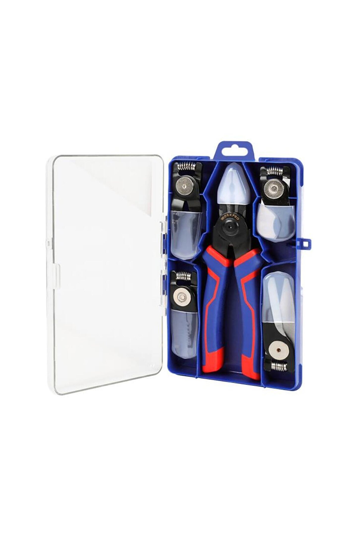 • WORKPRO WP231144 200MM 5 IN 1 Çok Fonksiyonlu Profesyonel Pense Seti • 200mm Kombine Pense, Kargaburnu, Sac Makası, Kablo Kesici, Kablo Sıyırma olmak üzere 5 parçadan oluşmaktadır.; • Sanayi, İnşaat, Otomotiv, Şantiye, Acil durumlar gibi mekanik veya her türlü elektrikli, elektronik aletlerin bakım ve onarımlarında profesyonel ve uzun ömürlü kullanım için aşınmaya ve paslanmaya dayanıklı dövme karbon çelik malzemeden üretilmiştir.; • Son derece hızlı ve kolay değiştirilebilir Tak-Çıkar başlıklar sayesinde tek pense ile 5 farklı alanda profesyonel kullanım sağlar.; • Yüksek kaliteli dövme karbon çelik kullanılmıştır, hassas ve ısıl işlemden sonra kesme ve kavrama dişleri daha sert ve dayanıklı hale getirilmiştir.; • Pense uçları ve kesici dişler yüksek baskı mukavemetli modifiye edilmiş dövme karbon çelikten üretilmiştir.; • %30 daha geniş Üst düzey kauçuk kaplama sap tasarımı kaymayı önler, el yorgunluğunu azaltır.; • Şeffaf kauçuk koruma başlıkları sayesinde alet ve kullanıcı güvenliği sağlar.; • Taşıma kutusu sayesinde alet ve aksesuarlar temiz ve düzenli kalır.; • İçerik: 200MM Pense, Kargaburnu, Sac Makası, Kablo Kesici, Kablo Sıyırma, Taşıma Kutusu