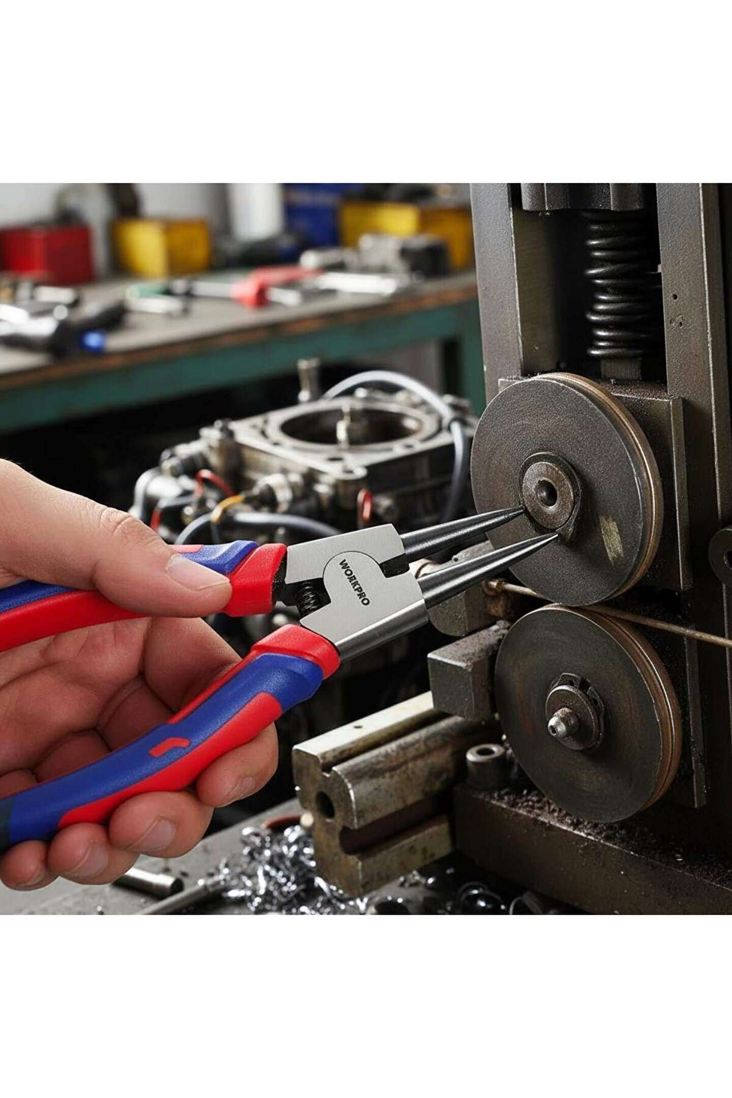 • WORKPRO WP231152 180MM Cr-V Düz Yaylı Profesyonel İç Segman Pensesi • Sanayi, Otomotiv, Şantiye, gibi mekanik aletlerin sabitlenmesinde kullanılan Segmanların sökülüp, takılmasında, bakım ve onarımlarında profesyonel ve uzun ömürlü kullanım için aşınmaya ve paslanmaya dayanıklı Cr-V dövme çelik malzemeden üretilmiştir.; • Yüksek kaliteli Cr-V dövme çelik kullanılmıştır, hassas ve ısıl işlemden sonra kesme ve segman kavrama dişleri daha sert ve dayanıklı hale getirilmiştir.; • Cr-V alaşım, pas ve korozyon gibi dış etkenlerden koruyarak uzun ömürlü yapı kazandırır.; • %30 daha geniş üst düzey kauçuk kaplama sap tasarımı kaymayı önler, el yorgunluğunu azaltır.