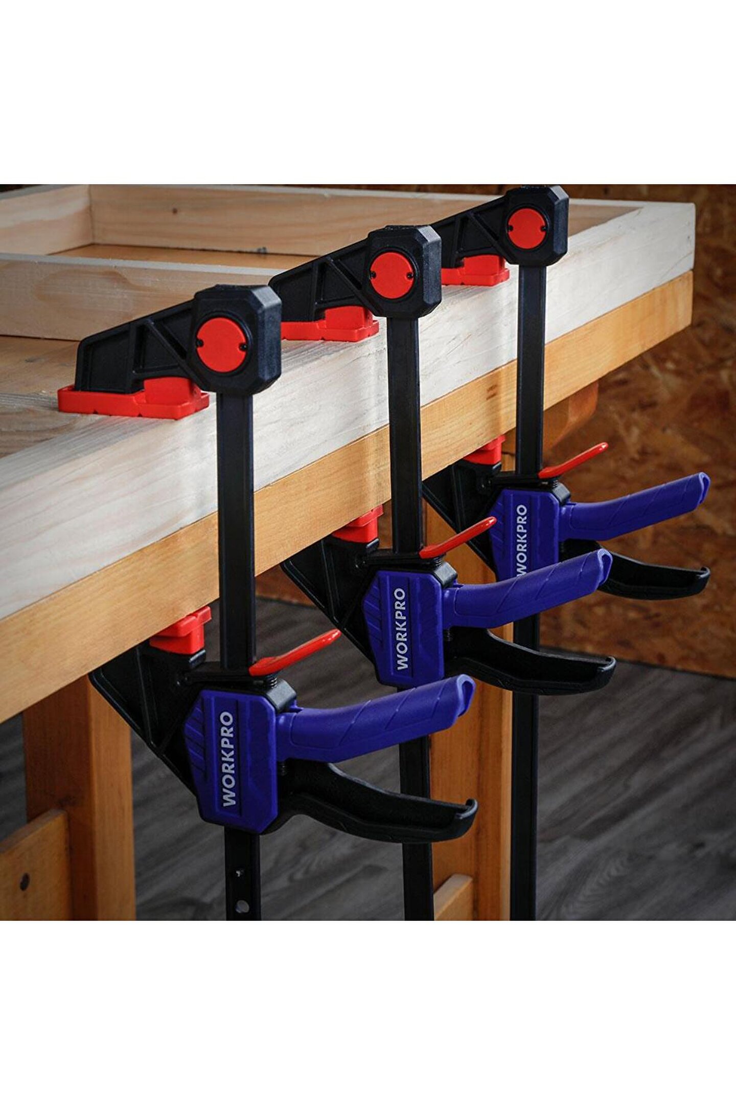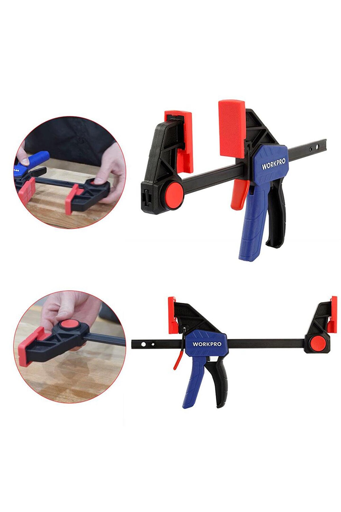 • WORKPRO WP232038 600mm Tetik Tipi İşkence • Maket yapımında, marangoz hanelerde, demir doğrama atölyelerinde metal, ahşap, plastik gibi her türlü farklı parçaların birleşim noktalarından yapıştırıcı tutkal veya kaynak ile sabitlenmesinde, geçici birleştirme işlemlerinde işkence vazifesi görebilmesi için tetik, mil/ray paslanmaya karşı çelikten, çeneler ise güçlü ve dayanıklı PVC malzemeden üretilmiştir.; • Ters çevrilebilir çene sayesinde, metal, ahşap, plastik her türlü yapışık parçanın/malzemenin ayrılmasında, dıştan/içten sıkıştırılmasında, iki malzemeyi birbirinden ayırmada büyük kolaylık sağlar.; • Aksesuarsız hızlı değiştirilebilir işkence çeneleri sayesinde içe doğru sıkıştırma yapılabilirken rakiplerine kıyasla dışa doğru sıkıştırma veya ayırma yapmanızı sağlar.; • Sıkıştırma çenelerine entegre PVC kaplama sayesinde malzeme yüzeyine zarar vermez, yüzeyi tam kavramasını sağlar, çizilmeleri engeller ve iz bırakmaz.; • Hızlı serbest açılıp, hızlı kapanmasını sağlayan tetik mili sayesinde hızlı bir şekilde sabitlenmesini sağlar.; • 68kg kadar baskı kuvvetine dayanıklı özel geliştirilmiş baskı kelepçeleri.; • 600mm uzunluk, 60mm derinlik • WORKPRO, Amerika Birleşik Devletleri menşeli profesyonel bir El Aleti markası olup 1992 yılında kurulmuştur.; • WORKPRO, Dünyanın en büyük El Aleti üreticisidir ve Mekanik El Aletleri alanında dünya çapında 21 üretim üssüne sahiptir.; • WORKPRO, Dünya genelinde 5 AR-GE üssü ve inovasyon teknoloji merkezleri sayesinde, her yıl 400'den fazla yeni ürün geliştirmektedir.; Sektöründe 700'den fazla uluslararası patentin de sahibidir.; • WORKPRO, Sadece profesyonel değil, aynı zamanda Rekabetçi Fiyat, Yüksek Kalite ve Geniş Ürün Çeşidiyle Dünya çapında 100’den fazla ülkede hizmet vermektedir.