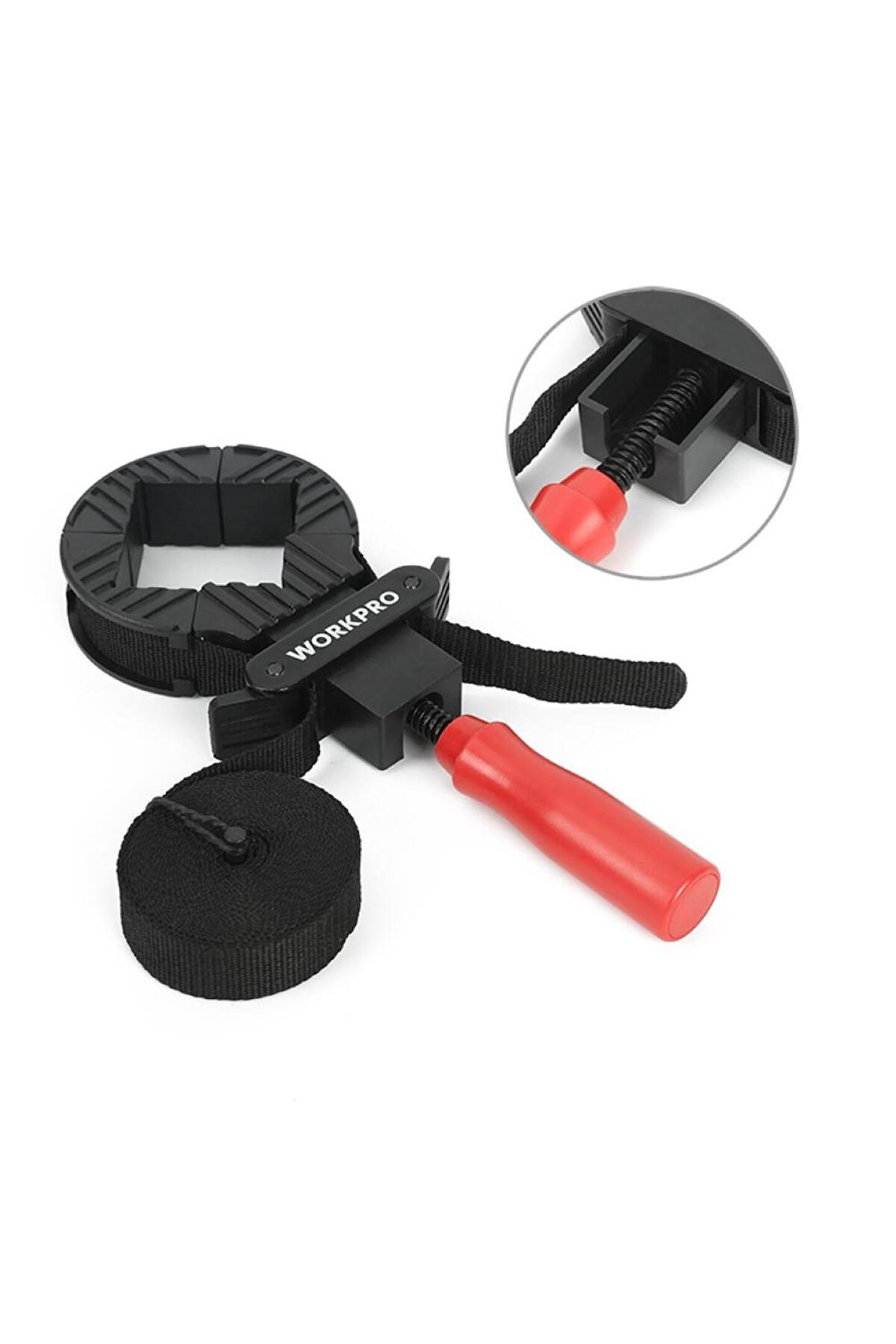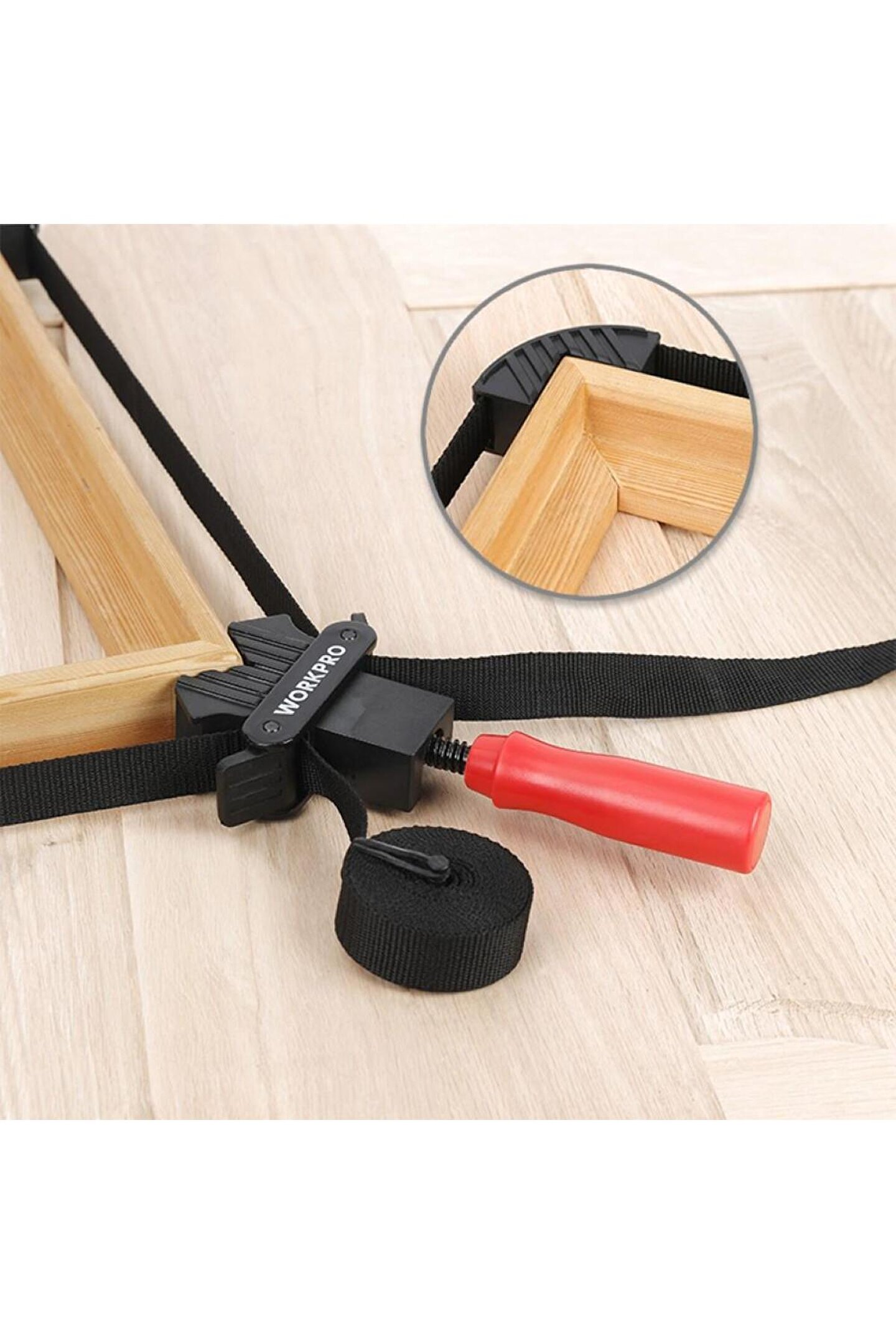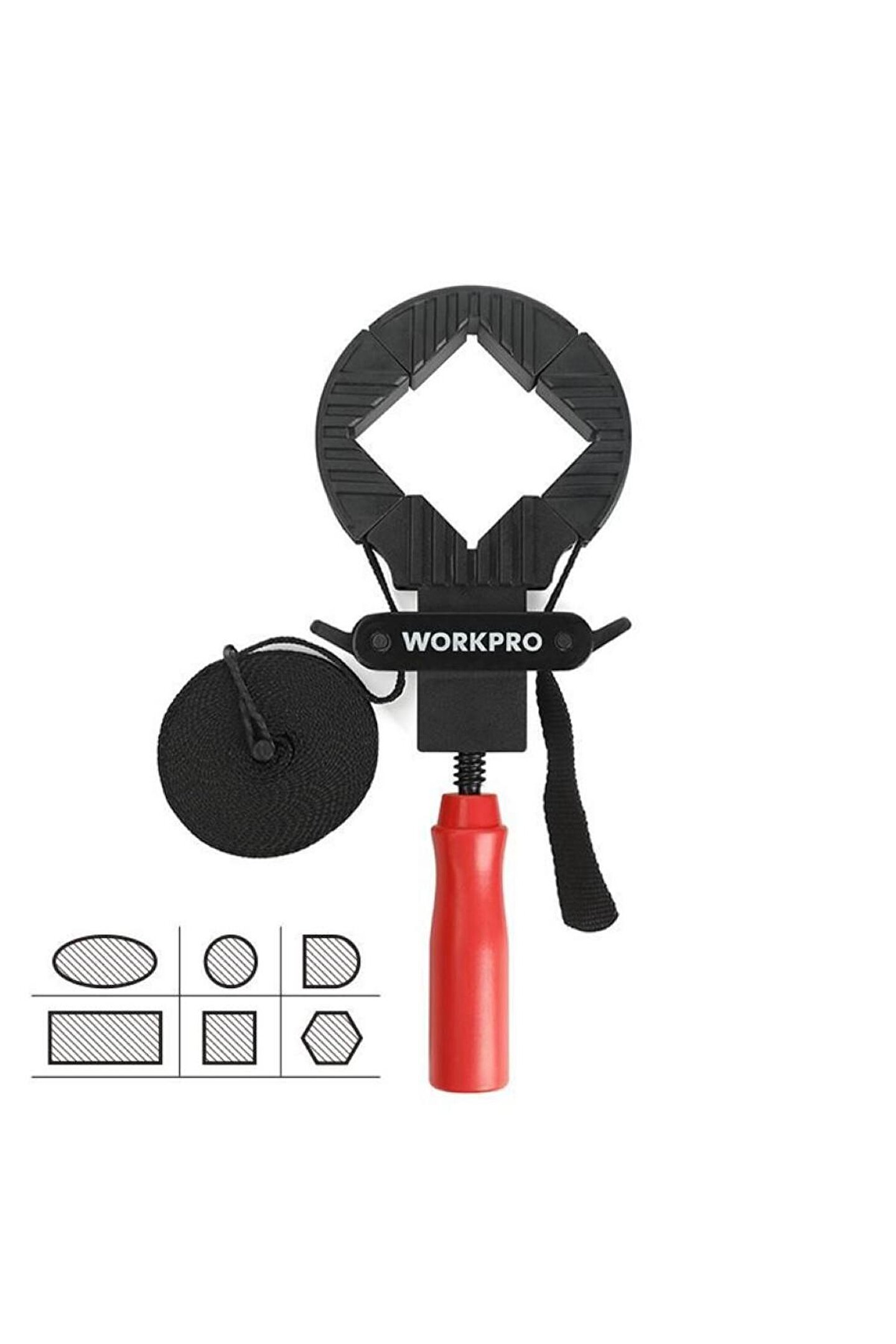 • WORKPRO WP232044 4M Ayarlanabilir Bant Tipi Dört Köşeli Profesyonel İşkence • Marangoz hanelerde, demir doğrama atölyelerinde vb.; üretim alanlarında metal, ahşap veya plastik parçaların geçici sabitleme ve birleştirme işlemlerinde, her türlü kare yuvarlak ve düzensiz şekilde farklı parçaların birleşim noktalarından yapıştırıcı tutkal veya kaynak ile sabitlenmesinde, işkence vazifesi görebilmesi için 4 metre gerdirmeye dayanıklı naylon dokuma kayış sistemi ve gerdirmeye dayanıklı dört adet köşebentler sayesinde masa, sandalye gibi çok köşeli malzemelerin sabitlenmesinde uzun ömürlü ve profesyonel kullanım imkânı sunar.; • Sıkıştırma gövdesine entegre çıkarılabilir PVC köşebentler sayesinde yuvarlak ve şekilsiz malzemelerin yüzeyini tamamen kavrayarak sabitlenmesini sağlar.; Malzeme yüzeyine zarar vermez, çizilmeleri engeller ve iz bırakmaz.; • Hızlı bırakma mandalları ile kolay ve zahmetsiz toplanmasını sağlar.; • Vidalı gerdirme kolu ile hassas gergi ayarı yapmanızı sağlar.; • 4 Metre Naylon dokuma kayış.