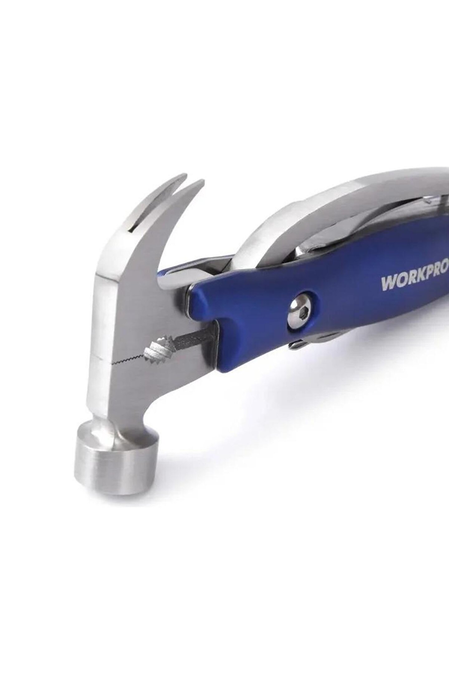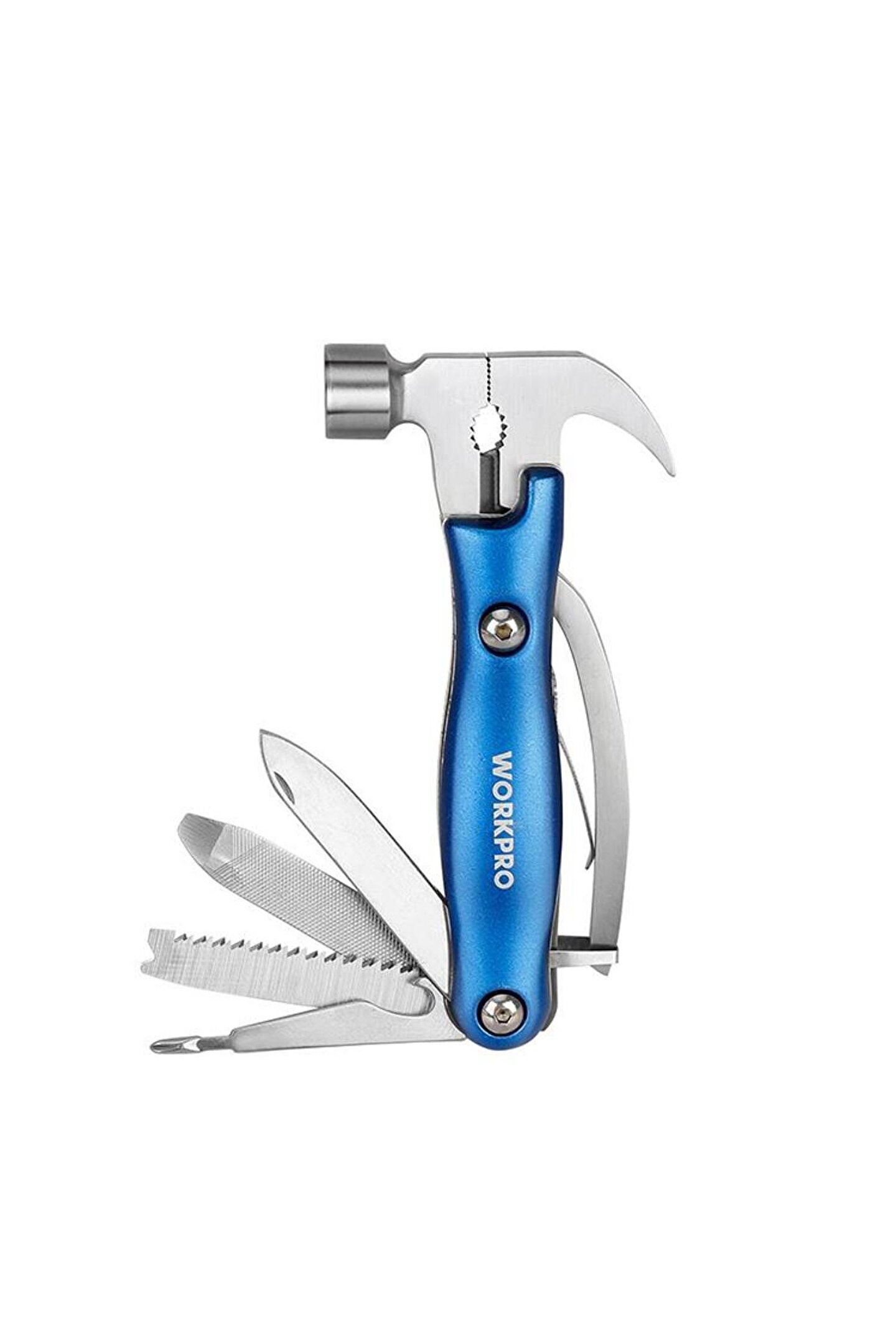 • WORKPRO WP382018 12 IN 1 Çok Fonksiyonlu Profesyonel Çekiçli Pense Seti • Sanayi, İnşaat, Otomotiv, Kamp, Avcılık, Acil durum, mekanik veya her türlü aletlerinin bakım ve onarımlarında profesyonel olarak ve uzun ömürlü kullanım için dayanıklı ve hafif Alüminyum çerçeve ve 2CR13 paslanmaz dövme çelik malzemeden üretilmiştir.; • Kancalı Çekiç, Burunsuz Pense, Bıçak, Tornavida, Eğe, Mini Testere, Gazoz Açacağı gibi birçok kullanım alanı sayesinde tek bir alet ile 12 farklı kullanım sağlar.; • Alüminyum tutma saplı dayanıklı paslanmaz dövme 2CR13 çelikten üretilmiş uzun ömürlü sağlam yapı.; • Kablo kesici çapraz dişler sayesinde kablo vb.; malzemelerin kesilmesine yardımcı olur.; • Burunsuz düz kavrama pensesi ve tırtıklı diş yapısı sayesinde kolay kavrama sağlar.; • Kilitlenebilir katlanır fonksiyonel aksesuarlar ile güvenli kullanım imkânı.; • Yüksek kaliteli paslanmaz dövme çelik kullanılmıştır, hassas ve ısıl işlemden sonra Pense ve uçları ve diğer aksesuarlar daha sert ve dayanıklı hale getirilmiştir.; • Çekiç başı ve çivi çıkarma kancası ile hızlı ve kolay çivi çıkarmanızı sağlar.