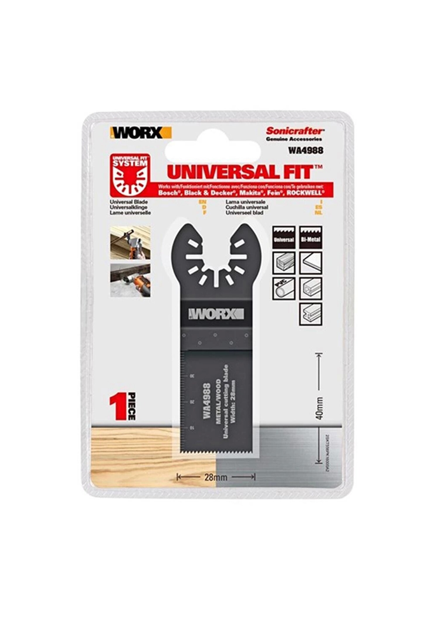 · WORX WA4988 Çok Amaçlı Raspalama Makinası İçin 28x40mm Metal, Ahşap, Fiberglas, PVC Universal Kesme Bıçağı · 28mm genişliğe ve 40mm derinliğe kadar metal, ahşap, PVC, alçıpan malzeme yüzeylerinde daire ve dekupaj testere ile kesilemeyen parçaların yerinden çıkarılmadan kesilmesine yarayan, çok amaçlı tüm raspalama makineleri ile kullanıma uygun Universal yüksek kaliteli HSS bıçak.; · Sıradan bıçaklara göre 2 kat daha uzun ömürlü yüksek kaliteli HSS kesici dişler sayesinde dayanıklılığını artırarak çapaksız kesim kalitesi sağlar.; · Anahtarsız aksesuar değiştirme özelliğine sahip mandallı veya vidalı sistem makinalar ile uyumlu Universal bağlantı sistemi sayesinde hızlı ve güvenli şekilde takmanızı ve değiştirmenizi sağlar.; · Worx çok amaçlı raspalama ve zımparalama makinaları ve diğer tüm markalar ile uyumlu üniversal kesme bıçağı.; · Tüm markalardaki çok amaçlı raspalama makinaları ile kullanıma uygundur.; · Bıçak Ölçüsü: 28mm x 40mm HSS Dişler · Bağlantı: Universal
