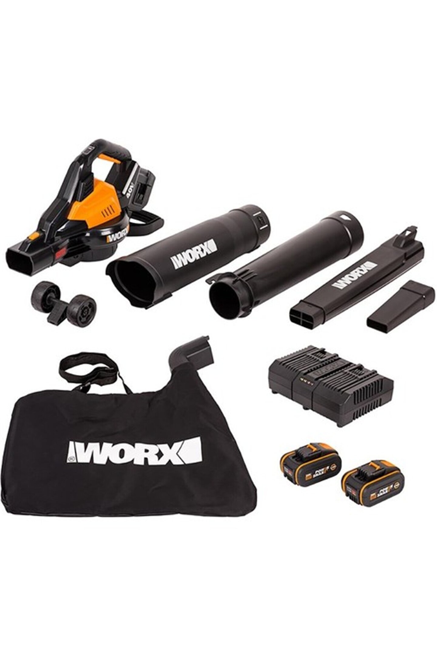 Worx wg583e 40volt 4.0ah.; Li-Ion kömürsüz profesyonel yaprak toplama ve üfleme · 40volt li-Ion akü ve kömürsüz motor teknolojisi ile tüm rakiplerinden daha güçlü ve yüksek performans.; · yeni nesil worx kömürsüz motorlu turbıne teknolojisi daha fazla hava hacmi sağlayan güçlü rüzgâr türbinleri sayesinde tırmık kullanmaya gerek kalmadan iğneli ve geniş ağaç yapraklarını toplayıp öğütmek, bahçe temizliği, atölye talaş temizliği gibi üfleme ve emiş gücü ile temizleme işlemlerinde mükemmel sonuçlar elde etmenizi sağlar.; · 3’ü 1 arada özelliği ile üfleme, emme ve yaprak öğütme olarak çok yönlü kullanım sağlar.; · kurumuş yaprakların kolaylıkla toplanarak 12:1 oranında öğütülmesini sağlayan çift yönlü keskin çelik bıçaklar ve turbıne teknolojisi ile tasarlanmış özel fan sayesinde mükemmel emiş gücü ve kasırga şiddeti sağlar.