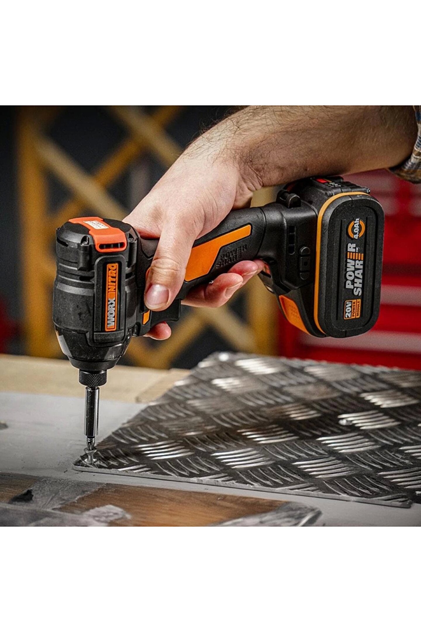 · WORX WX265.9 20Volt 200Nm Kömürsüz Profesyonel Şarjlı Darbeli Tornavida (Akü Dahil Değildir) · 20Volt Li-ion akü ve kömürsüz motor teknolojisi ile rakiplerinden daha güçlü ve yüksek performans.; · Worx NITRO serisi, ağır hizmet tipi Profesyonel uygulamalar için tasarlanmış teknolojik donanımları en üst seviyedeki ürünlerdir.; · Delme, Vidalama gibi tüm profesyonel işlerde kullanmak üzere tasarlanmış kömürsüz motor teknolojisi sayesinde son derece güçlü ve sağlam şanzıman yapısı ile en zorlu uygulamalarda dahi üstün performans sağlar.; · Worx POWER SHARE Li-ion akü teknolojisi sayesinde 20Volt WORX akünüzü tüm 20V/40V/80V Worx akülü makineleriniz ile kullanabilirsiniz.; · 200Nm maksimum tork gücü sayesinde üstün güç ve performans ile en zorlu uygulamalarda dahi zorlanmadan delme ve vidalama yapma imkânı · Özel darbe teknolojisi sıradan şarjlı matkapların sıkıp sökemediği zorlu vidalama uygulamaları için geliştirilmiştir.; · Özel Metal dişli MEGATORQUE darbe teknolojisi sayesinde sıkışmış, paslanmış hatta vida yuvası bozulmuş vidalarda bile üstün sıkma ve sökme performansı sağlar.; · Elektronik hız ayarı sayesinde vidalama uygulamalarında kullanılan malzemeye göre en uygun hız kontrolü.; · Worx Aktif Akü Koruma Teknolojisi ile aşırı zorlanmalarda ve uç sıkışması gibi durumlarda otomatik olarak akü enerjiyi durdurur ve LED ikaz ışığı yanıp söner, aküyü ve motoru korumaya alır.; · En hassas vidalama uygulamaları için tekitten devir ayarlı şalter ile hassas tork ve devir ayarlama imkânı sağlar.; · 3+1 kademeli elektronik tork ve devir ayarı sayesinde tetik hassasiyeti devre dışı bırakılarak yüke bindiğinde dahi sabit tork ve devir sayısı sağlar.; · Yapay zekâ destekli oto stop özelliği sayesinde, vida veya somun başlı vidaların sökme işlemi bittiğinde, tork algılanmadığında otomatik olarak akü enerjiyi durdurur vidaların veya somunların yanlışlıkla malzeme üzerinden düşmesine engel olur.; · Aktif Hücre(pil) Koruma Teknolojisi ile aşırı zorlanmalarda ve uç sıkışması gibi durumlarda otomatik olarak akü enerjiyi durdurur ve LED ikaz ışığı yanıp söner, aküyü ve motoru korumaya alır.; · Daha fazla çalışma süresi ve uzun alet ömrü için güçlendirilmiş darbe mekanizması ve şanzıman yapısı sayesinde vida, somun gibi zorlu uygulamaların üstesinden kolaylıkla gelir.; · Yüksek mukavemete sahip alüminyum şanzıman gövdesi sayesinde düşmelere karşı üstün koruma sağlarken aşırı ısınmayı geciktirir, hızlı soğutma sağlar.; · ¼”6,35mm ‘Tak-Unut’ anahtarsız altıgen uç tutucu tek elle hızlı aksesuar değiştirme imkânı sağlar.; · Dahili çelik kemer kancası ve uç tutucu klips.; · Profesyonel Kullanıma uygundur.; · AKÜ VE ŞARJ ALETİ DAHİL DEĞİLDİR! · Güç: 20Volt · Maks.; Tork: 200 Nm · Yüksüz Hızı: 1. Kademe: 0-1200dev/dk.; · 2. Kademe: 0-2400dev/dk.; · 3. Kademe: 0-3400dev/dk.; · Darbe Sayısı: 1. Kademe: 0-1400 darbe/dk.; · 2. Kademe: 0-2600 darbe/dk.; · 3. Kademe: 0-3600 darbe/dk.; · Mandren Kapasitesi: 6,35mm (¼”) · Ağırlık (Aküsüz) 0,88 Kg.; · Standart Ekipman: kemer askı kancası, uç tutucu klips, Yıldız başlı vidalama ucu.