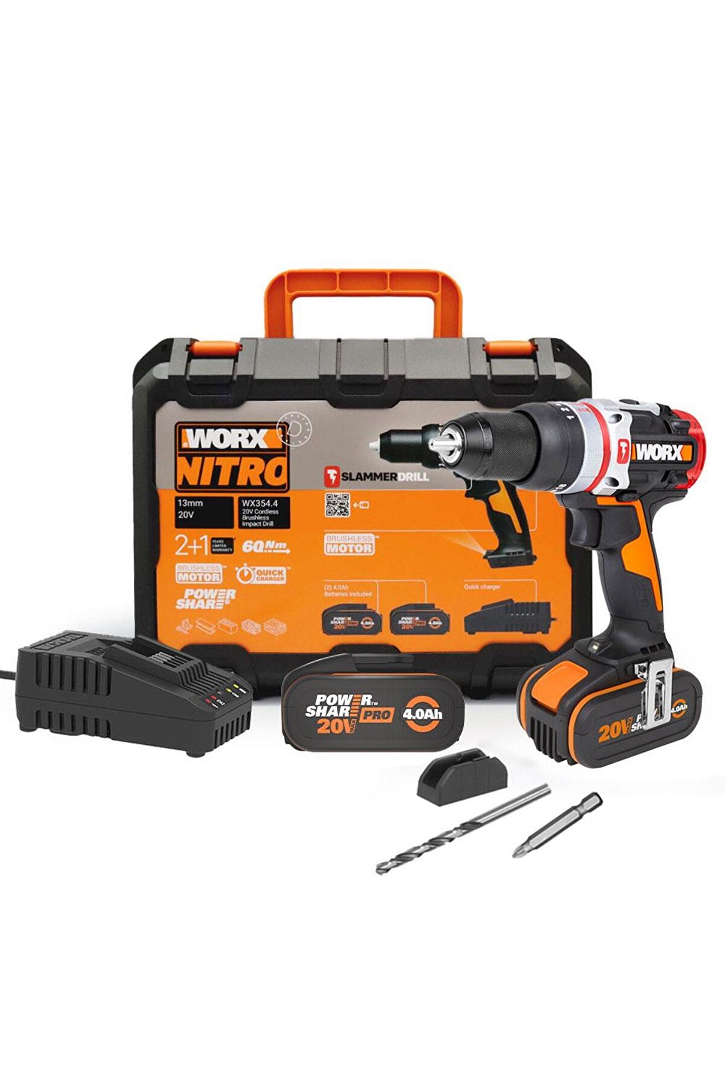 • WORX WX354.4 20Volt/4.0Ah Li-ion Çift Akülü Kömürsüz Profesyonel Şarjlı Darbeli Matkap • 20Volt Li-ion akü ve kömürsüz motor teknolojisi ile tüm rakiplerinden daha güçlü ve yüksek .; • Delme, Vidalama gibi tüm profesyonel işlerde kullanmak üzere tasarlanmış kömürsüz motor teknolojisi sayesinde son derece güçlü ve sağlam şanzıman yapısı ile en zorlu uygulamalarda dahi üstün sağlar.; • Patentli Worx SLAMMER darbe teknolojisi sayesinde tüm rakiplerinden daha yüksek darbe gücü ile betonda bile sorunsuz mükemmel delme sağlar.; • Worx POWER SHARE Li-ion akü teknolojisi sayesinde 20Volt Worx akünüzle tüm 20Volt Worx şarjlı ürünlerini çalıştırabilirsiniz.; 20Volt Worx akünüzle yüzlerce Worx şarjlı ürününü çalıştırabilirsiniz.; • Patentli Worx SLAMMER darbe teknolojisi sayesinde beton duvar ve tavanda yüksek ile hızlı ve kolay şekilde delme işlemi yapabilirsiniz.; • Worx Aktif Akü Koruma Teknolojisi ile aşırı zorlanmalarda ve uç sıkışması gibi durumlarda otomatik olarak akü enerjiyi durdurur ve LED ikaz ışığı yanıp söner, aküyü ve motoru korumaya alır.; • 2 vitesli şanzıman, duvar, ahşap, beton, çelik, plastik ve metalde üstün delme ve vidalama performansı sağlar.; • Tork ayar özelliği ayarlanan tork gücüne ulaştığında malzemeye ve vidaya zarar vermeden otomatik olarak durmasını sağlar • Daha fazla çalışma süresi ve uzun alet ömrü için sağlam 2 vitesli metal şanzıman yapısı.; • Otomatik mil kilitli ağır hizmet tipi 13mm tek kovanlı anahtarsız metal mandren ile tek elle kolay ve hızlı uç değiştirme • Olağan üstü kompakt ve hafif, zor alanlarda bile uzun süre yorulmadan çalışma imkânı sağlar.; • Kompakt tasarım tek elle rahat kullanım ve dar alanlara erişim sağlar • En zorlu uygulamalar için 18+1+1 kademeli tork ayarı.; • 18+1+1+1 kademeli tork ayarı ile ahşap, metal, plastikte delme ile her türlü vidalama uygulamasında üstün kontrol ve hassaslık • Sağ/sol ayarı ile rahat vidalama ve delme işlemi yapmanızı sağlar.; • Geri dönüşte tam güç sağlayan özel teknoloji sayesinde vida sökmede veya sıkışan ucu çıkarmada tam güç sağlar • Birbirinden bağımsız Tork ayar bileziği ve SLAMMER darbe fonksiyon ayarı ile uzun alet ve şanzıman ömrü.; • Worx 20Volt Li-ion akü sıradan akülere göre 4 kat daha uzun süre şarjını muhafaza eder.; • Çift Akü sayesinde şarj süresini beklemeden kesintisiz çalışma • Akü üzerinde yer alan akü şarj seviyesini gösteren 3 kademeli LED lamba sayesinde akü enerji seviyesini görebilme imkânı.; • Entegre LED aydınlatma çalışma alanını aydınlatır.; 20 Saniye gecikmeli sönen LED aydınlatma sayesinde güvenli kullanım.; • Taşıma çantası ile alet ve aksesuarları temiz ve güvenli bir şekilde saklama • Profesyonel Kullanıma uygundur.; • Güç: 20Volt Li-ion • Akü Kapasitesi: 4.0Ah.; 72Wh.; • Maks.; Tork: 60Nm • Yüksüz Hızı: 0-600/0-2000 dev/dk.; • Darbe Sayısı: 0-1800/0-6000 darbe/dk.; • Maksimum Delme Kapasitesi: Tuğla: 16mm, Beton: 10mm, Metal: 13mm, Ahşap 40mm • Mandren Kapasitesi: 13mm • Standart Ekipman: 2 Adet 4.0Ah Li-ion akü, Şarj aleti, Kemer askı kancası, çift başlı vidalama ucu, 8mm Beton delme ucu, Taşıma çantası.; • Ağırlık: 1,90 Kg