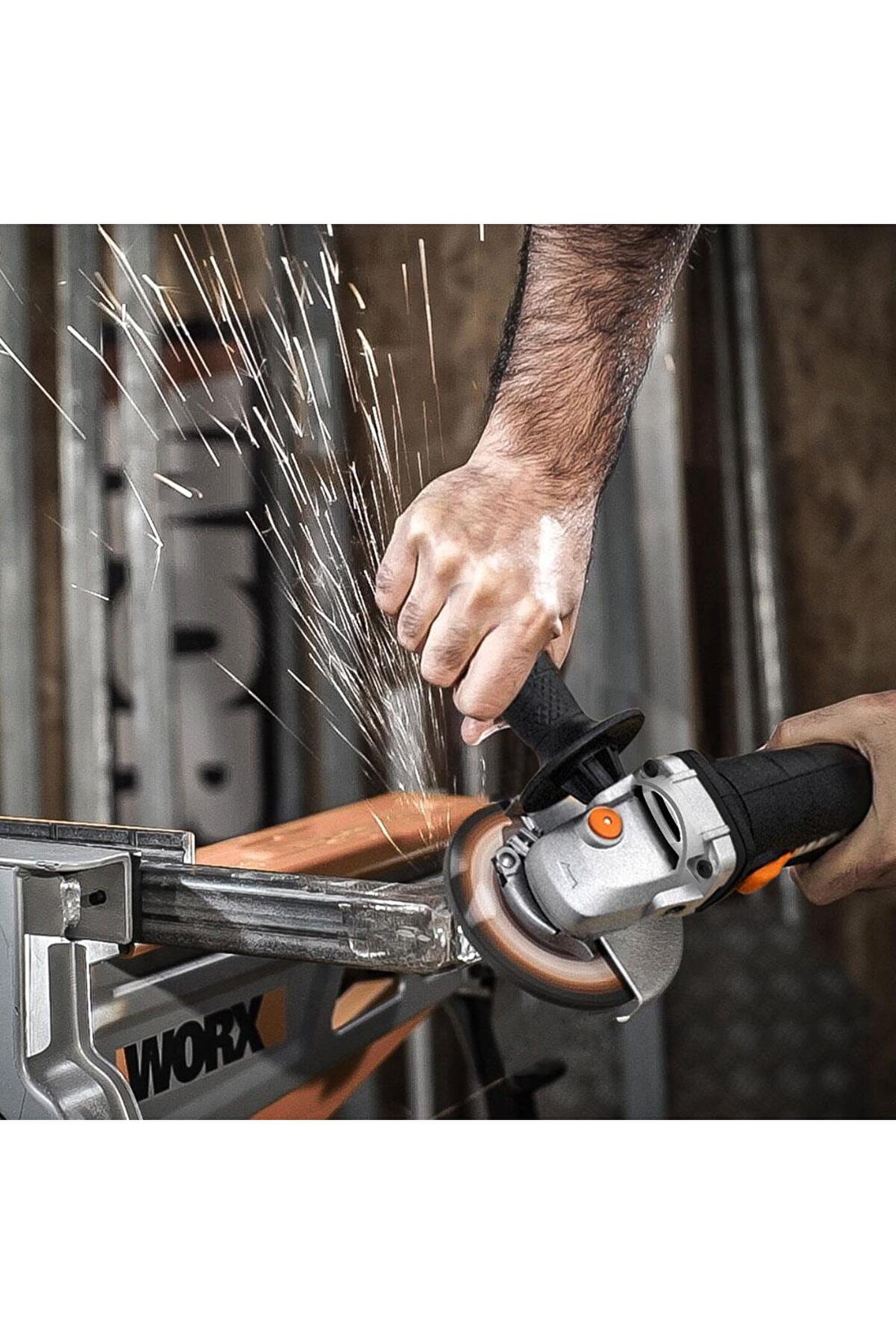 · WORX WX717 750Watt 115mm Profesyonel Avuç Taşlama · 750Watt güçlü motor ile tüm rakiplerinden daha güçlü ve yüksek .; · Metalde kesme, taşlama ve çapak alma, taş, tuğla ve betonda kesme, tel fırça ile metalde kazıma, zımpara diskleri ile kaba zımparalama, seramik keme ve kısaltma gibi en zorlu uygulamalarda dahi üstün sağlar.; · 750Watt güçlü motor ve dişli mekanizması sayesinde 115mm’lik disk çapı ile kesme, taşlama, zımparalama gibi zor uygulamalarda ve dar alanlarda üstün sağlar.; · 11.000 dev/dk.; dönme hareketi ile hızlı, kaliteli ve mükemmel kesim sağlar.; · Yumuşak başlangıç özelliği ile dişli ve kömür sistemini uzun süre koruyarak alet ömrünü uzatır.; · Vidalı disk koruma açısı ayarlama özelliği ile istenilen açı ayarında kolayca sabitleme imkânı.; · Çelik kesim, spiral açılı dişliler sayesinde yüksek dayanıklılık seviyesi ve düşük vibrasyon sunarak kullanıcı verimliliğini arttırır.; Uzun alet ömrü sunar.; · Çelik kesim spiral açılı dişliler daha az titreşim, daha düşük gürültü ve daha uzun kullanım ömrü sağlar · Metal dişli kutusu uzun kullanım ömrü ve dayanıklılık sağlar · Basık ve modüler dişli kutusu dişli dayanıklılığını arttırır, titreşimi en aza indirerek kullanıcı konforunu artırır.; · Kullanıcı güvenliği için akıllı tetik tasarımı sayesinde tetik açık unutulmuş olsa bile fişe takıldığında alet çalışmaz, tetik kapatılıp tekrar açıldığında devreye girecektir.; · Kompakt gövde tasarımı sayesinde tek el ile rahat kavranır, uzun süre konforlu kullanım sağlar.; · Yüksek kaliteli motor ve dayanıklı kömür, üstün ve uzun makine ömrü sağlar.; · Güçlü motor ile çok çeşitli kesme ve taşlama uygulamaları.; · En iyi soğutma için mükemmelleştirilmiş hava kanalları.; · Gövde yanında yer alan kilitli tetik sayesinde baş parmağınız ile kolayca açma/kapatma işlemi.; · Mil kilidi ile kolay ve hızlı aksesuar değiştirme.; · Ayarlanabilir açı ayarlı disk koruyucu aparat ile kıvılcım ve tozun kullanıcıya ulaşmasını engeller maksimum kullanıcı güvenliği sağlar.; · İki yönlü takılabilir yan tutma kolu kullanım kolaylığı ve kullanıcı güvenliği sağlar.; · Olağan üstü kompakt ve hafif, uzun süre yorulmadan çalışma imkânı sağlar.; · Kompakt tasarım ile tek elle rahat kullanım sağlar.; · Dar alanlarda rahat kullanım ve arttırılmış uygulama esnekliği sağlar · Daha fazla çalışma süresi ve uzun alet ömrü için sağlam dişli ve dişli kutusu.; · Profesyonel Kullanıma uygundur.; · Güç: 750Watt · Yüksüz Hızı: 11.000 dev/dk.; · Disk Çapı: 115mm · Mil Çapı: M14 · Ağırlık: 1,80Kg.; · Standart Ekipman: 1 Adet 115mm Taşlama Diski, 1 Adet Taş Sıkıştırma Anahtarı, 1 Adet Yan Tutma Kolu, 1 Adet disk koruma aparatı.