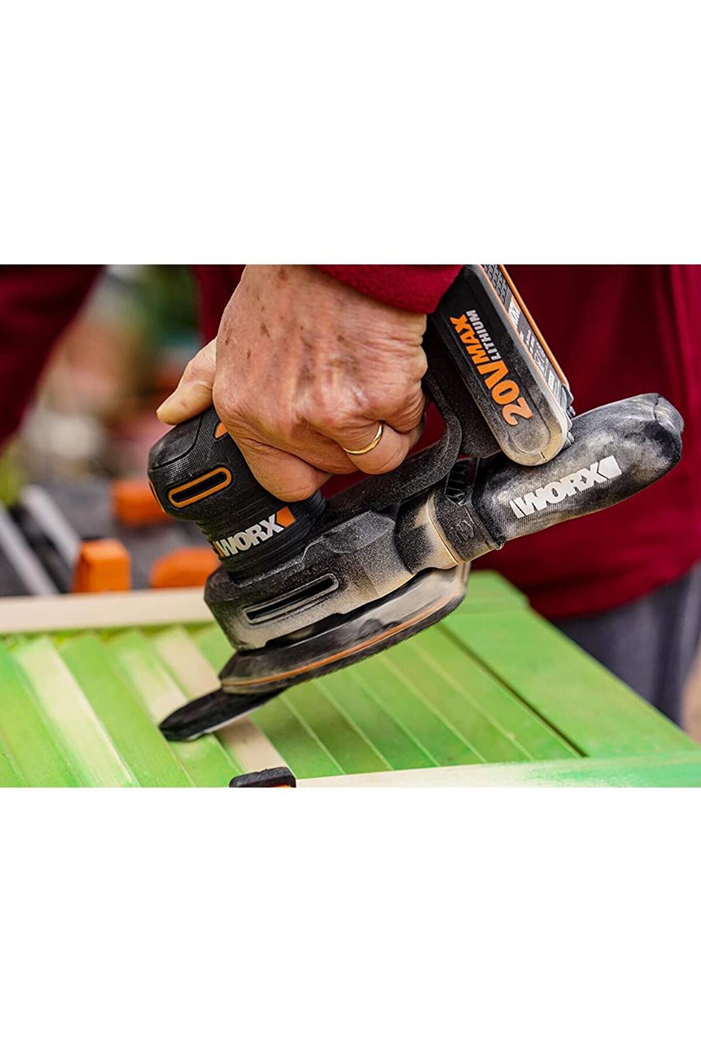 · WORX WX822 20Volt 2.0Ah.; Li-ion Şarjlı Profesyonel Üçgen Mouse Zımpara · 20Volt Li-ion akü ve motor teknolojisi ile tüm rakiplerinden daha güçlü ve yüksek .; · Ulaşılması zor, dar, kavisli, kenar ve köşelerde, pürüzlü yüzeylerin zımparalama veya parlatılmasında mükemmel sonuç elde etmenizi sağlar.; · Güçlü motor ve son derece sağlam eksantrik mil sayesinde en zorlu zımpara uygulamalarında dahi zorlanmadan kolay kullanım imkânı sağlar.; · Tırabzan kolları, masa kenarları, ahşap merdiven köşeleri, dekoratif yüzeylerde, sehpa ayakları gibi girintili ve çıkıntılı yüzeylerde mükemmel sonuçlar elde etmenizi sağlar.; · 12.000 titreşim/dk.; ile pürüzlü yüzeylerin mükemmel bir şekilde zımparalanmasını sağlar.; · Pürüzsüz sonuçlar için 2mm yörünge çapı ile pürüzlü yüzeylerin zımparalanmasında mükemmel verimlilik sağlar.; · Yük altında bile maksimum titreşim sayısı sağlayarak dalgalı zımpara izleri bırakmaz.; · Tüm yüzey uygulamaları için 6 farklı dahili zımpara kağıtları ile çok yönlü kullanım imkânı.; · İnce gövdeli titreşimi emen kauçuk tutma kolu sayesinde uzun süre yorulmadan tek el ile kullanma imkânı sağlar.; · Toz emme kanalları sayesinde motora her daim temiz hava akımı sağlanarak zımparalama işlemlerinde tozun motora girmesi engellenir, toz toplama haznesine aktarılır.; Bu sayede rulman ve motor için uzun alet ömrü sağlanırken temiz bir çalışma ortamı sağlanır.; · Daha verimli zımparalama performansı ve kâğıt ömrü için entegre toz torbası ile temiz ve rahat kullanım sağlar.; · Alüminyum rulman ve rulman yataklı yüksek performanslı motor sürekli kullanım ve uzun alet ömrü sağlar.; · Anti-Vibrasyon, titreşim engelleme teknolojisi sayesinde, karşı denge mekanizmasıyla neredeyse sıfır titreşim sağlayarak zımparalama alanında konforlu işler yapmanızı sağlar.; Bu sayede kol ve eklem sağlığınızı korumuş olursunuz.; · Worx POWER SHARE Li-ion akü teknolojisi sayesinde 20Volt Worx akünüzle tüm 20Volt Worx şarjlı ürünlerini çalıştırabilirsiniz.; 20Volt Worx akünüzle yüzlerce Worx şarjlı ürününü çalıştırabilirsiniz.; · Worx POWER SHARE Li-ion akü teknolojisi sayesinde 20Volt WORX akünüzü tüm 20V/40V/80V Worx akülü makineleriniz ile kullanabilirsiniz.; Ayrıca 40V/80V ürünlerinizle birlikte gelen akülerinizi tüm 20V Worx akülü makinalarınız ile kullanabilirsiniz.; · Worx 20Volt Li-ion akü kullanılmadığı zamanda şarjını korur, bu sayede istediğiniz an kullanıma hazırdır.; · Hızlı ve kolay kâğıt değiştirmek için kendinden yapışkanlı cırt taban.; · Rahat kullanım için titreşimi emen kauçuk kaplı tutma kolu · Worx 20Volt Li-ion akü kullanılmadığı zamanda şarjını korur, bu sayede istediğiniz an kullanıma hazırdır.; · Worx 20Volt Li-ion akü sıradan akülere göre 4 kat daha uzun süre şarjını muhafaza eder.; · Rahat kullanım için titreşimi emen kauçuk kaplı tutma kolu · Güçlü motor soğutma sistemi sayesinde uzun süreli kullanımlarda sorunsuz çalışma performansı sağlar.; · Daha fazla çalışma süresi ve uzun alet ömrü için sağlam metal dişli yapısı · Kompakt tasarım tek elle rahat kullanım ve dar alanlara erişim sağlar · 1 saatlik hızlı şarj cihazı ile kesintisiz çalışma imkânı.; · Taşıma çantası ile alet ve aksesuarları temiz ve güvenli bir şekilde saklama · Profesyonel Kullanıma uygundur.; · Güç: 20Volt Li-ion · Akü Kapasitesi: 2Ah.; · Yüksüz Hızı: 12.000 titreşim/dk.; · Titreşim Çapı: 2mmØ · Zımpara Ölçüsü: 140 x 90mm · Uzatma Aparat Ölçüsü: 80 x 25mm · Ağırlık: 1,15 Kg · Standart Ekipman; 1 adet WORX 20Volt 2.0Ah.; Akü, 1 Saatlik Akü Şarj Cihazı, 3 adet 60/80/120 kum 140x90mm zımpara kâğıdı, 1 adet 80x25mm uzatma aparatı, 3 adet 60/80120 kum 80x25mm zımpara kâğıdı, Ağır hizmet tipi taşıma çantası.