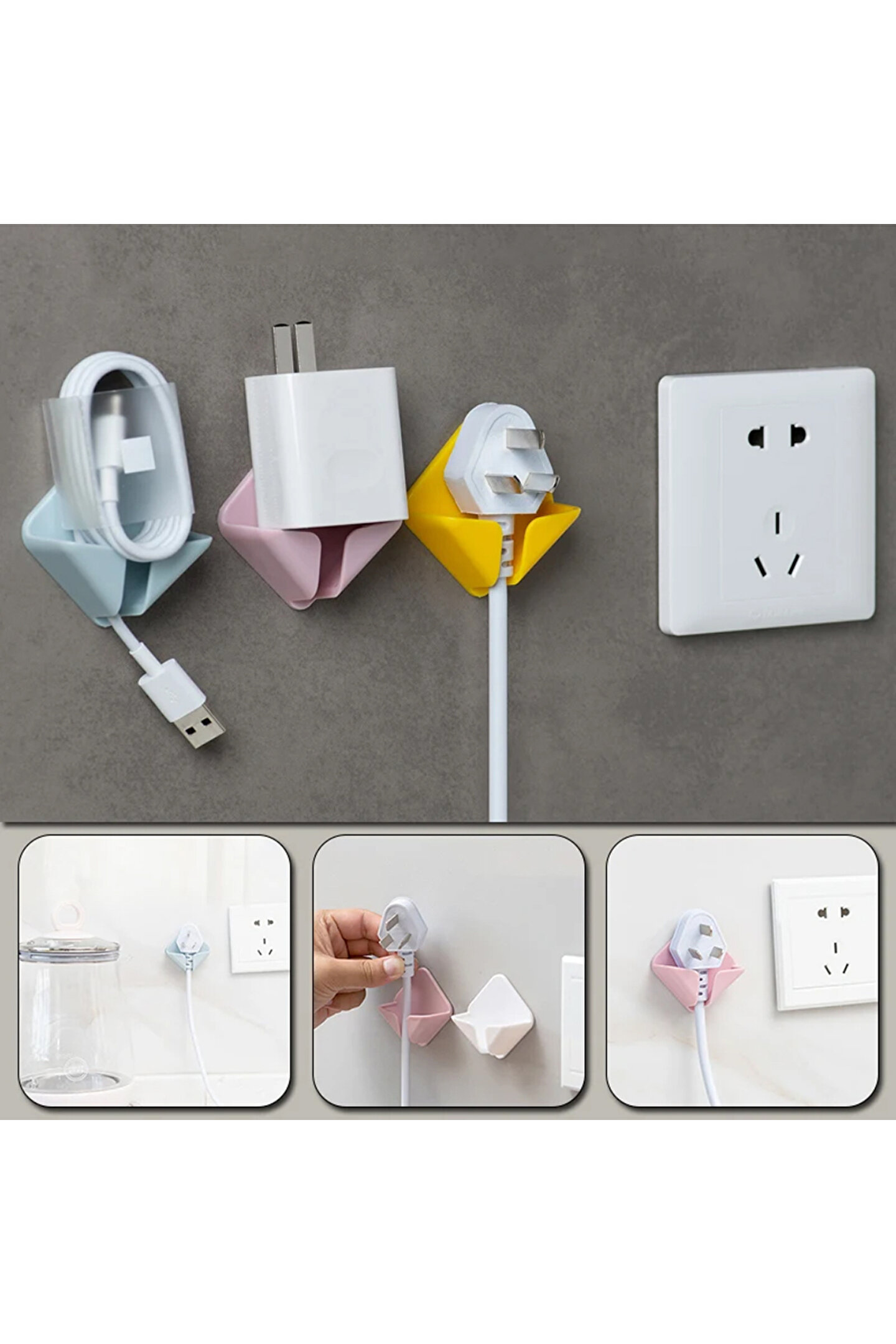 WSELLMALL SİLİKON FİŞ VE KABLO TUTUCU - KENDİNDEN YAPIŞKANLI - İKİLİ SET (4116)