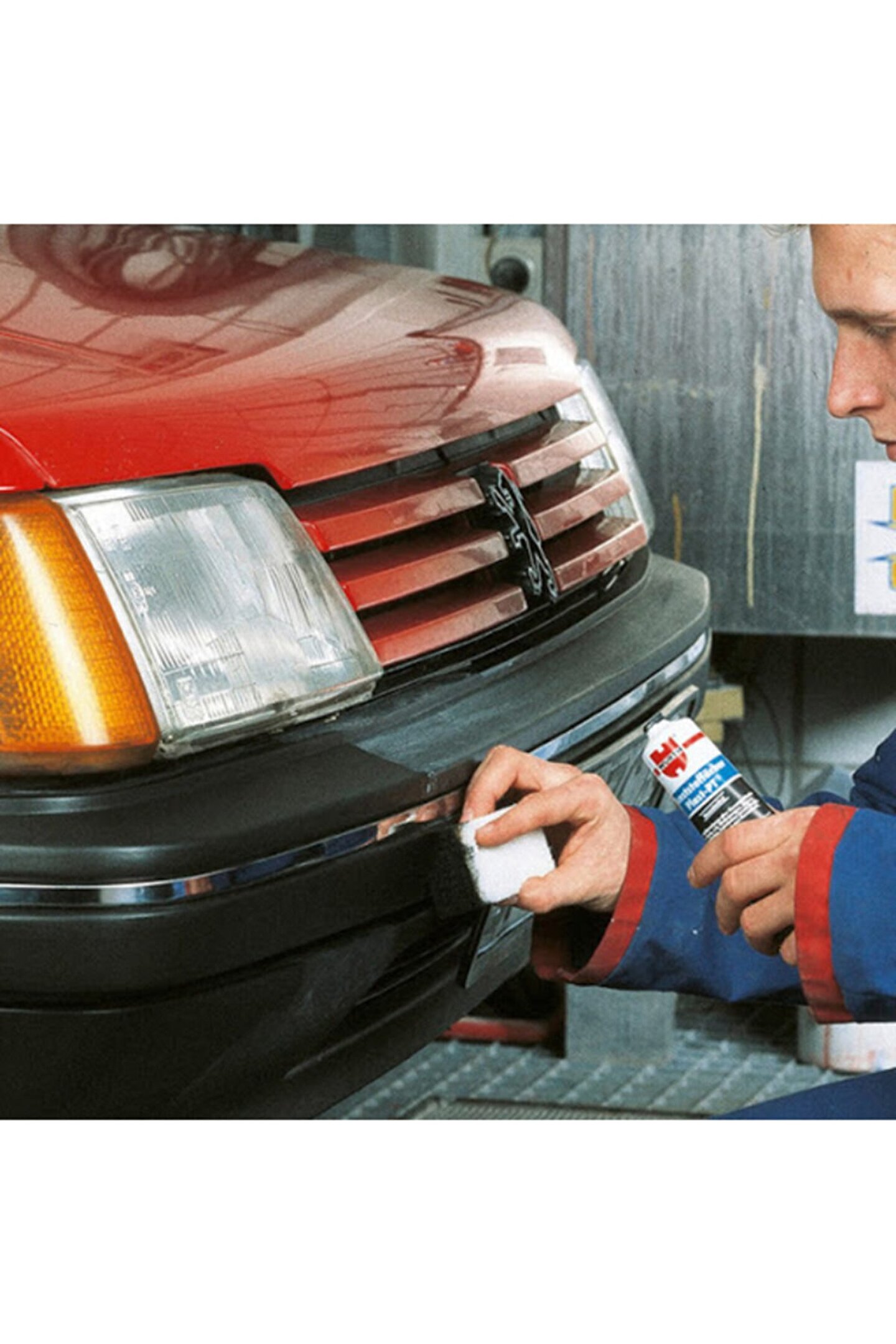PLASTİK BOYASI PLAST PT® Aracın tüm plastik parçalarının görsel bakımı için Çözücü içermez ; Yüksek kaliteli, emülsiyon bazlı plastik boya ; Solmuş plastik parçaların yeni gibi görünmesini sağlar ; Kolay kullanım ; Doğrudan güneş altında uygulanabilir ; + 7°C altındaki sıcaklıklarda uygulamayın veya saklamayın ; Not:Uygulama yapılırken plastik boyası, neme karşı hassastır. Bu nedenle yağmur altında uygulamayın veya uygulamadan kısa bir süre sonra suyla temas ettirmeyin. Kullanım alanı Tamponlar, sentetik deri tavanlar, katlanan tavanlar (kumaş dahil), plastik iç kaplama, lastik parçalar, su hortumları, marşpiyel vb. Kılavuz Kullanmadan önce çalkalayın. Süngeri su ile biraz ıslatın ve uygulama yapılacak plastik yüzeyi süngerin pürüzlü tarafı ile temizleyin. Süngeri hafifçe sıkın. Plastik boyayı süngerin pürüzsüz tarafına uygulayın ve uygulama yapılacak yüzeye eşit bir şekilde uygulayın. Süs çıtalarına ve boyalı yüzeylere bulaşan boyayı işlemin ardından hemen silin. Kurumuş plastik boya nemli boya ile tekrar çözülebilir.