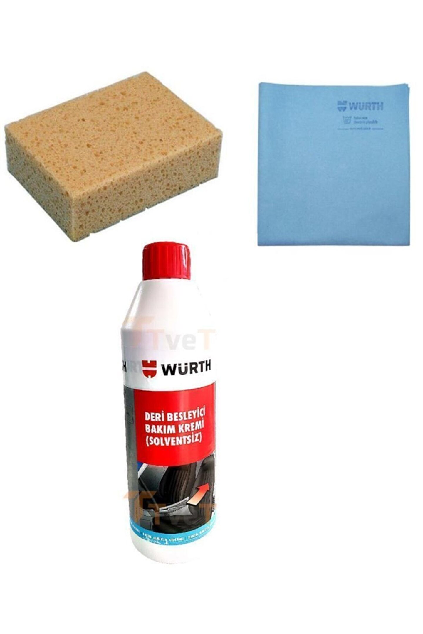 TveT Würth Yıkama Süngeri - Made in Germany SK001924 : Özellikler: Malzeme: Poliüretan köpük; Uzunluk x genişlik x yükseklik: 18 x 13 x 6 cm; Uzunluk: 18 cm; Genişlik: 13 cm; Yükseklik: 6 cm; Sıkıştırma kuvveti sapması: 4 kPa; Sıkıştırma kuvveti sapması koşulları: %40 deformasyon; Min. boyuna germe dayanımı: 60 N/cm²; Min. enine germe dayanımı: 60 N/cm²; Min. çapraz kopma uzaması: 100 %; Min. uzunlamasına kopma uzaması: 100 %; TveT Würth 38x60 Cm Sentetik Güderi Bez Mavi 130 gr SK001897 : Kullanım alanları: . Araçların iç ve dış temizliğinde (kaporta,camlar,torpido ve kokpit) nemli ve kuru olarak kullanılır. . Özellikleri: . Tüm yüzeylerde mükemmel temizlik sağlar. . Hassas yüzeylerde güvenle kullanılabilir. . Yüzeyi çizmez,tüy,hav ve leke bırakmaz. . Süper sağlam ve emicidir. . Son teknoloji kullanılarak üretilmiştir. TveT Würth Deri Besleyici Temizleyici Bakım Kremi 500 ML (Solventsiz) SK002131 : Würth Deri Besleyici Bakım Kremi 500 ML - Solvent İçermez Tüm deri parçaların, yüzey kalitesini koruyarak temizliğini sağlar.; Kullanımı:; Şişeyi kullanımdan önce iyice çalkalayın. Deri temizleyicisini temiz bir bez vasıtasıyla dairesel bir hareketle yüzeye sürün ve bir kaç dakika kurumasını bekleyin. Ardından temiz bir bezle ovarak silin.; Kullanım Alanları; Tüm düzgün yüzeyli deriler (oto derileri, deri mobilya, deri ceket vs.); Nazikçe temizler ve bakım yapar Boyanmış, metalik, sürüngen derisi, süet, pürüzlü deri gibi Tüm pürüzsüz deri türleri için özel vaks ve silikon emülsiyonundan oluşan bakım kremi Deriyi besler ve parlaklık kazandırır. Özellikleri: Deriyi temizler ve bakımını sağlar. Sürekli kullanıldığında deride oluşabilecek çatlak ve yırtıkları önler ve derinin yumuşak ve pürüzsüz bir hale gelmesine yardımcı olur. Kullanım şekli: Kutuyu kullanmadan önce kuvvetlice çalkalayınız. Yumuşak ve temiz bir bez ile besleyici bakım kremini deriye yediriniz ve birkaç dakika beklettikten sonra aynı bez ile tekrar derinin üzerinden geçiniz. Kullanmadan önce derinin görünmeyen bir kısmında bakım kreminin deri için uygunluğunu deneyiniz. Bu bilgiler yalnızca deneyimlerimize dayanmakta ve tavsiye niteliği taşımaktadır. Ön deneme yapmanız gereklidir. Tahriş edici. Yanıcıdır. Cilde teması halinde alerjik reaksiyonlara sebep olabilir. Suda yaşayan organizmalara karşı zararlıdır. Doğal ortamlarda suda uzun vadeli zararlara yol açabilir. Aerosolü ve oluşan buharı içinize çekmeyiniz. Kanalizasyona dökmeyiniz ve karışmasını engelleyiniz. Boş kapları ve ambalajları güvenli şekilde imha ediniz. Çalışırken uygun koruyucu eldiven ve çalışma kıyafetlerini kullanınız. Yanlışlıkla içilmesi durumunda kişiyi kusturmaya çalışmayınız ve derhal bir doktora başvurup bu ambalajı yada etiketi gösteriniz.