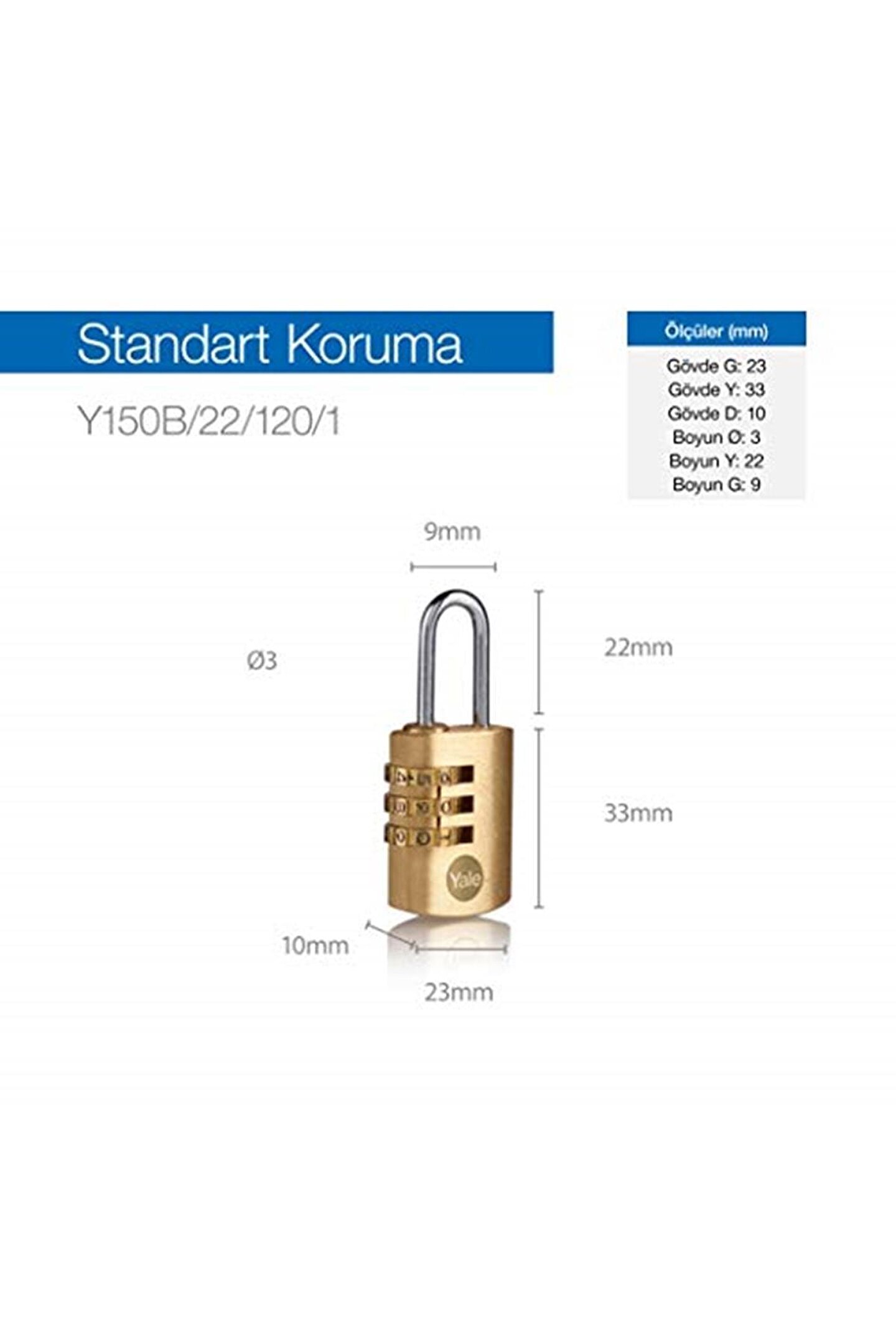 Sert pirinç gövde 22/30/40mm olarak farklı boyutlarda mevcuttur. Krom kaplı çelik halka 1000 üzerinde kombinasyondan biriyle belirleybileceğiniz şifre Değiştirilebilir şifreli kilit 48 saat korozyona dayanabilir. Sürdürebilirlik için Yale asma kilit ambalajının kapladığı alan %10 azaltılmıştır.