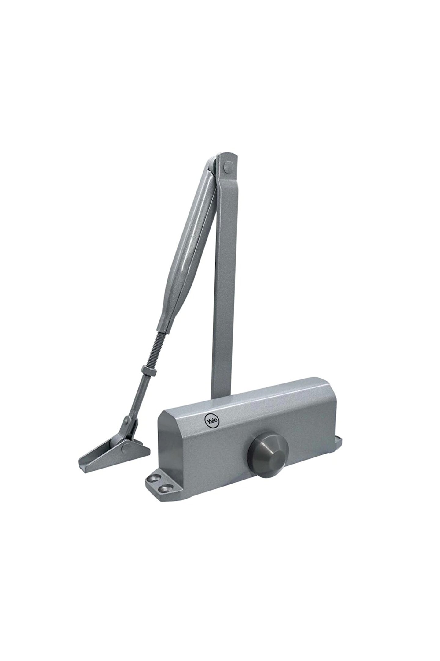 Yale Kapı Hidroliği Sabit Güçlü Gümüş Ürün Özellikleri: Hafif hizmet sabit güç ayarlı kapı hidroliği; Alüminyum döküm gövde; UL Sertifikalı ve sabit güç ayarlı; Ayarlanabilir kapanma ve frenleme hızı;