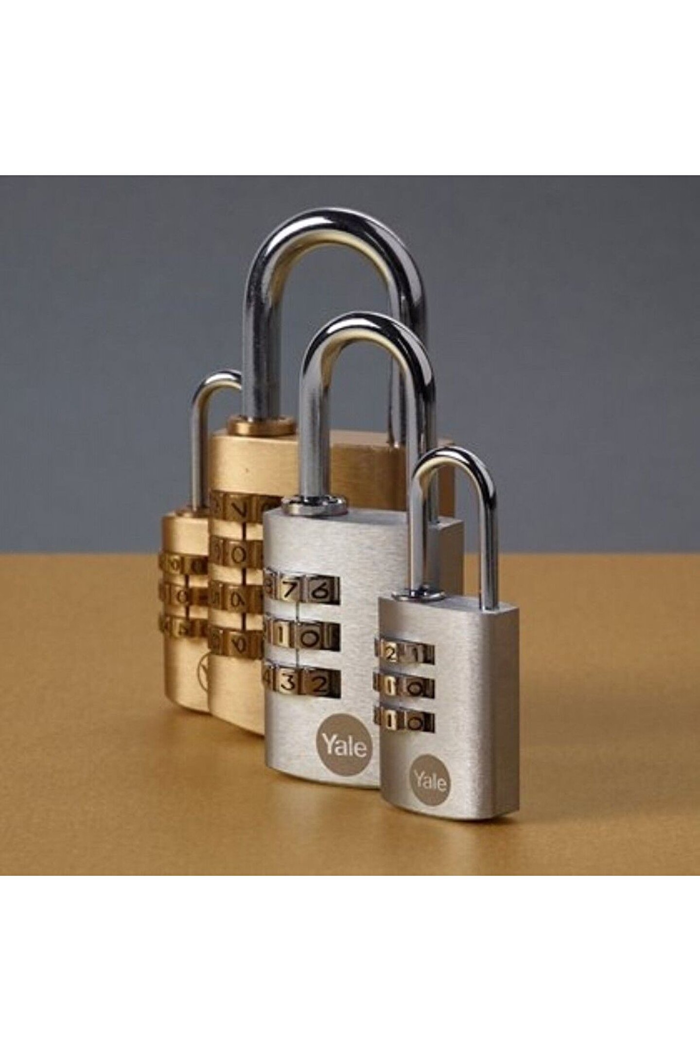 Sert pirinç gövde ; 22/30/40mm olarak farklı boyutlarda mevcuttur. ; Krom kaplı çelik halka ; 1000 üzerinde kombinasyondan biriyle belirleybileceğiniz şifre ; Değiştirilebilir şifreli kilit ; 48 saat korozyona dayanabilir. ; Sürdürebilirlik için Yale asma kilit ambalajının kapladığı alan %10 azaltılmıştır. ;