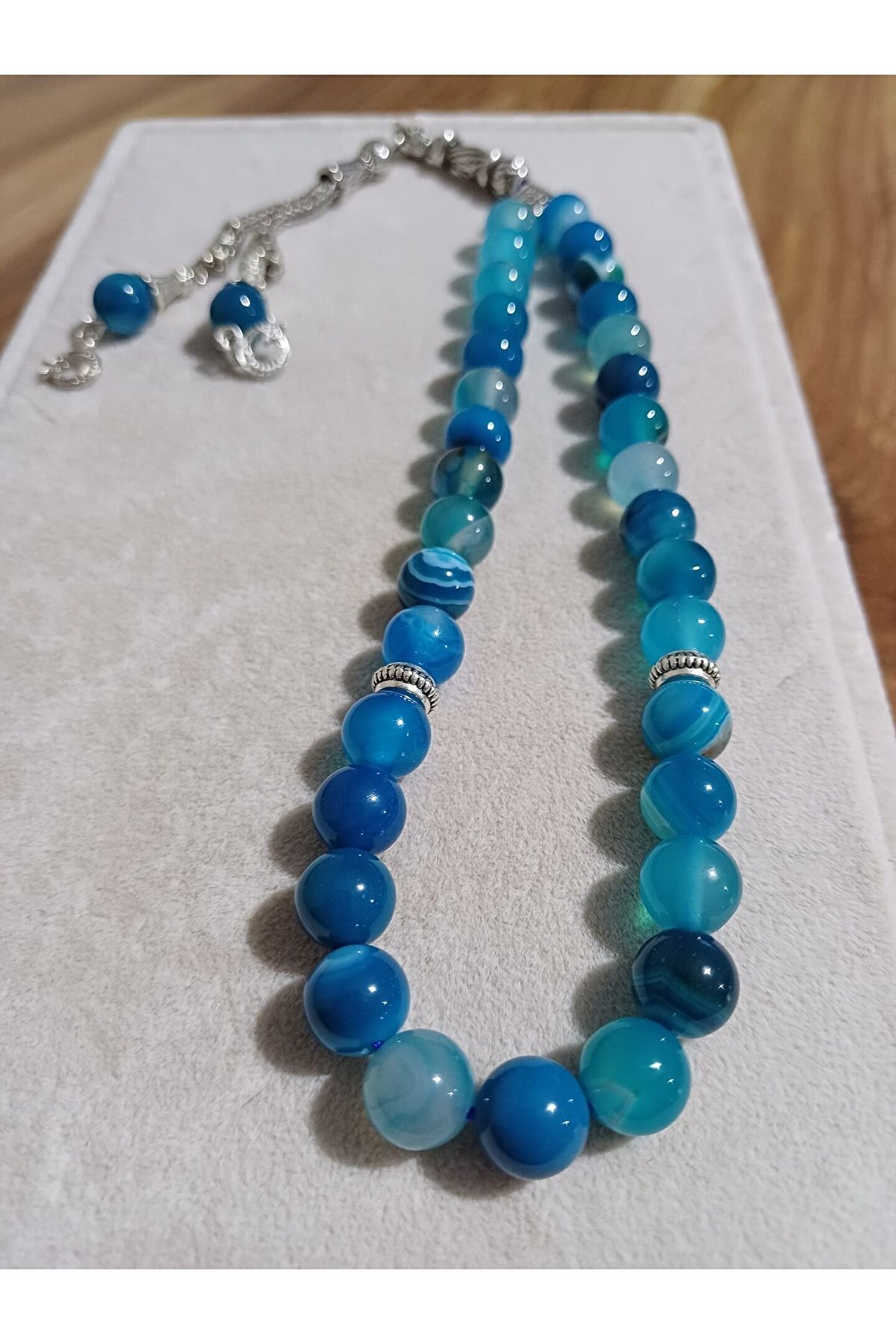 AKİK DOĞAL TAŞ TESBİH ( %100 DOĞAL TAŞ 8MM ) ? Ürün Açıklaması: Doğanın gücü ile maneviyatın zarafetini bir araya getiren Akik Doğal Taş Tesbih, şıklığı ve anlamı bir arada yaşamak isteyenler için mükemmel bir seçenektir. ; %100 doğal taşlardan üretilmiş olan bu tesbih, el işçiliğiyle kusursuz bir şekilde birleştirilmiştir. ; ? Benzersiz Özellikler: - %100 doğal akik taşı - 8mm taş boyutu - El işçiliği ile özenle üretilmiş - Dayanıklı ve uzun ömürlü - Manevi anlamı ve estetik görünüm ? Ürün Faydaları: - Stresten arınmanıza yardımcı olur - Konsantrasyon ve odaklanma sağlar - Estetik ve zarif görünüm sunar - Dayanıklı yapısı ile uzun süre kullanabilirsiniz - Manevi enerjinizi artırır ? Teknik Özellikler: - Ürün Türü: Akik Doğal Taş Tesbih - Taş Çapı: 8mm - Malzeme: %100 Doğal Akik Taşı - Üretim: El İşçiliği - Paket İçeriği: 1 adet akik tesbih Bu değerli akik tesbihi, ruhsal dinginlik arayan ve stiline ayrıcalık katmak isteyen herkes için ideal bir seçimdir. ; Şimdi sipariş verin ve doğal taşların büyülü dünyasına adım atın! NOT : Doğadan çıkan doğal taşlar, ve kehribar tanelerinin hiç biri birbirinin aynısı olmadığı için küçükte olsa farklılıklar gösterebilir. ; Bunun sebebi ürünün sentetik ve fabrikasyon olmamasıdır. ; Ürünlerimiz %100 gerçek Dünya'nın en kaliteli doğal taşlarından imal edilmektedir.;
