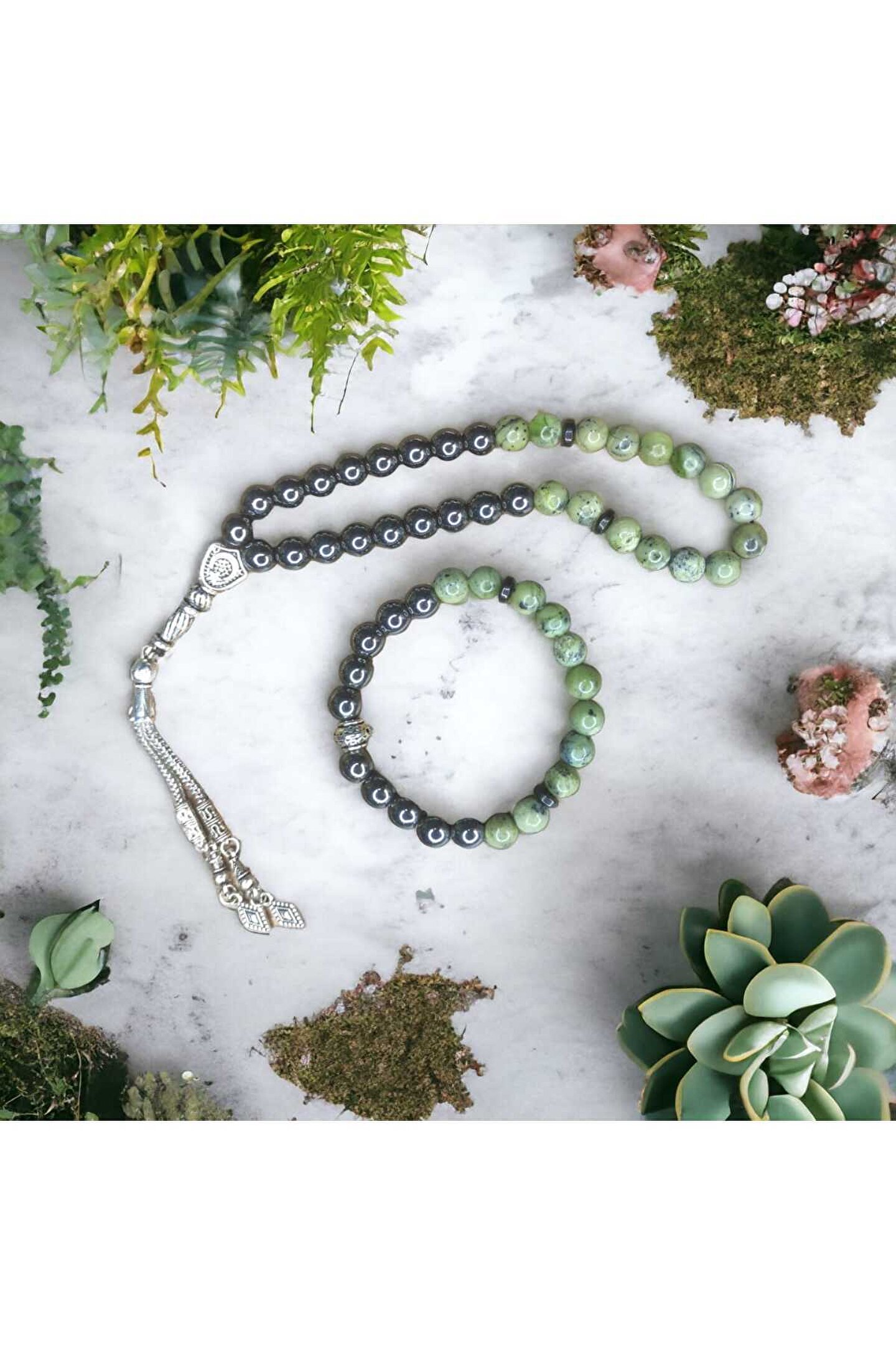Doğal taş kullanımı sayesinde her bir bileklik, benzersiz ve otantik bir görünüm sunar; Yeşim taşı ve hematit gibi değerli taşların birleşimi, hem şıklığı hem de zarafeti bir arada barındırır; Genç yaş grubuna hitap eden tasarımıyla, modern ve trend bir aksesuar tercihi sunar;