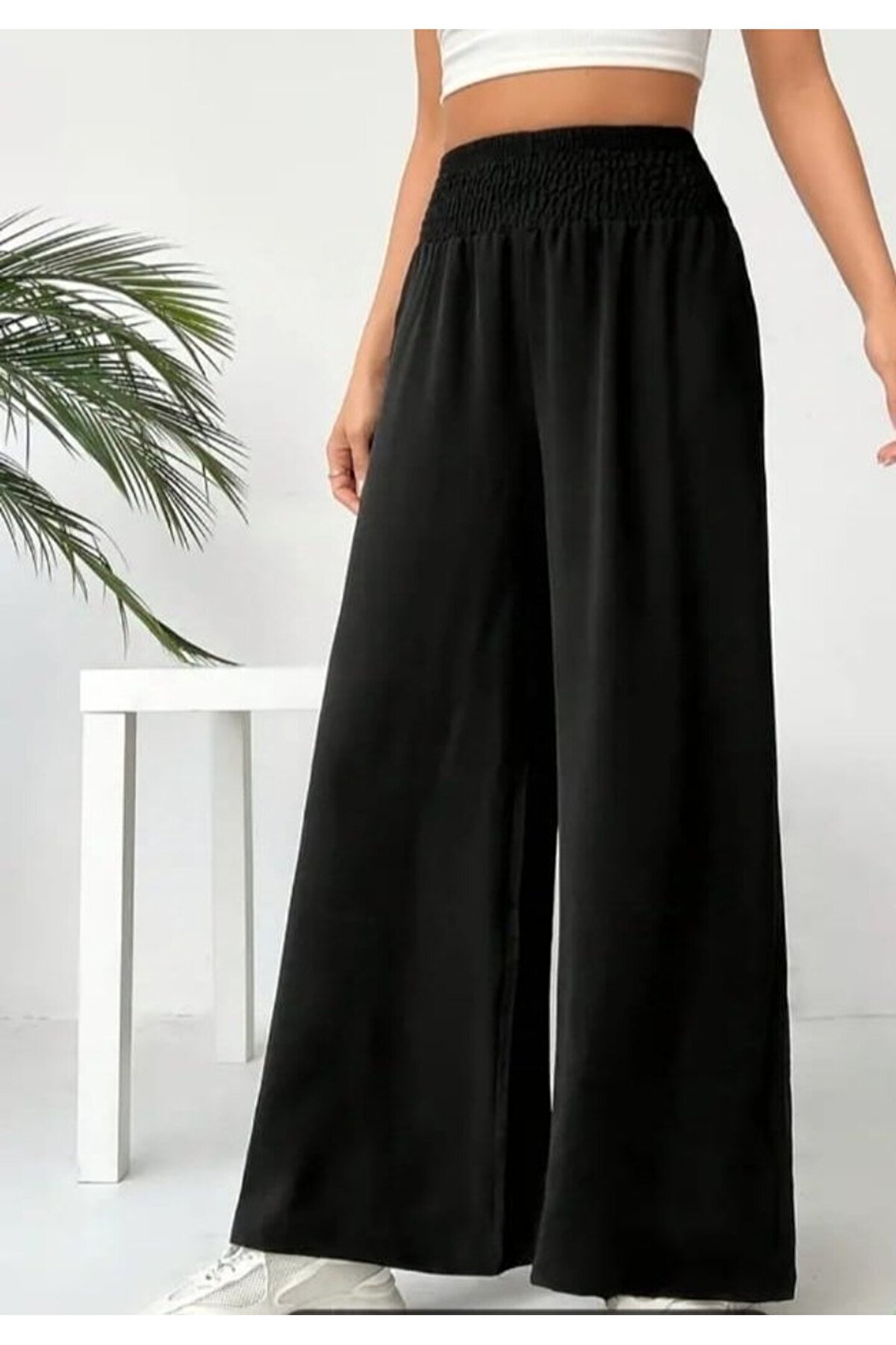 Kadın Yüksek Bel Lastikli Ithal Krep Pantolon