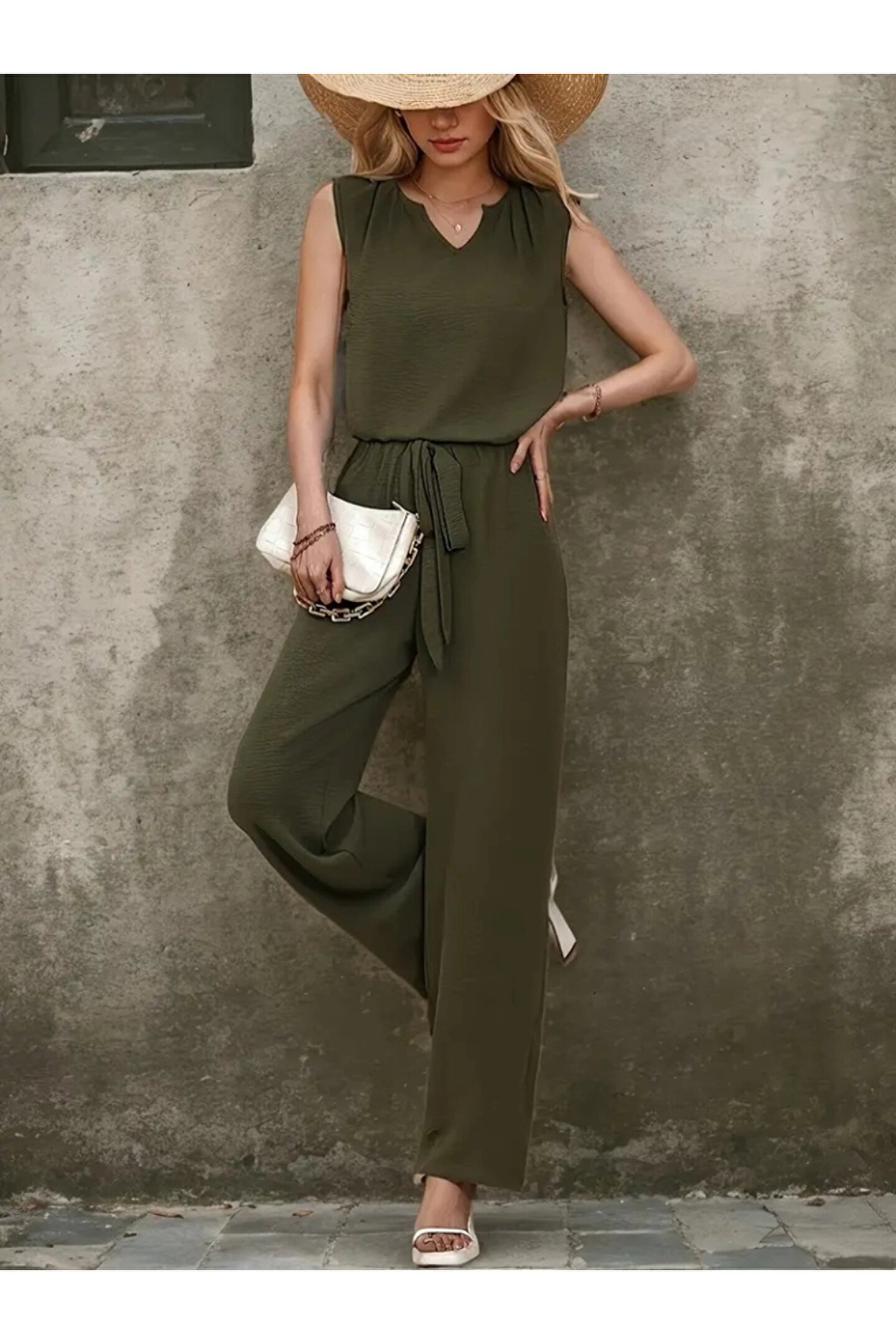 Kadın Kolsuz V Yakalı Aerobin Bluz Ve Belden Kuşaklı Pantolon Ikili Takım