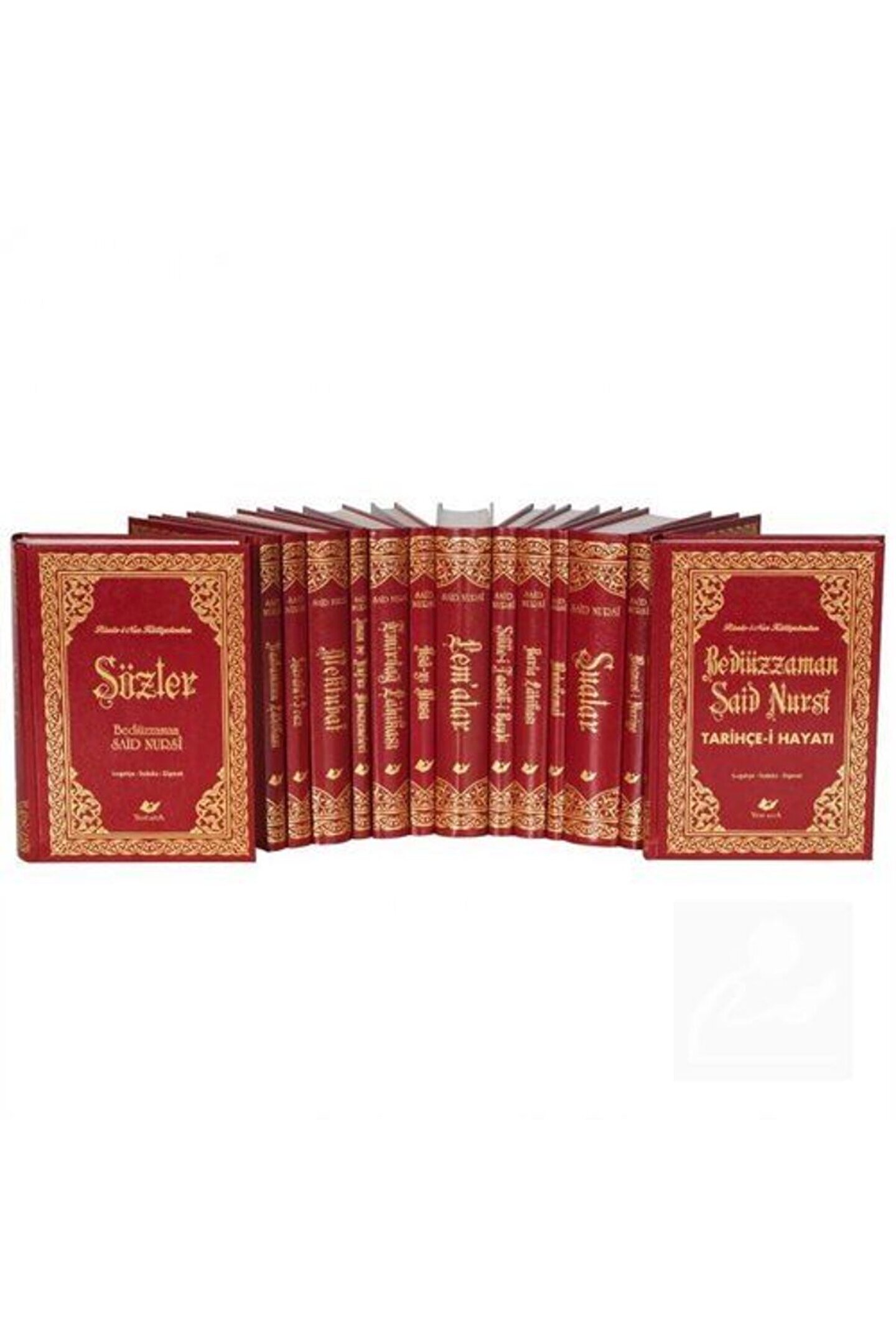 Risale-i Nur Külliyatı (14 Cilt Takım) (Yeni Tanzim, Büyük Boy, Lügatçeli, İndexli) (Kod: 7525) Bediüzzaman Said Nursi / Yeni Asya Neşriyat Basım Yılı: 2020; Baskı: 3; Sayfa Sayısı: 7550; Kağıt Türü: Şamuha Kağıt; Ebat: 17 x 24; Dil: Türkçe; Cilt Durumu: Ciltli; ISBN: 9755257525; ISBN: 9789755257525; Renk: Renkli; Yazar: Bediüzzaman Said Nursi; Çağımız hususiyetlerini tahlil ve manevî hastalıklarını teşhis eden Bediüzzaman "Zaman imân kurtarmak zamanıdır formülü çerçevesinde kaleme aldığı Risale-i Nurla bu zamanın manevî ihtiyaçlarına tatminkâr cevaplar veren iman hazinesini ortaya koymuştur.; Bu eserlerde her insanın zihnini meşgul eden ve modern çağ insanlarının da bigâne kalamayacağı Ben kimim? Nereden geldim? Nereye gidiyorum? Bu dünyadaki vazifem nedir? suallerine doyurucu izahlar getirilmekte; başta Allaha iman olmak üzere bütün iman esasları izah ve ispat edilmekte; bu konularda fen ve felsefe adına ortaya konulan şüphe ve sualler ikna edici bir üslûpla cevaplandırılmakta; ilimle dinin uzlaşmazlığı yolundaki iddialar püskürtülerek ilme din namına sahip çıkılmakta; İslâmı dejenere etmek maksadıyla girişilen tahrifatçı tahrip teşebbüsleri boşa çıkarılmakta; maddeci anlayışa bina edilen medeniyetin insanlığı sürüklediği manevi buhranlar Kurânın tevhid ve haşir gibi geniş hakikatlerine dair aklı doyuran ruhu okşayan kalbi tatmin eden tatlı izahlarla tedavi edilmekte; ruhun ve kalbin vazifesizliğinden doğan sıkıntıların sürüklediği sefahet ve başıboşluk hali Kurân mesajıyla izale edilmektedir.; Modern çağ insanının aradığı Kurân yorumunu en mükemmel şekliyle Risale-i Nurda bulmak mümkündür.; Risale-i Nur Kurânın bu asra bakan mesajını anlayıp yorumlama hususunda "tecdit vazifesini ifa etmiş bir tefsirdir.; Modern çağ insanının aradığı Kurân yorumunu en mükemmel şekliyle anlatan Risale-i Nur Külliyatını yepyeni bir tanzime okurların hizmetine sunuyoruz.; Özellikler 1- Derkenar sözlük: Her sayfanın yan tarafında cümlenin içinde geçen kelimelerin anlamları.; 2- Ayet-Hadis mealleri ve kaynakları: Geçtiği sayfanın altına konulmuştur.; 3- Arapça ve farsça metinlerin tercümeleri.; 4- Telif Tarihleri: Her bir eserin yazıldığı tarih.; 5- İndeks.