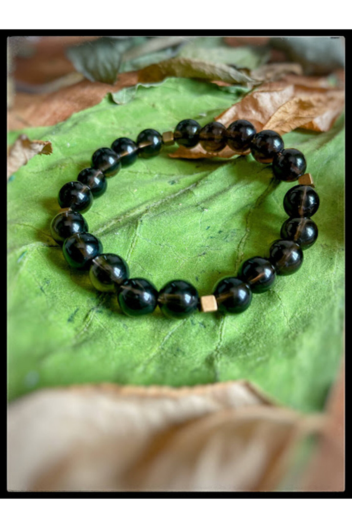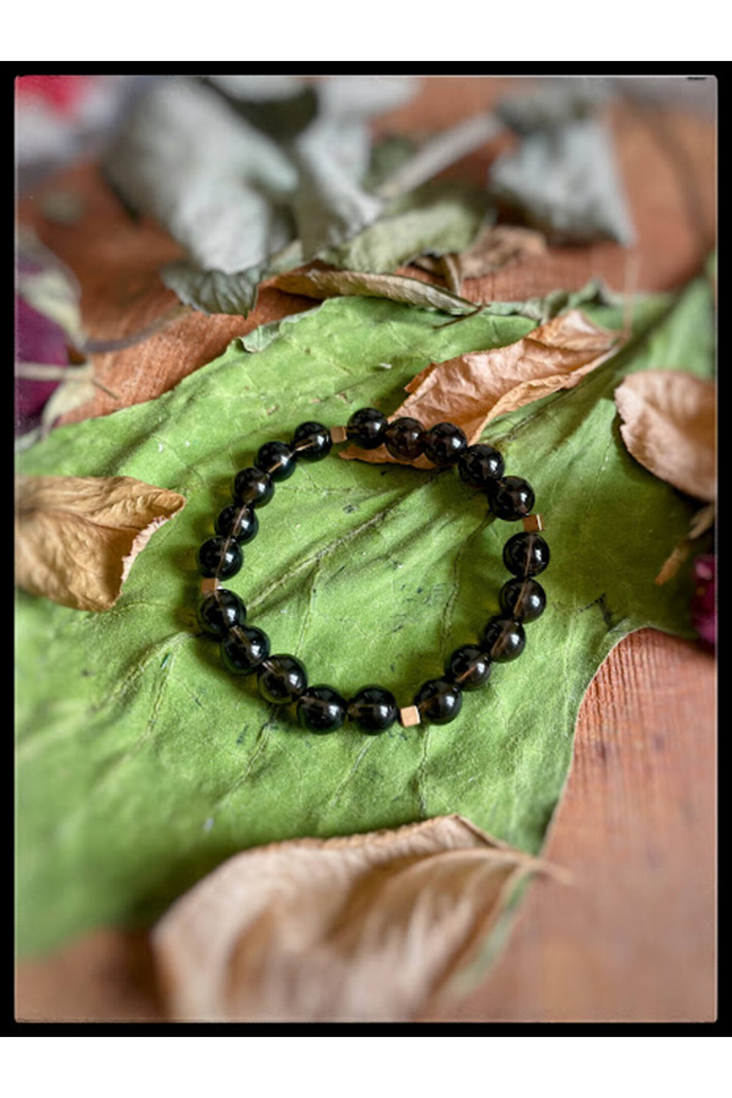 Bu üründe kullanılan doğal taş boyutu: 8 mm Misinali İp kullanılmıştır. ; Ürün ile birlikte Yedek misinada gönderilmektedir. ; Birlikte tasarlamak istediğiniz ürün için bizimle iletişime geçebilirsiniz. ; Unutmayın, bu mağazadaki her şey size özel olacaktır. ; **ÜRÜNLERİMİZ DOĞALTAŞ OLDUĞU İÇİN RENKLERDE FARKLILIK GÖSTEREBİLİR** !!! DOĞALTAŞLAR SADECE TIBBA DESTEK AMAÇLI ŞİFA NİYETİNE KULLANILMALIDIR, TEDAVİ EDİCİ DEĞİLDİ !!! ***DUMANLI KUVARS DOĞALTAŞ BİLEKLİK*** Anahtar kelimeler: Topraklama, negatif enerjiyi dönüştürmek, radyasyondan korunma Element: Dünya Çakra: Kök çarka Dumanlı kuvars en etkili topraklama taşıdır. ; Aynı zamanda meditasyon sırasında güçlü titreşimler sağlar. ; Bu koruyucu taş vücutta bulunan yedi temel çakra ve ekolojik çevre arasında güçlü bir bağlantı kurar. ; Bu taş stres için güçlü bir panzehirdir. ; Zor durumda kişiye sakinlik vererek bulunduğu stresli ortamda doğru kararlar vermesini sağlar. ; Ruhsal enerjiyi nazikçe çevrede bulunan negatif titreşimlerden arındırır. ; Dumanlı kuvars arkanızda bırakmak istediğiniz sorunlardan nasıl kurtulacağınızı öğretir. ; Psikolojik olarak dumanlı kuvars korkulardan kurtarmaya depresyonu hafifletmeye ve duygusal acıdan sakinleşmemize yardımcı olur. ; İntihar eğilimlerini engeller. ; Suç işleme duygularını indirger , konsantrasyonu güçlendirir. ; Kişiye pozitif düşünmeye yönlendirir. ; İletişim güçlüklerini ortadan kaldırır. ; Zihni meditasyona hazırlar. ; Ağrı tedavisinde özellikle baş ağrılarında kullanılır. ; Üreme sistemine, kas ve sinir sistemlerine ve kalbe faydalıdır. ; Kramplarda, sırt ağrılarında rahatlamaya yardımcı olur. ; Sinirleri güçlendirir. ; Vücut tarafından minerallerin kolayca erimesini sağlar. ; Radyasyonu engellemede çok etkili bir taştır. ; Yastığın altına konularak ve telefon, bilgisayar gibi radyasyon yayan iletişim araçlarının çevresinde bulundurularak kullanılır. ; Uzun süreli periyotlarda kolye ucu olarak kullanılmalıdır. ; Stresten kurtulma amacı ile dumanlı kullanılacak ise dumanlı kuvarsınızı kullanmadan önce bir gece toprakta bekleterek temizlenmesini sağlayın. ; İki avucunuzda dumanlı kuvarsınızı alın ve birkaç dakika sessiz bir şekilde oturun. ; Bu şekilde uygulama yapmaya birkaç gün üst üste devam edin. ; Ağrıyan bölgenin üzerine koyma yolu ile ağrılarınızdan kurtula bilirsiniz.;